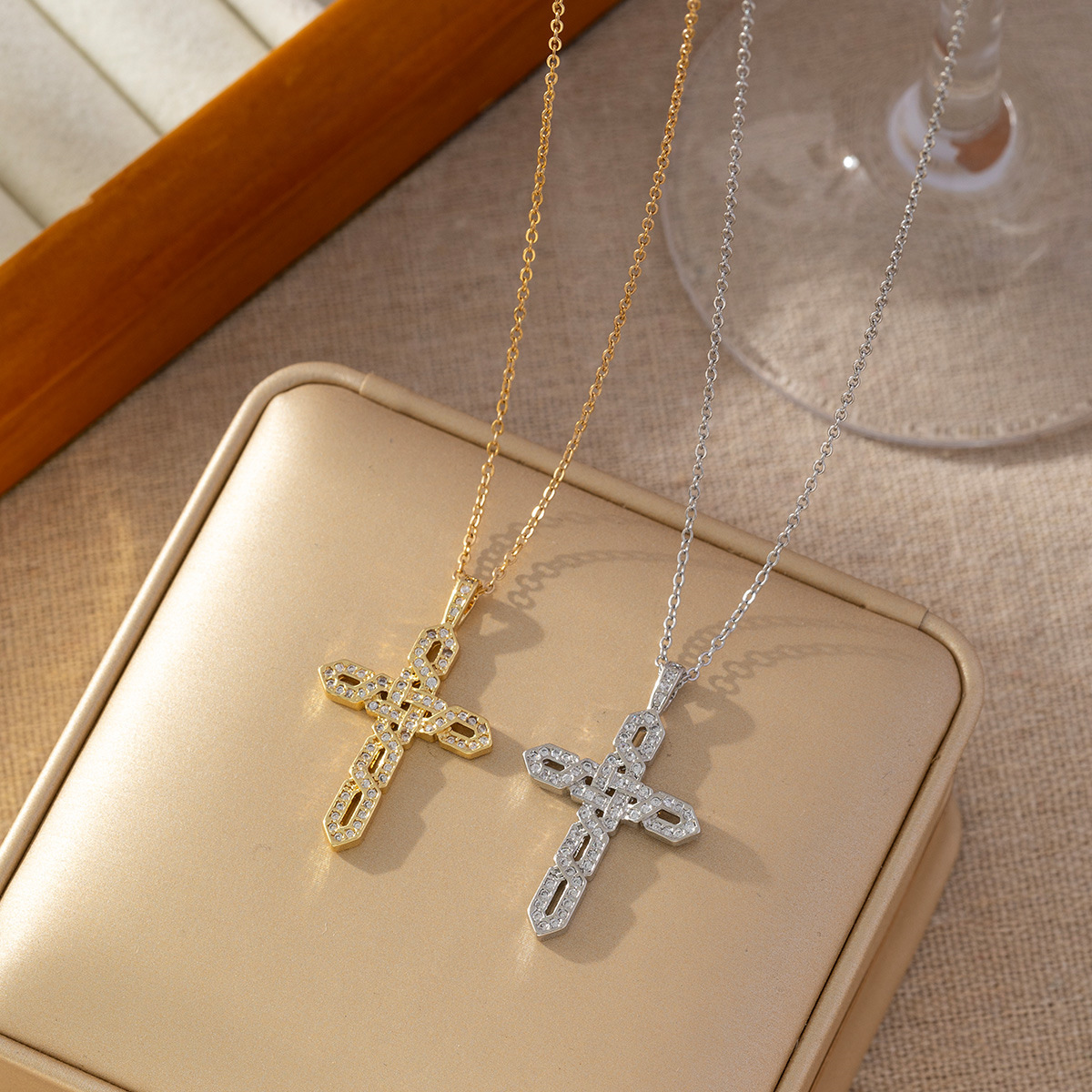 欧美锆石嘻哈项链挂件ins风时尚复古铜锆石十字架吊坠项链一件代