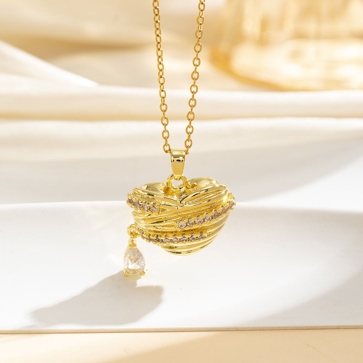 项链女网红欧美时尚锆石跨境新款爱心吊坠气质简约钛钢锁骨链首饰
