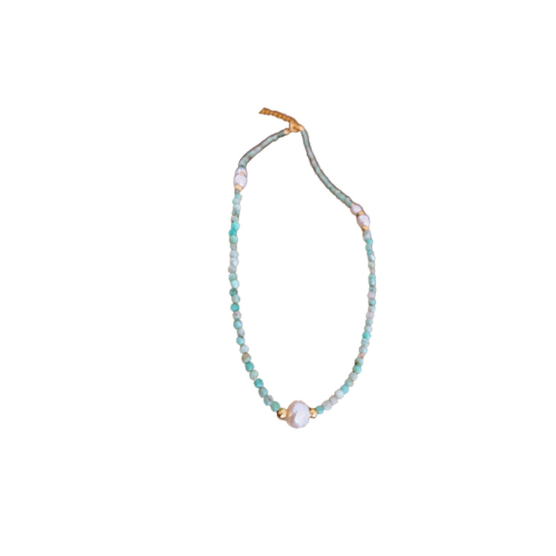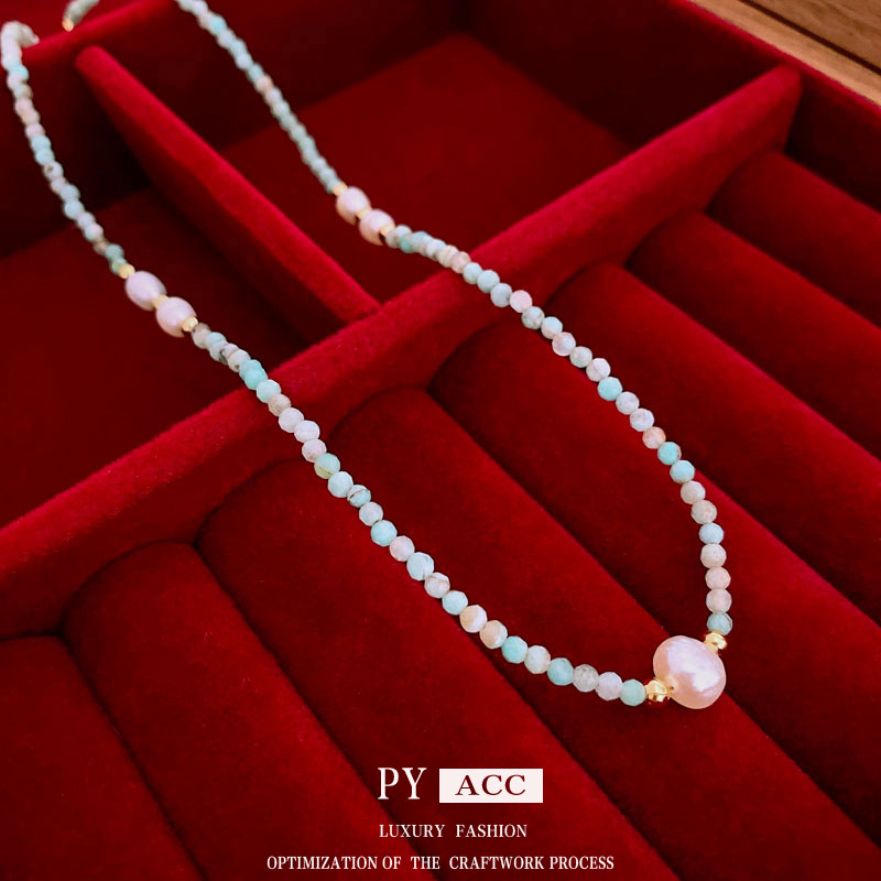 真金电镀天河石珍珠项链新中式简约气质锁骨链百搭高级感饰品批发