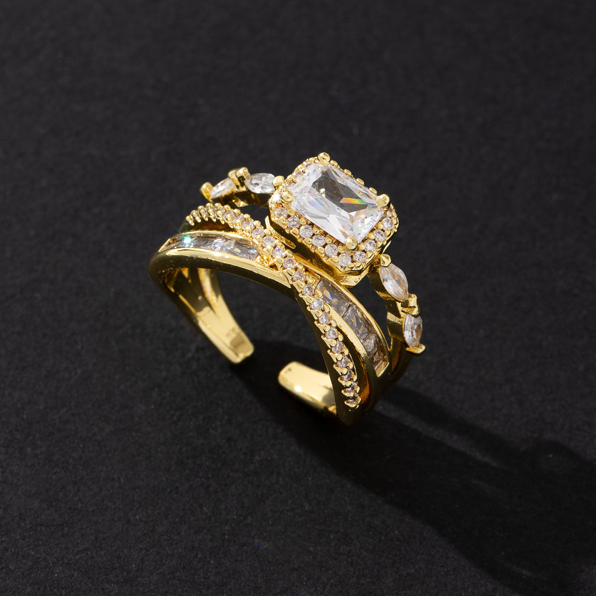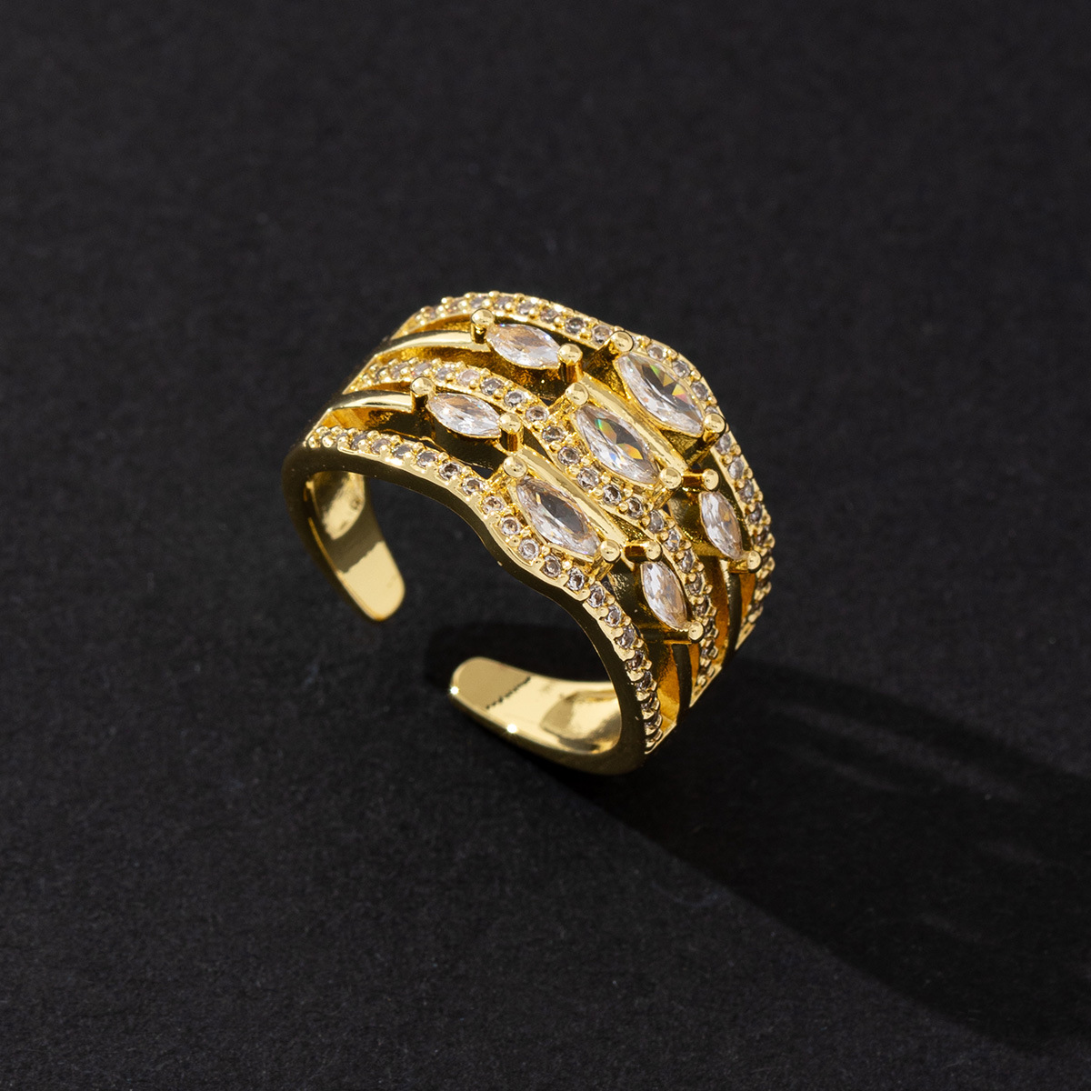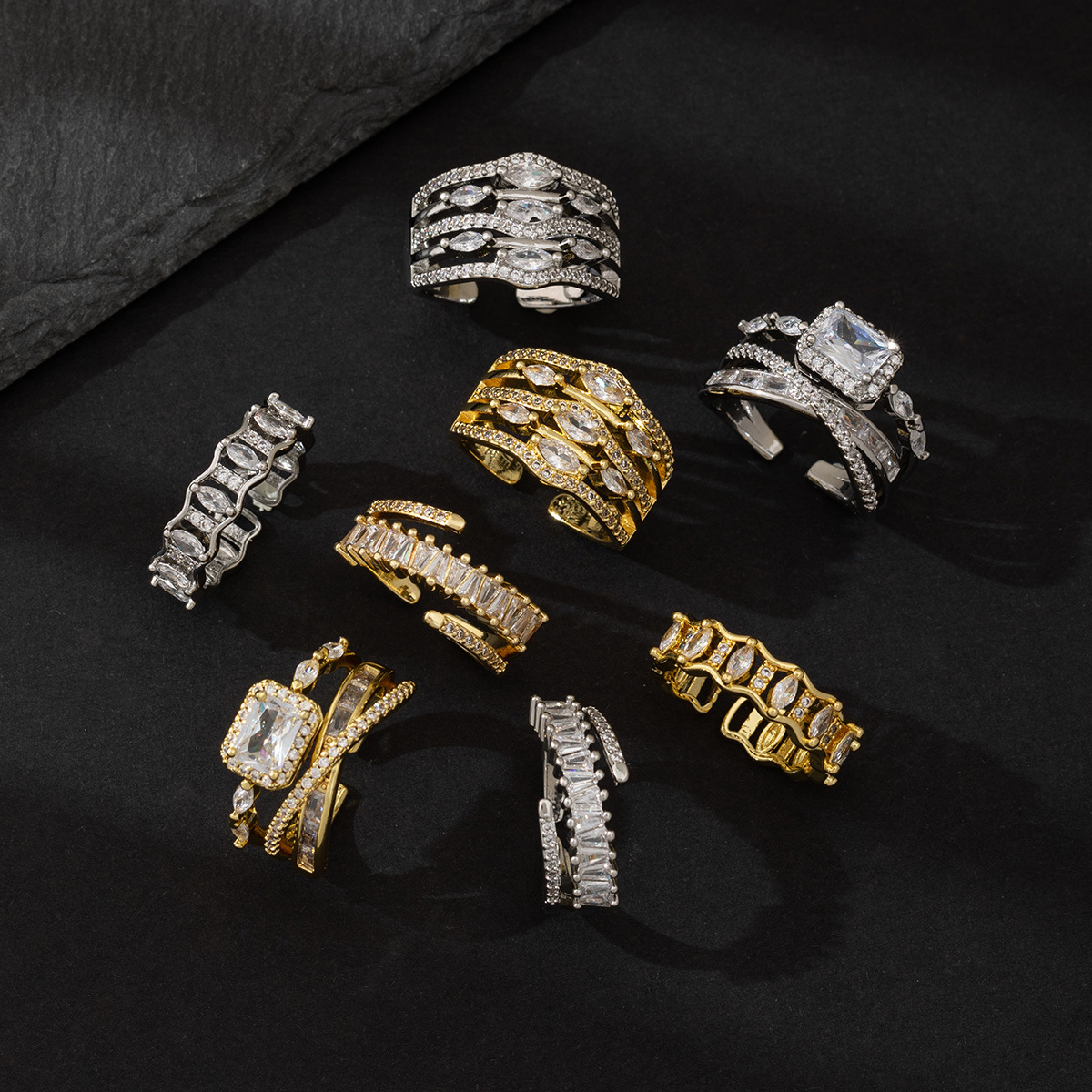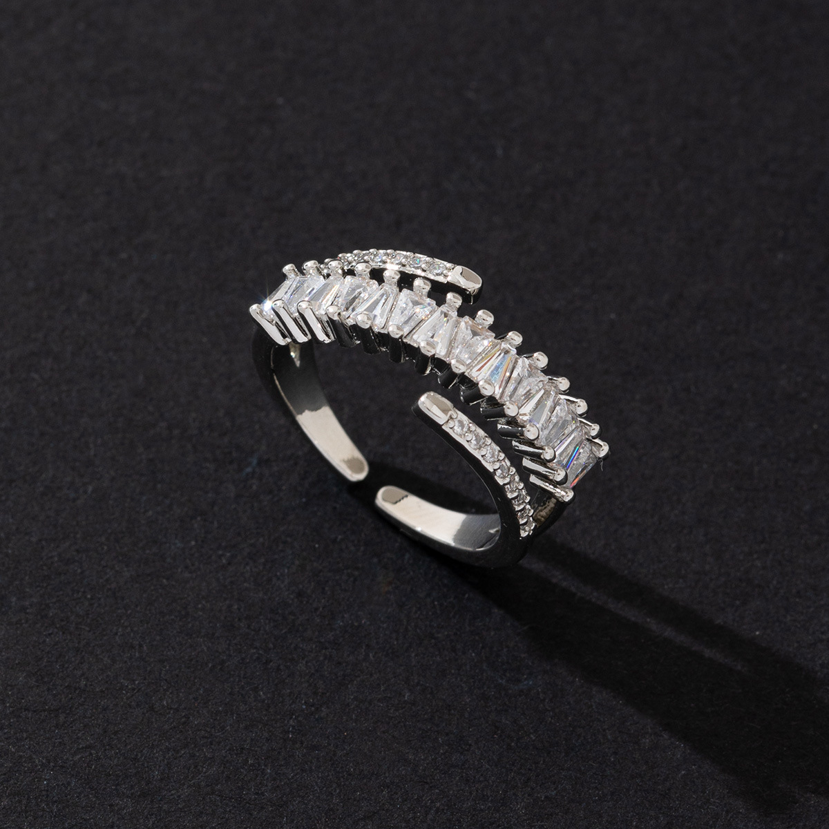 新款开口指环精致超闪锆钻链条时尚个性戒子韩国网红日系轻奢戒指