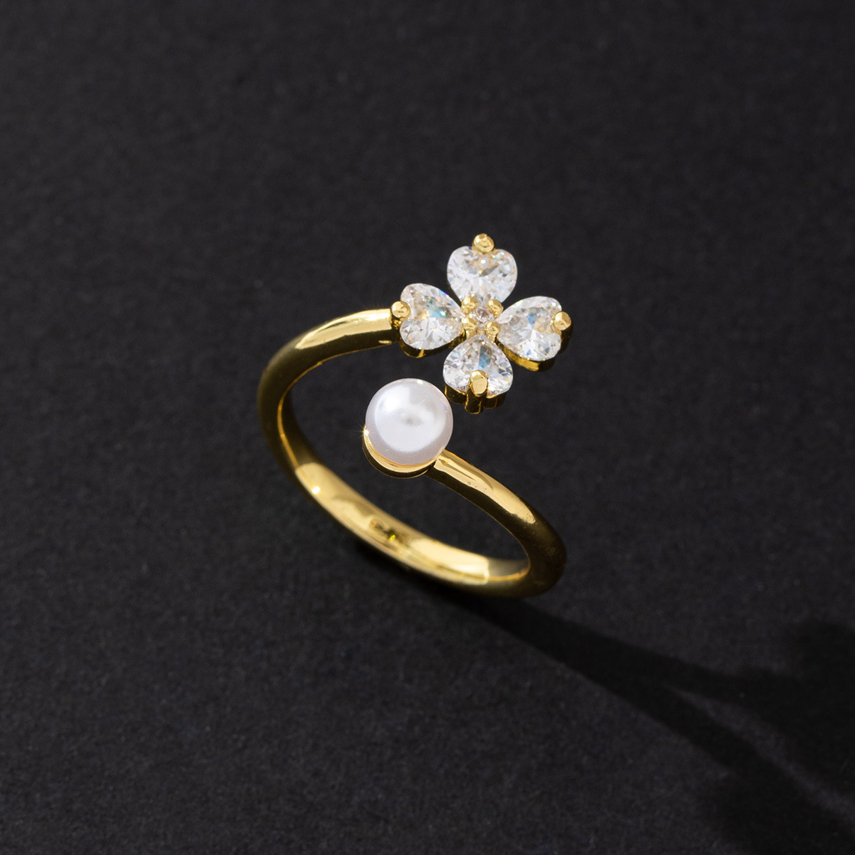 ins潮精致锆石四叶草戒指韩国新款超仙气质开口可调节食指戒指环