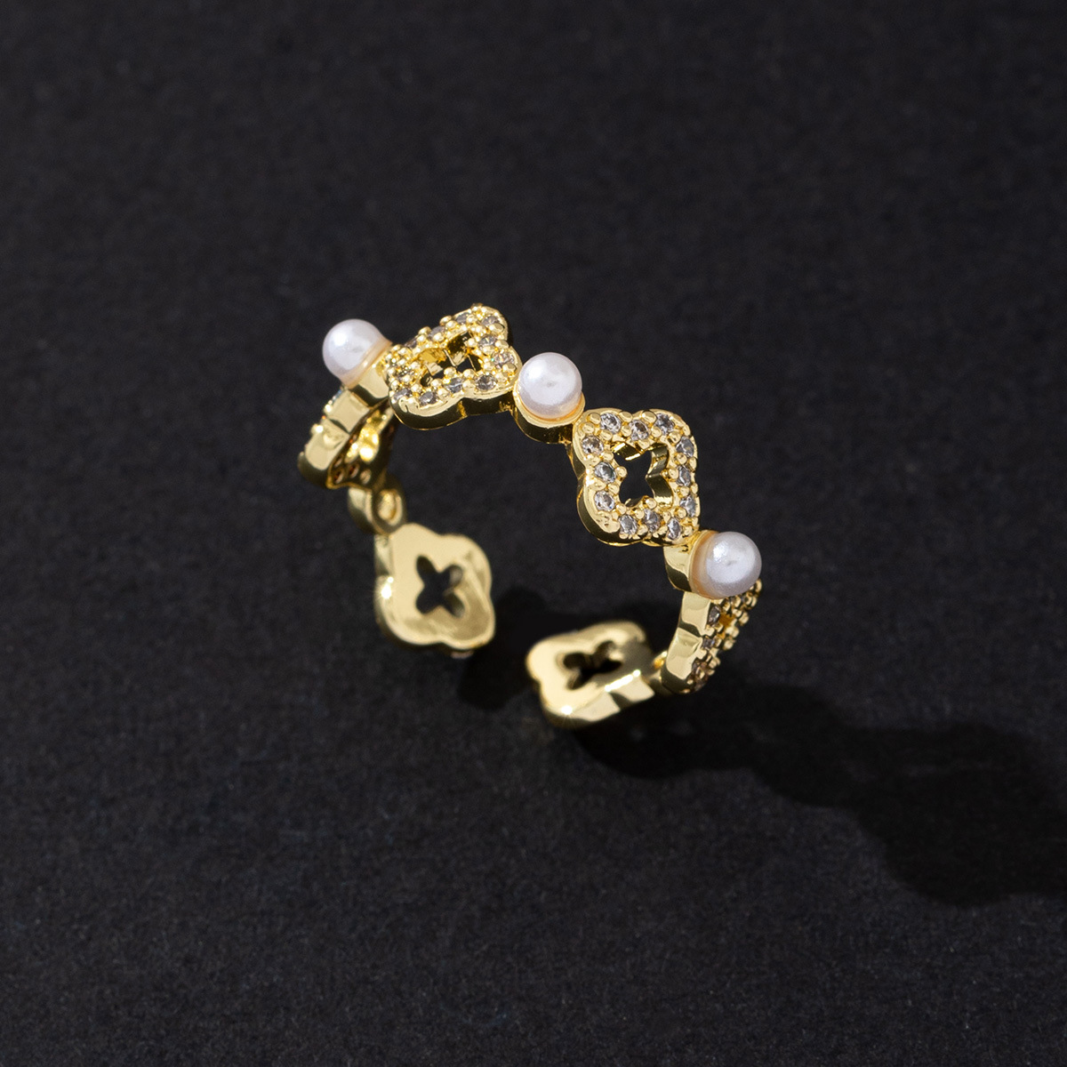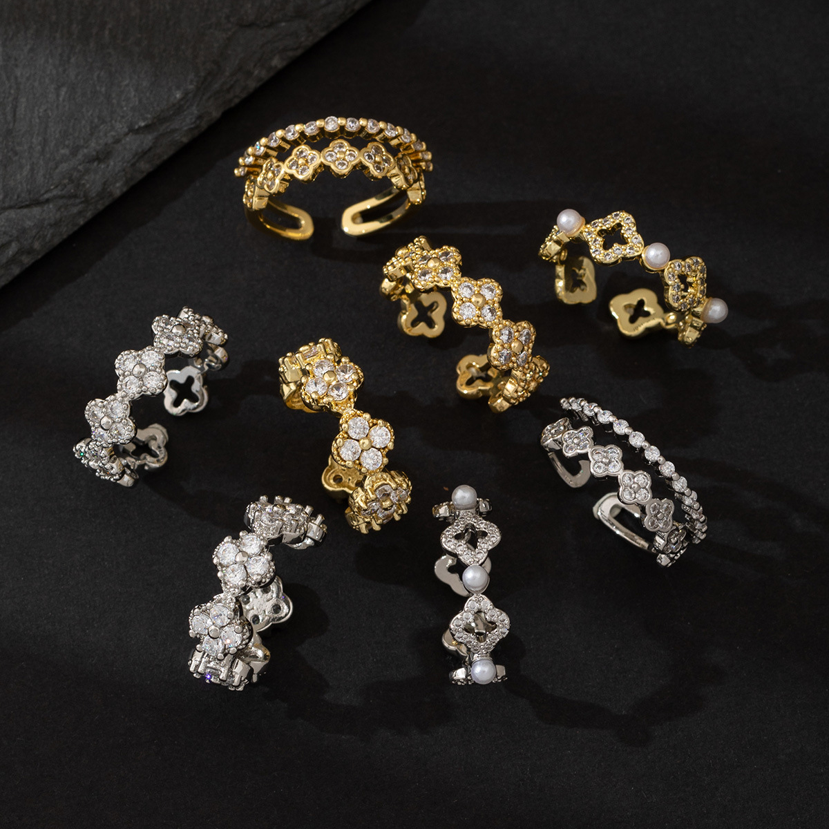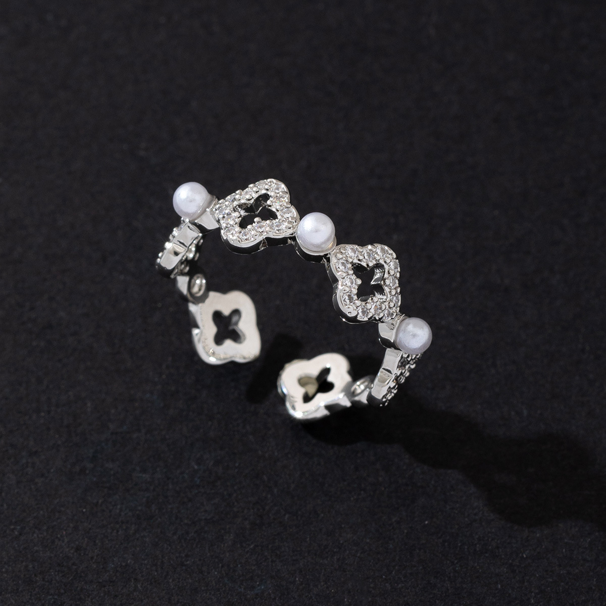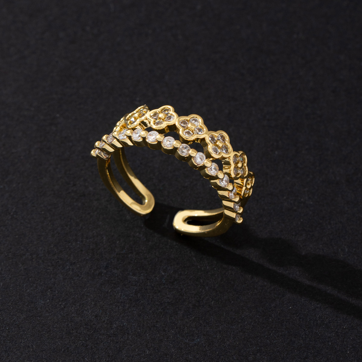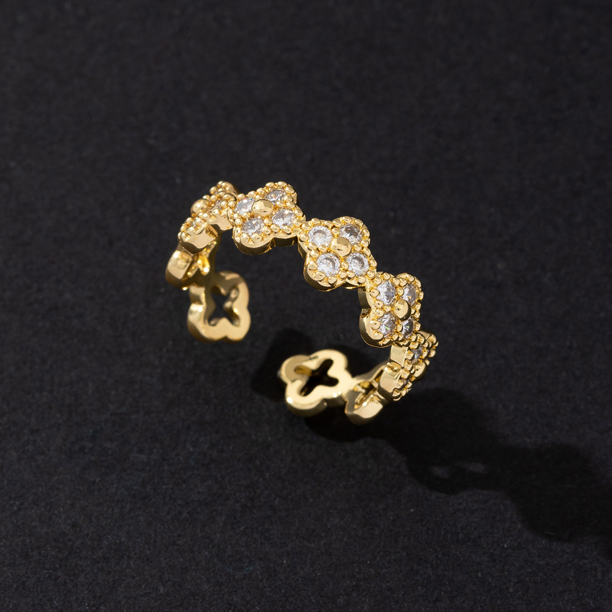 满钻四叶草开口戒指女高级款轻奢小众食指戒设计感气质指环戒子