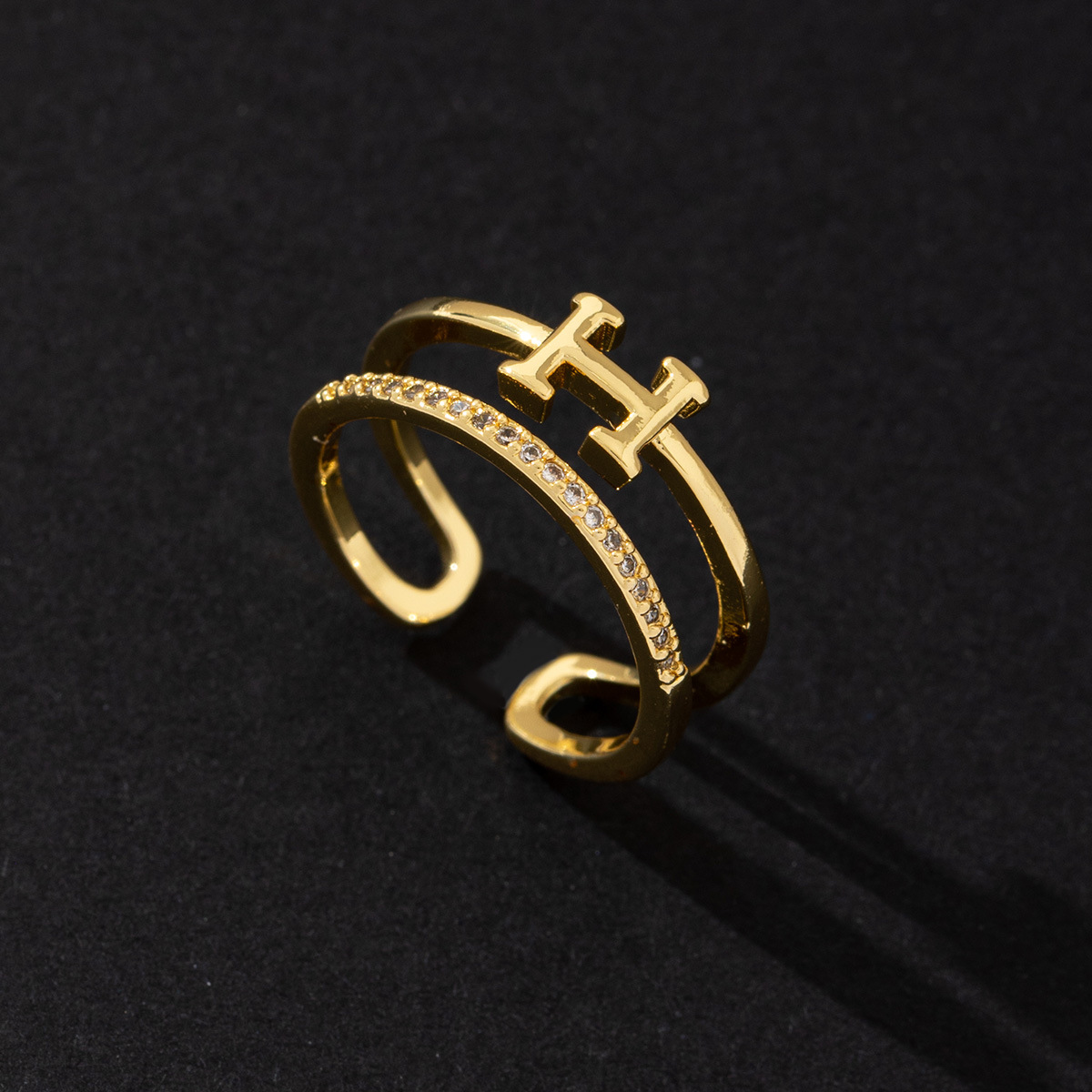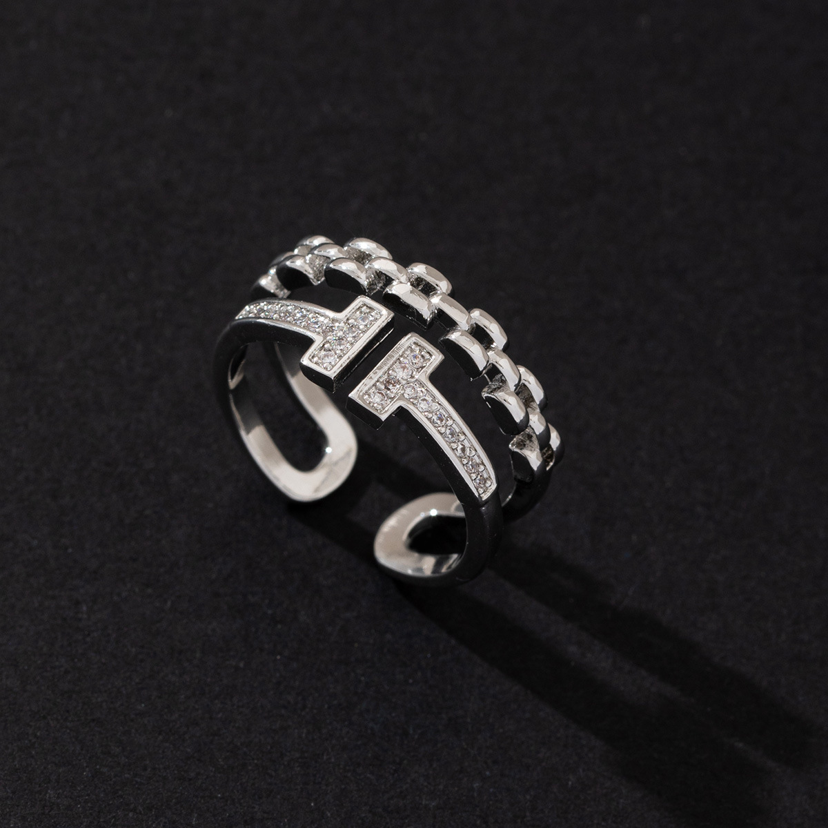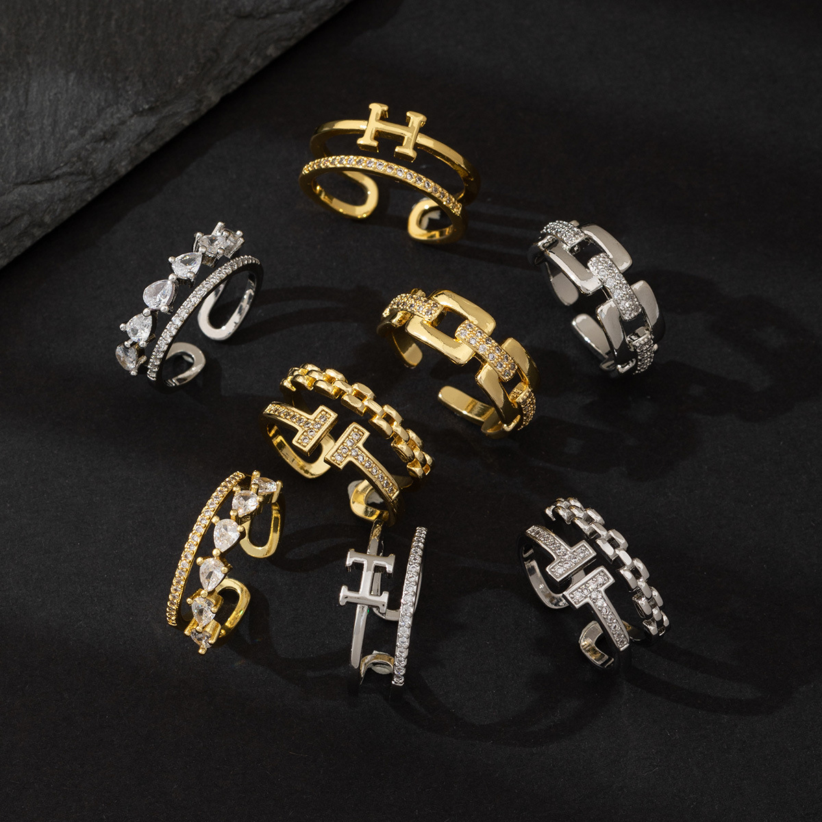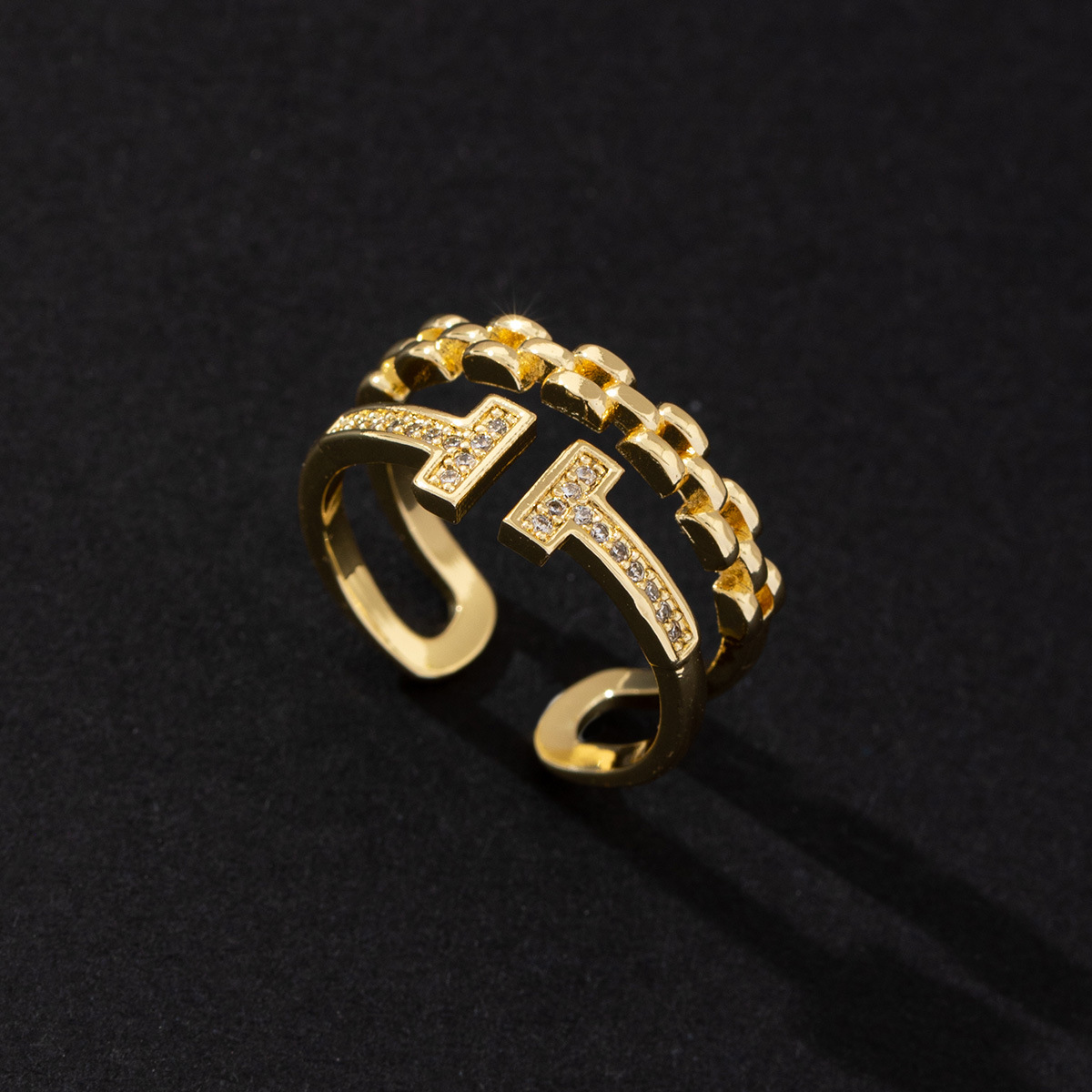 18K金戒指女款气质新款镂空镶嵌指环高级感轻奢满钻马蹄扣戒指
