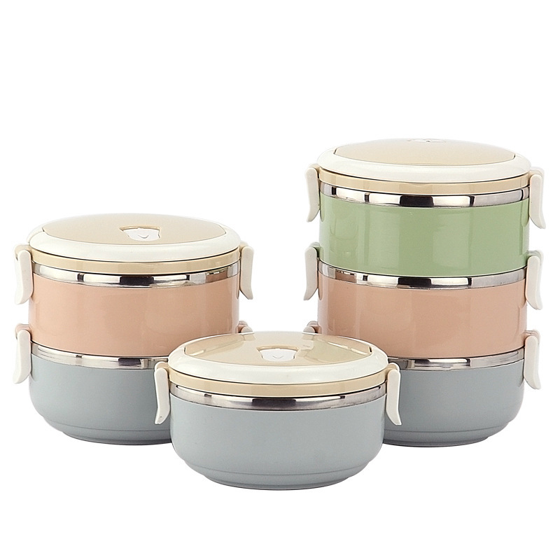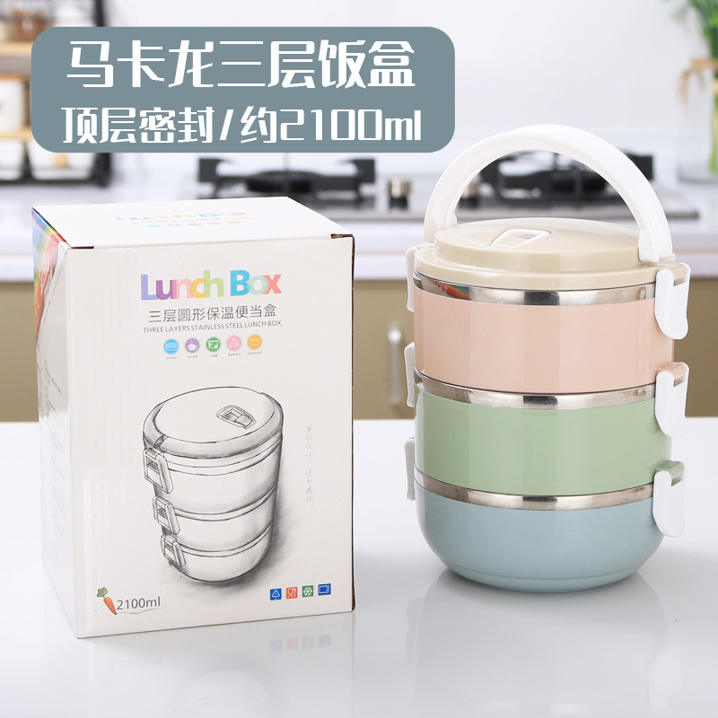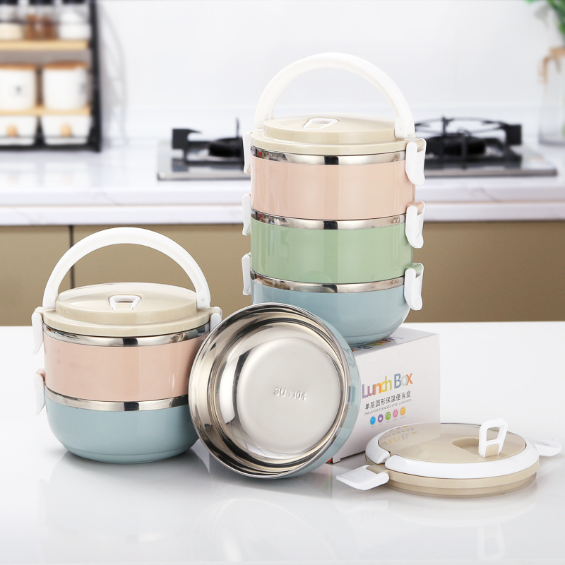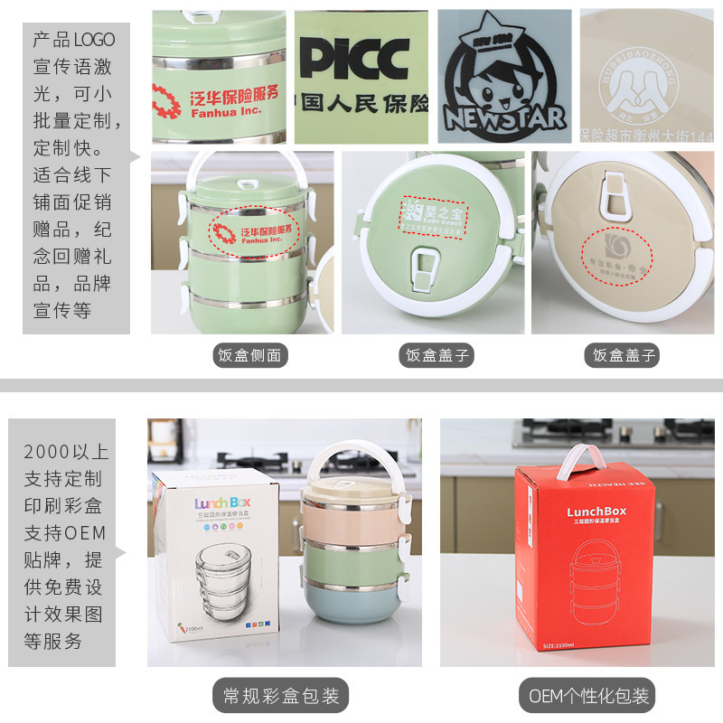 304不锈钢保温饭盒 加厚多层便当盒学生圆形密封餐盒logo礼品