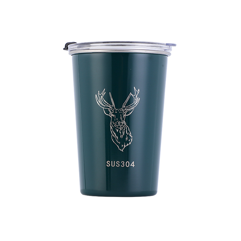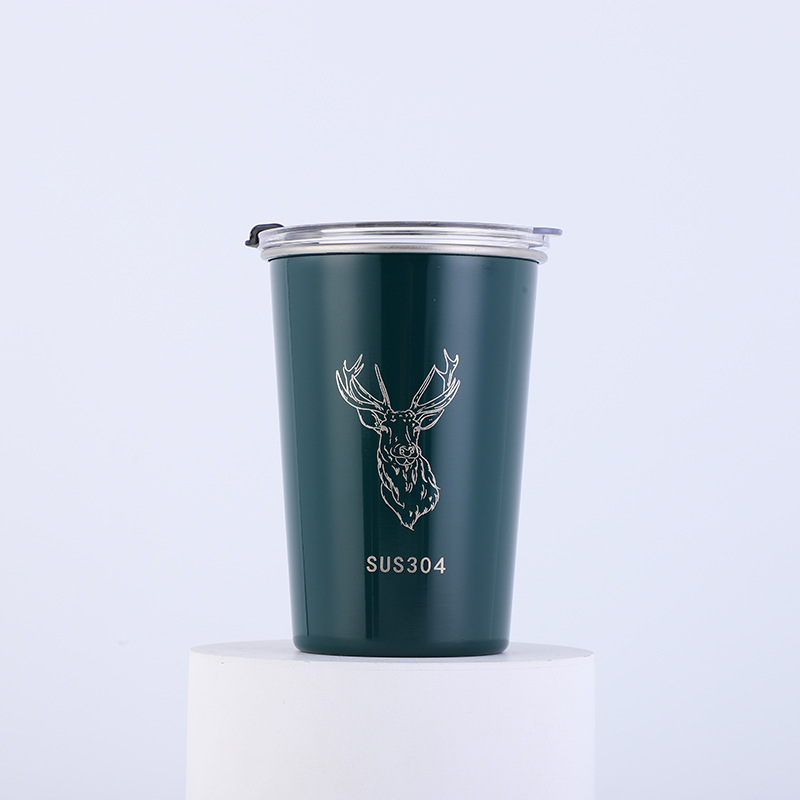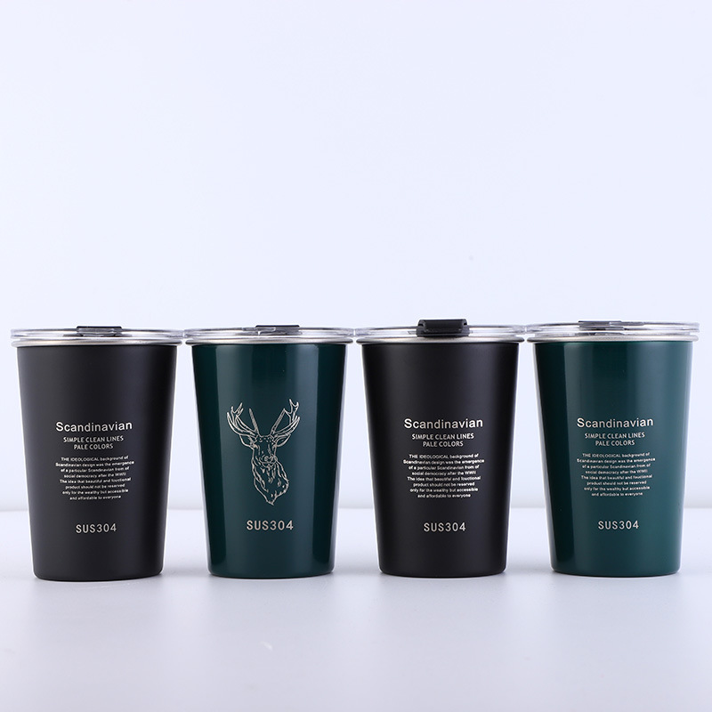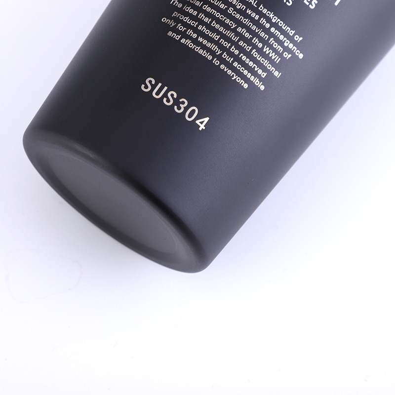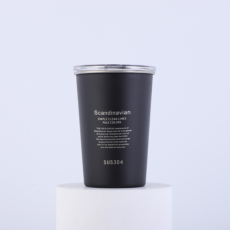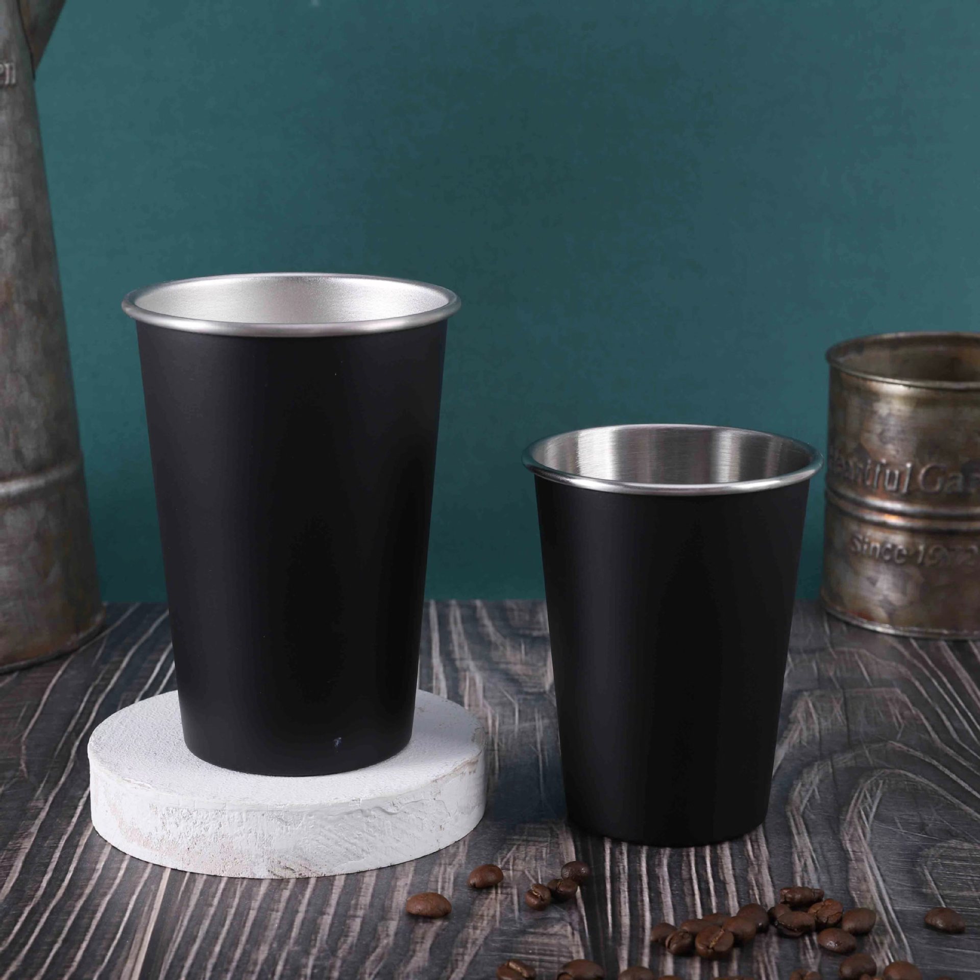 哑光漆黑色304不锈钢啤酒杯锥形卷边冷饮杯带盖奶茶咖啡杯变色