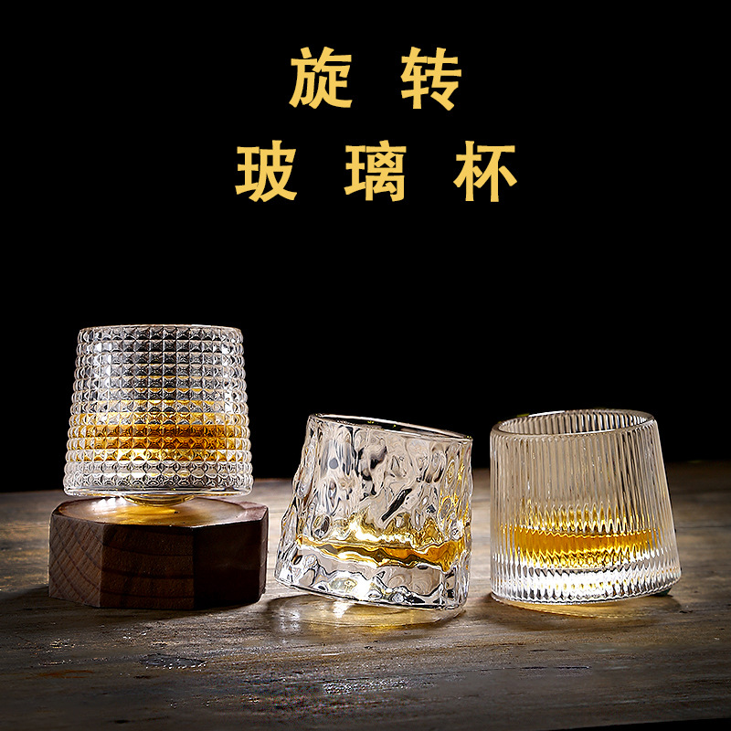 网红钻石转转玻璃杯酒吧杯洋酒水杯厂家现货直销威士忌酒杯旋转杯