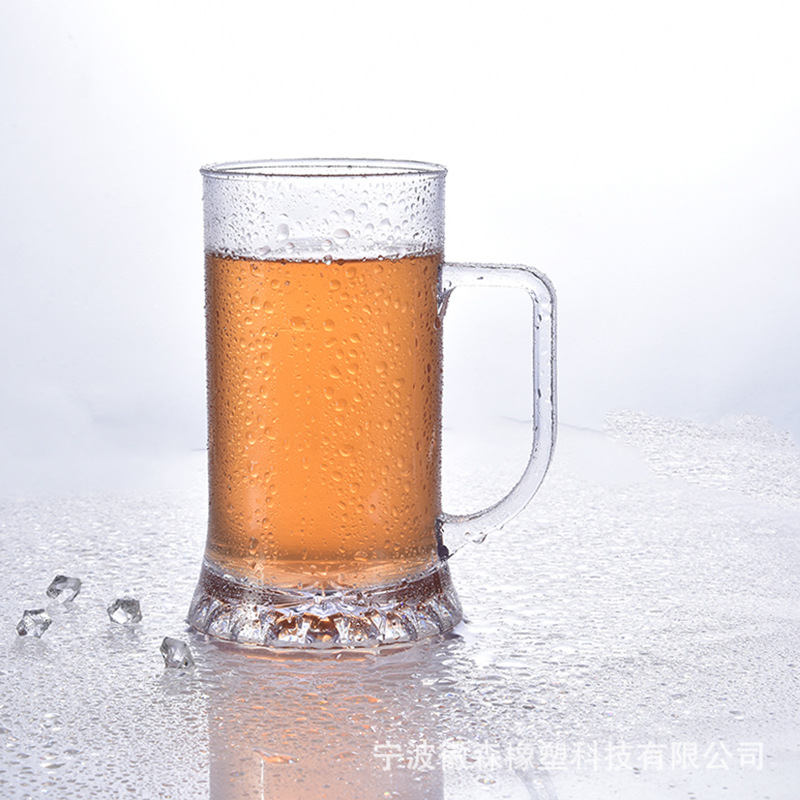亚克力PC塑料啤酒杯子透明带手柄啤酒杯大容量扎啤杯宽口品脱杯子