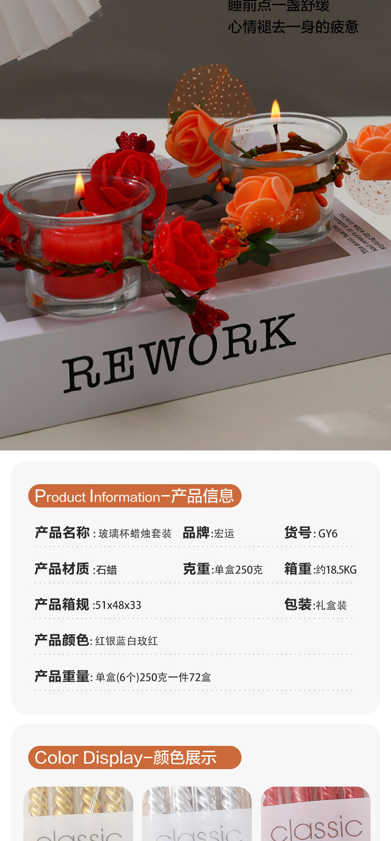 香薰蜡烛生日婚庆礼品情人节浪漫氛围灯玻璃杯蜡套装厂家批发火焰