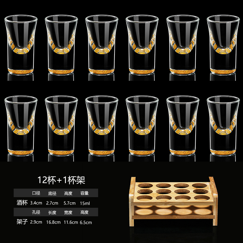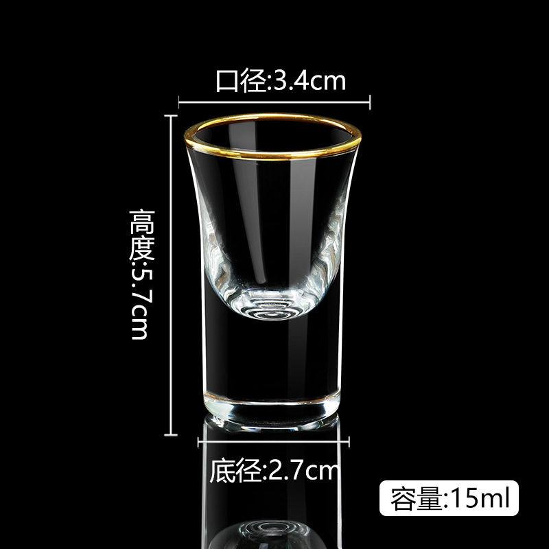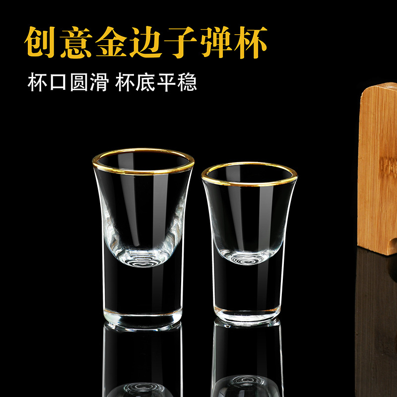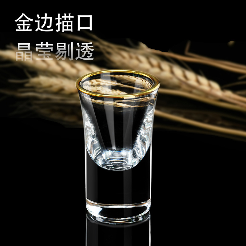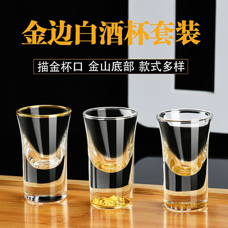 创意金山白酒杯描金小酒杯套装家用小号子弹杯玻璃金色杯子一口杯