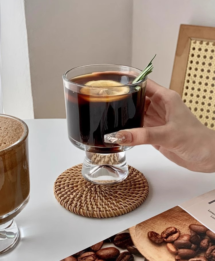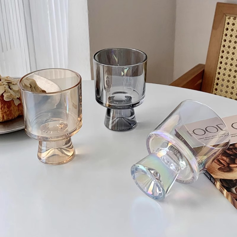 ins高颜值高脚杯玻璃杯冷萃咖啡杯水杯果汁饮料甜品雪糕冰淇淋杯