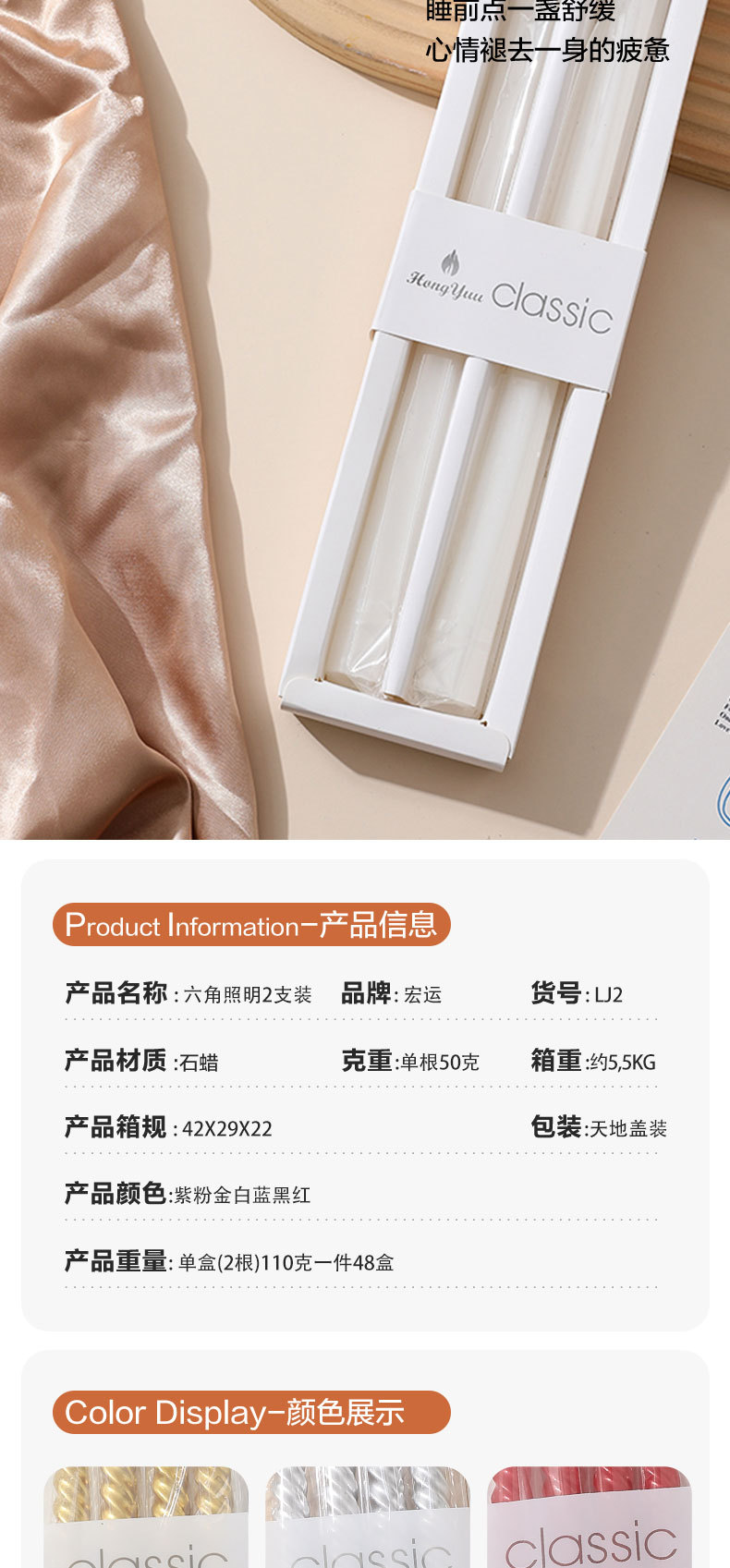 经典10寸彩色欧式两支六角照明蜡烛批发家用浪漫婚庆派对装饰蜡烛