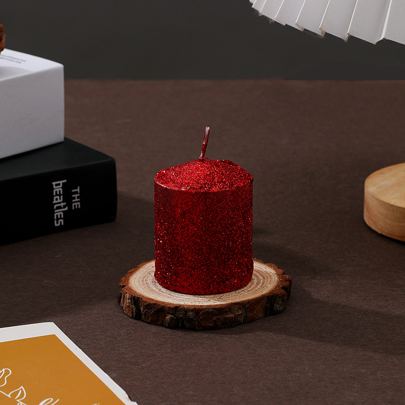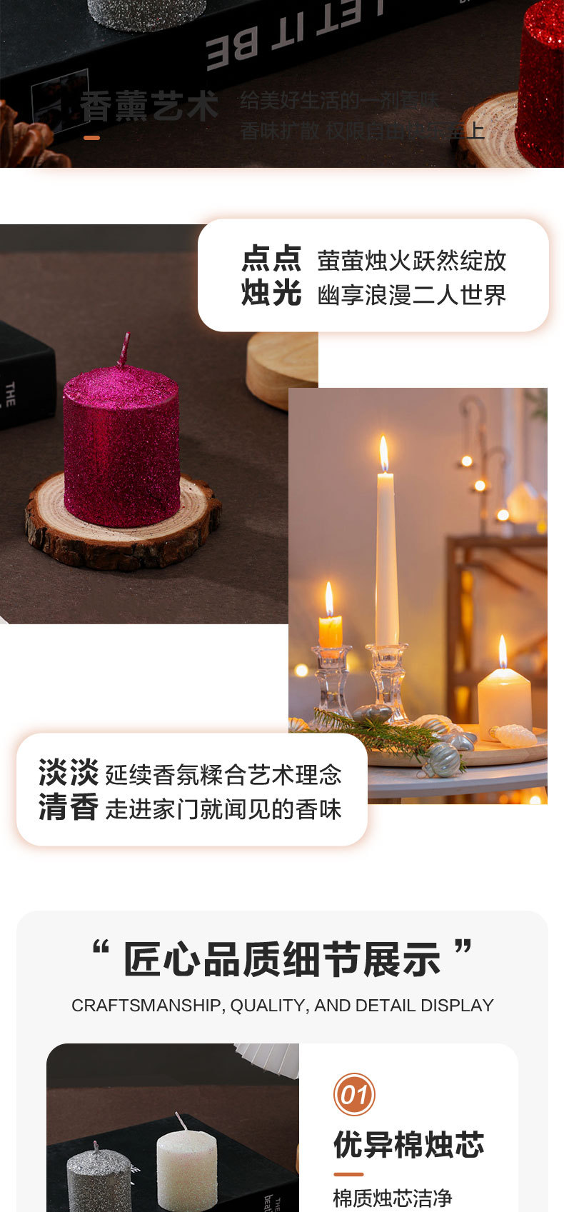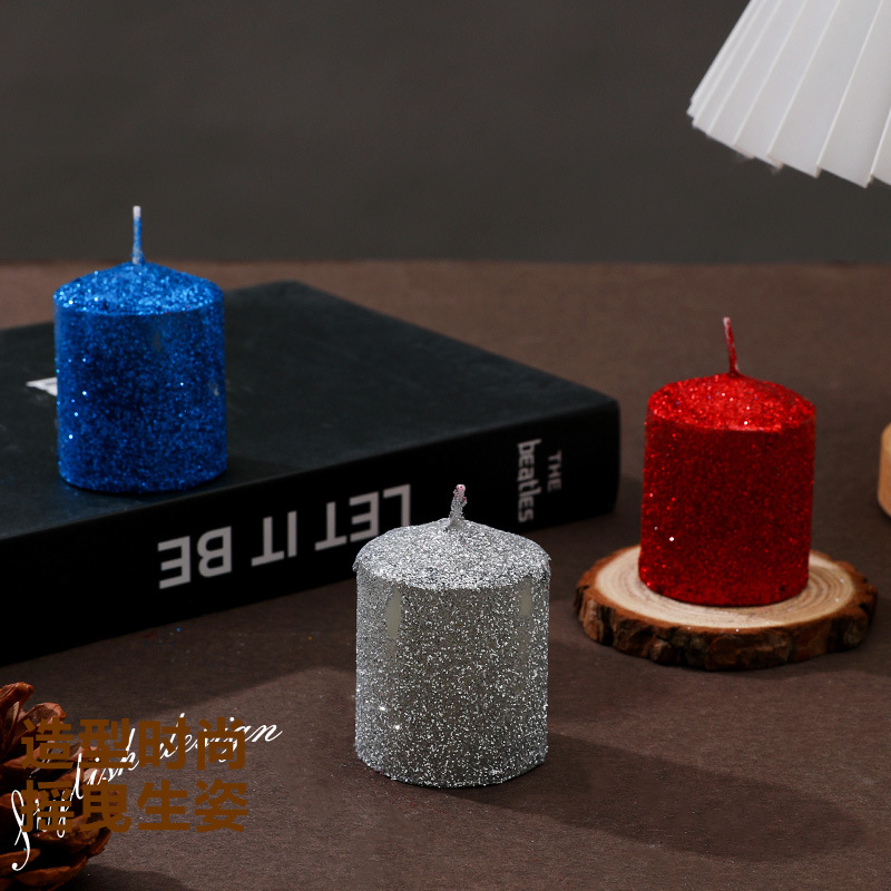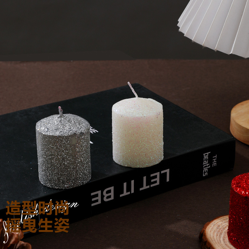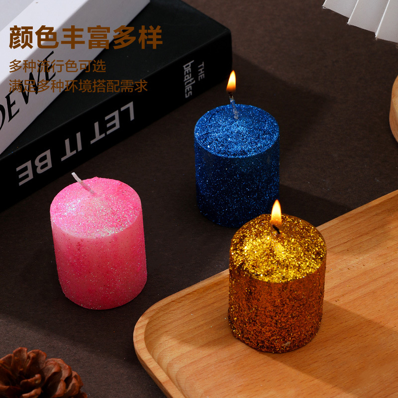 手工复古圆柱金粉蜡烛批发家用无烟浪漫应急照明婚礼教堂蜡烛批发