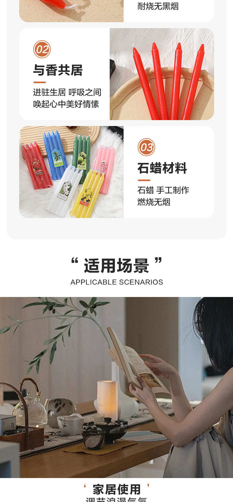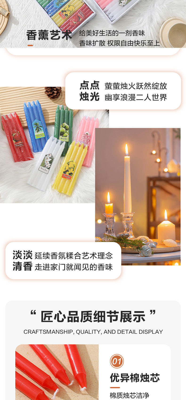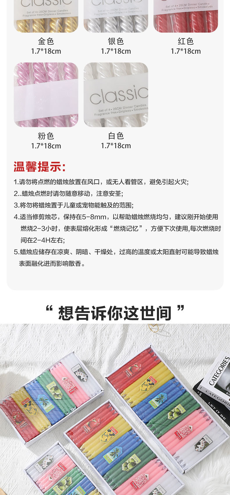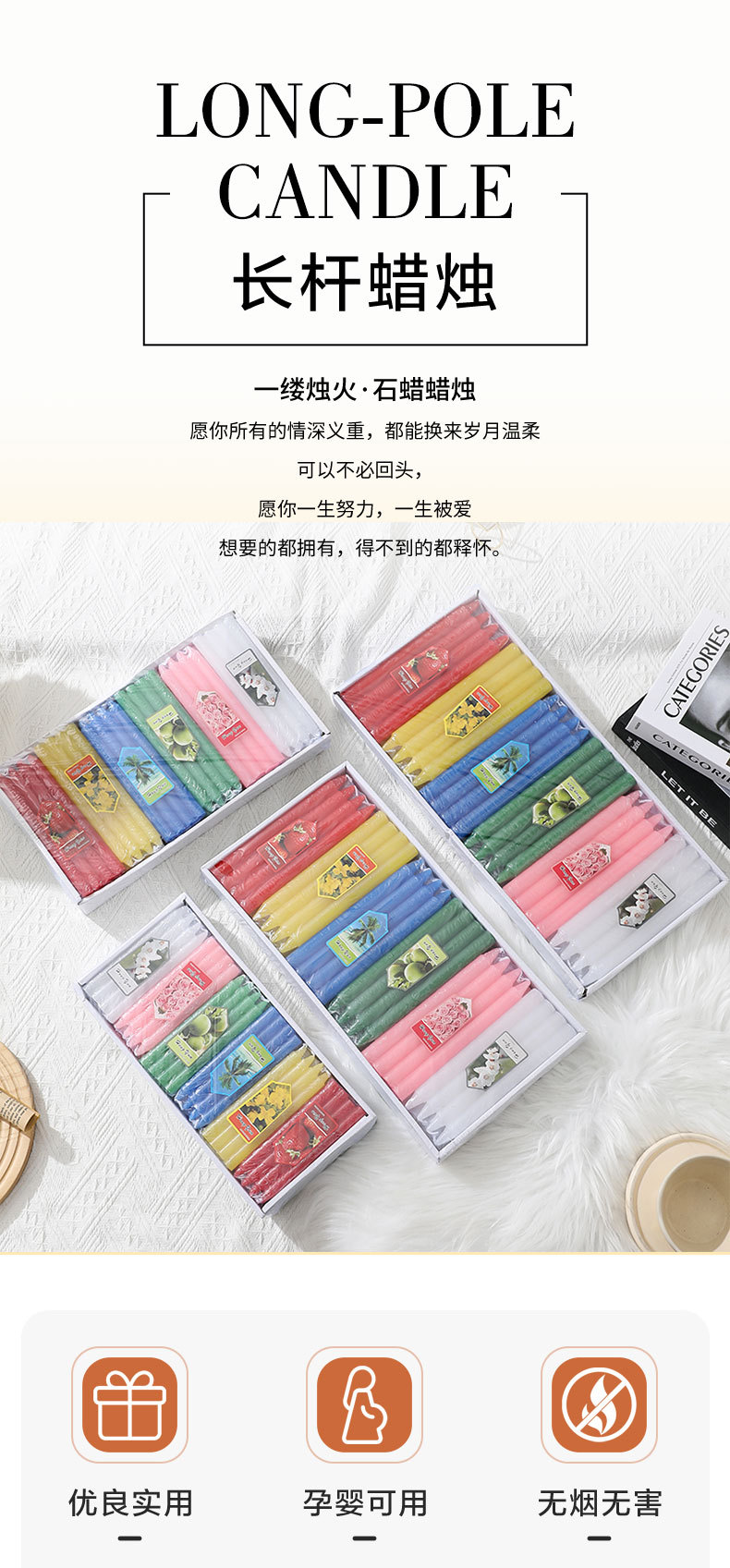 跨境专供展示盒彩色直杆蜡烛台蜡烛家用无烟照明烛光晚餐厂家批发