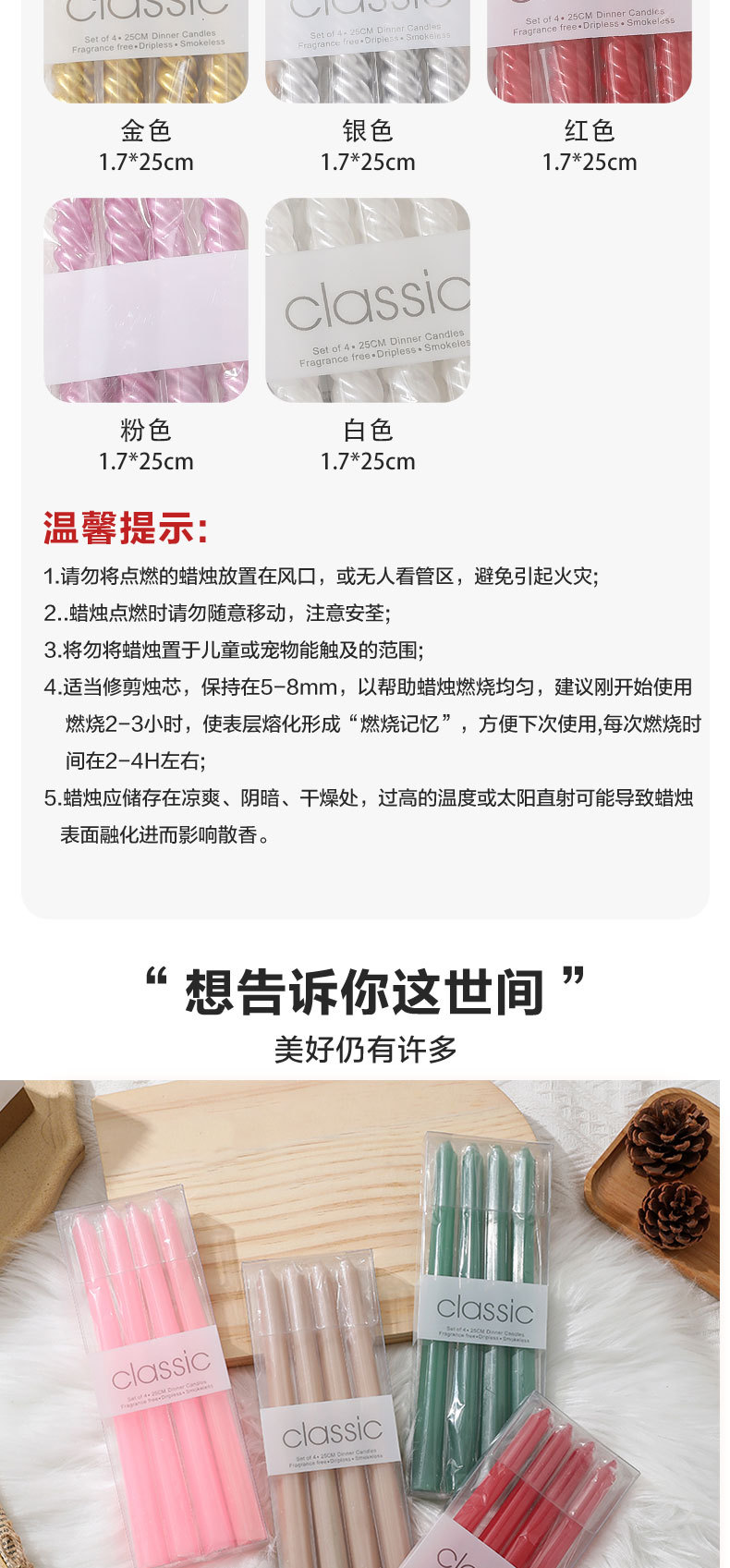 欧式彩色长杆烛台蜡烛家用停电应急聚会氛围照明批发网红款氛围感