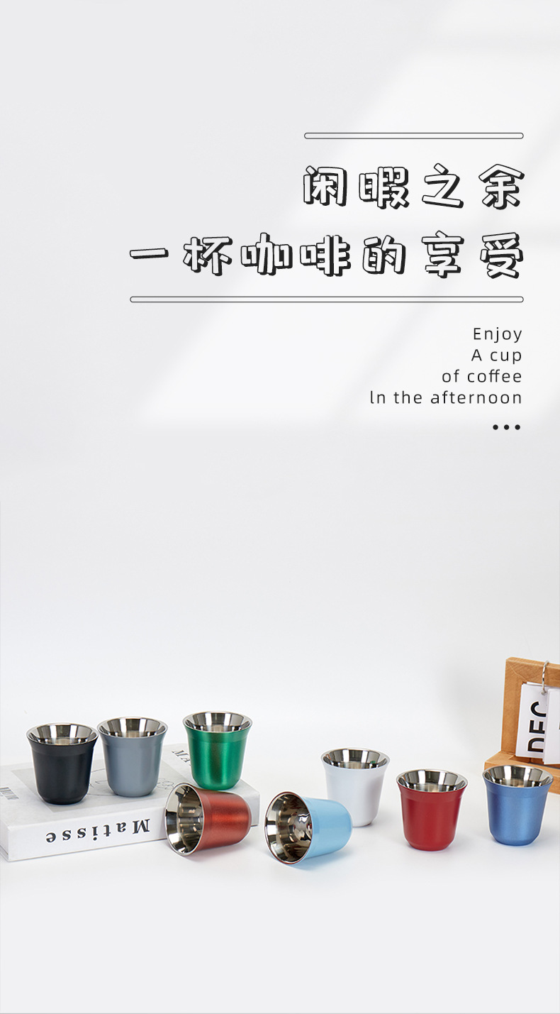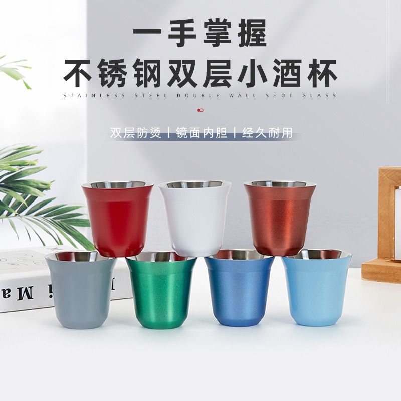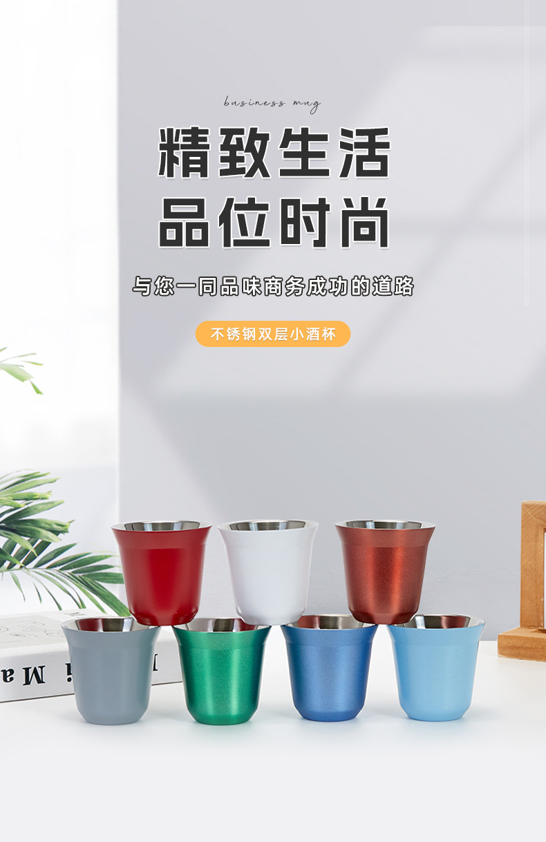 新款迷你不锈钢小酒杯双层简约隔热啤酒杯家用防烫直饮咖啡杯批发