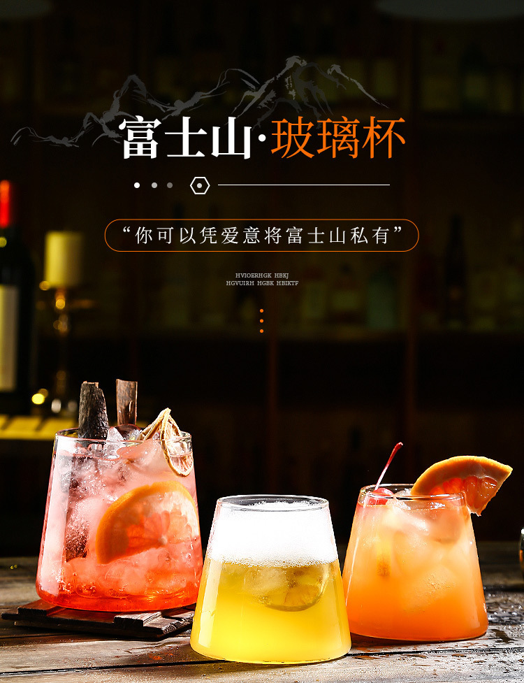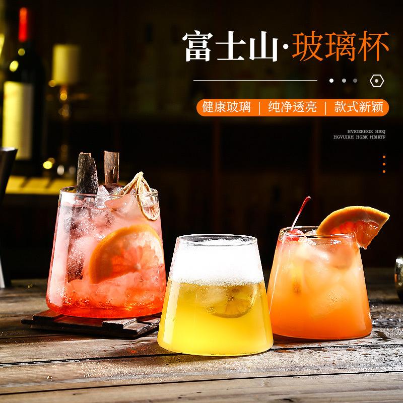 厂家供应高硼硅玻璃单层杯酒杯透明果汁冷饮玻璃杯富士山玻璃杯