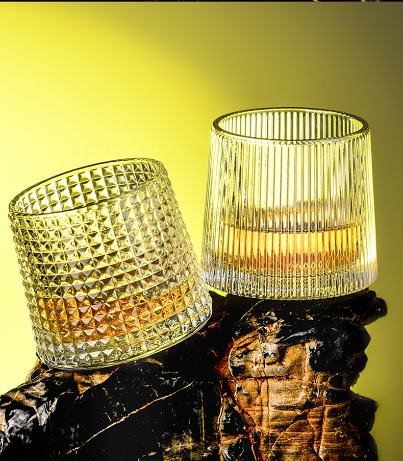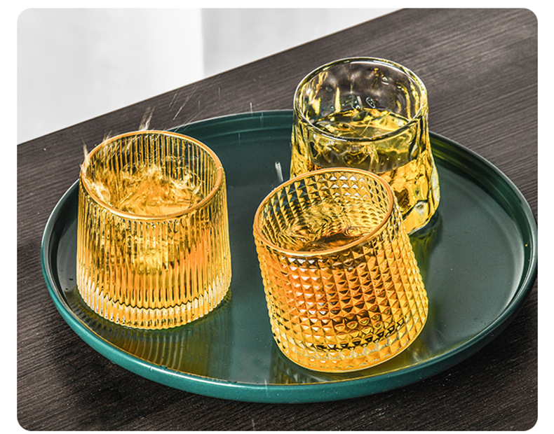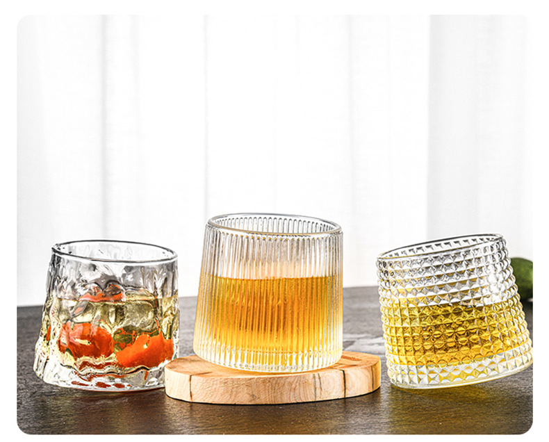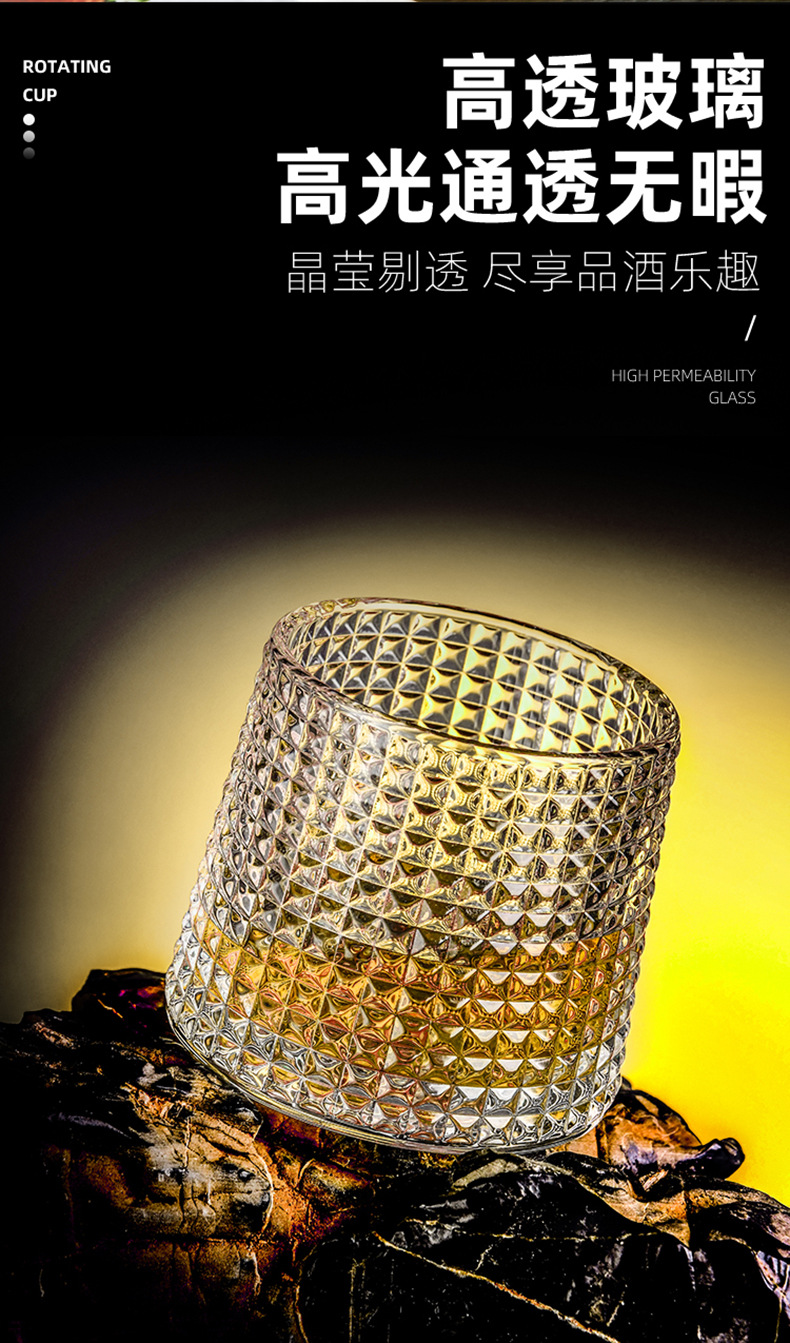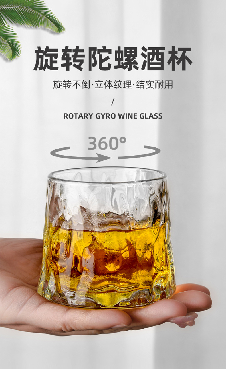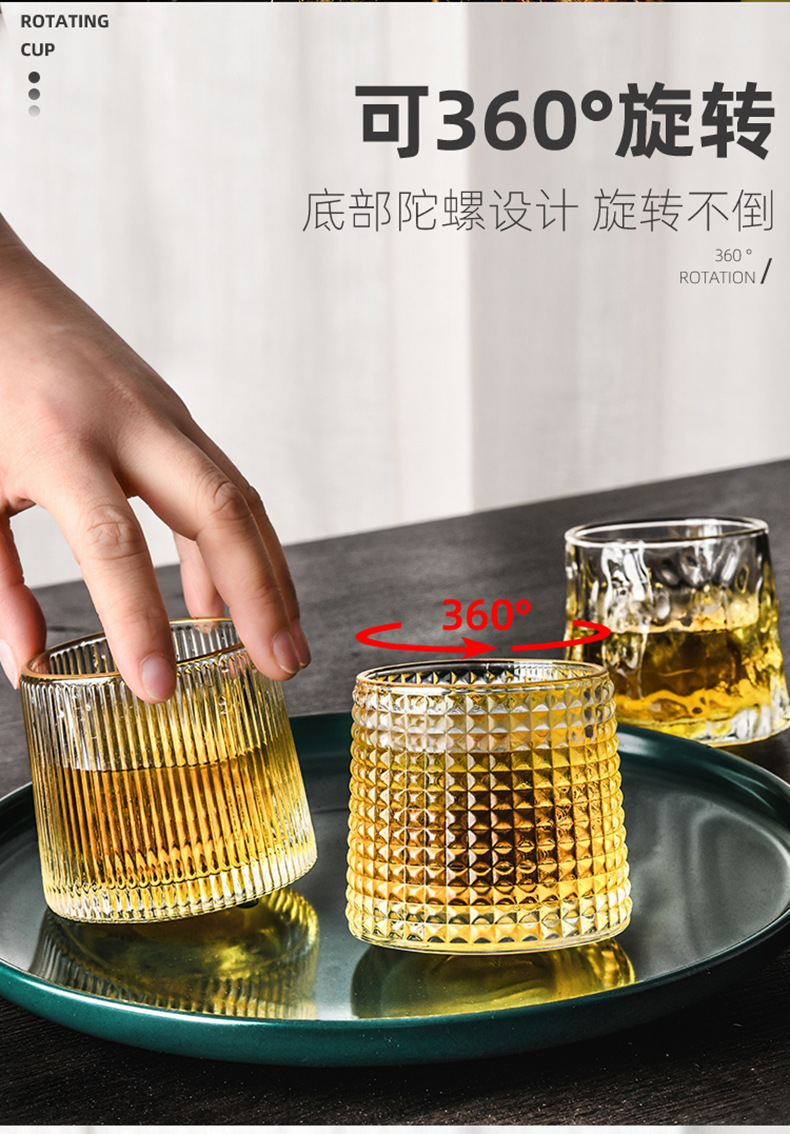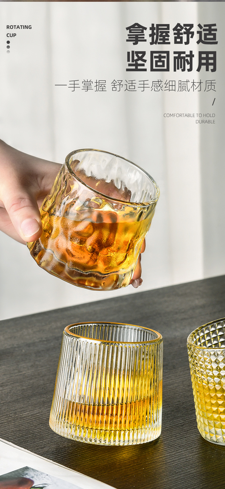 批发创意转转杯不倒翁玻璃杯锤纹酒吧红酒杯摇摇杯解压杯威士忌杯