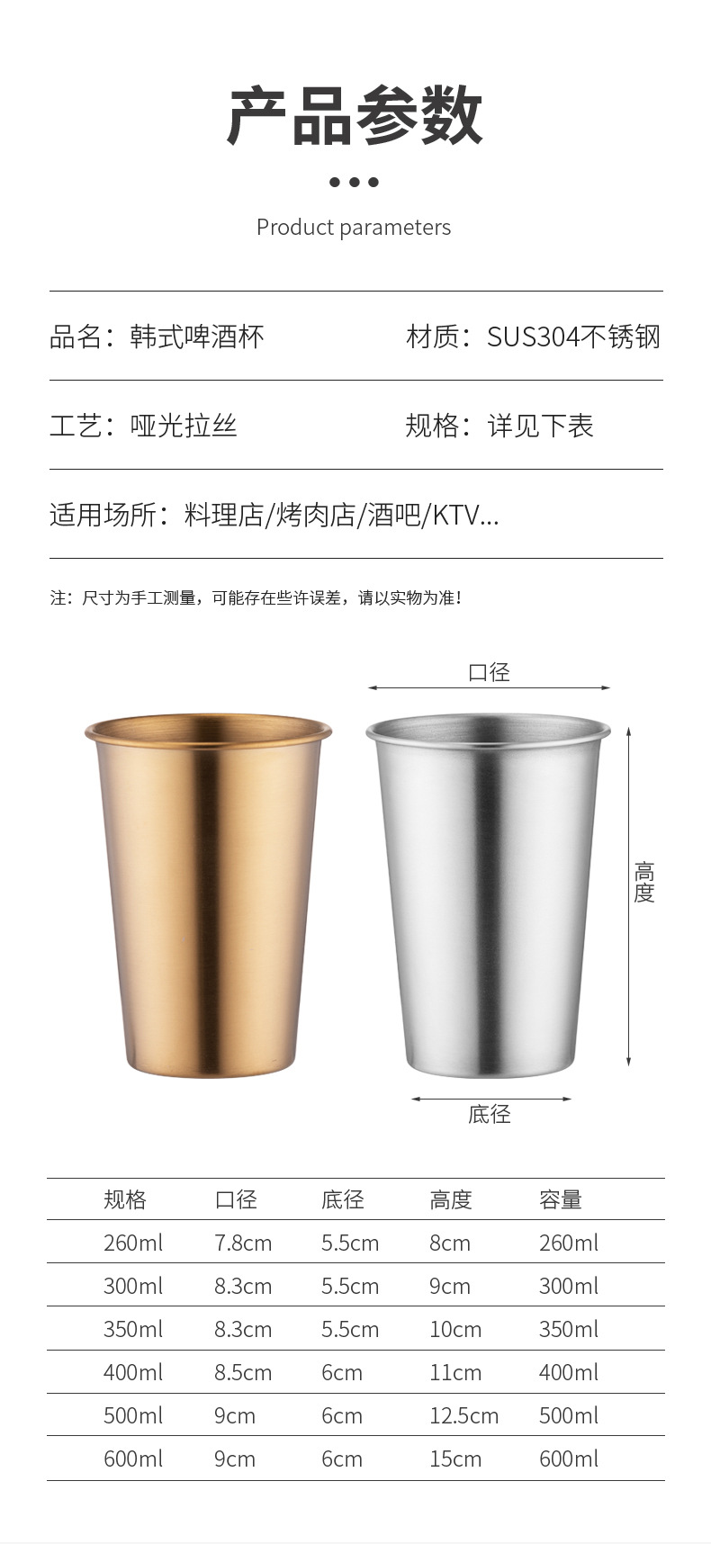 跨境货源厂家直销304不锈钢杯子啤酒杯户外露营水杯咖啡杯马克杯