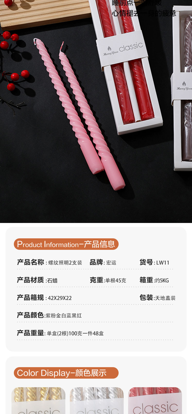 经典10寸彩色欧式两支螺纹照明蜡烛批发家用浪漫婚庆派对装饰蜡烛
