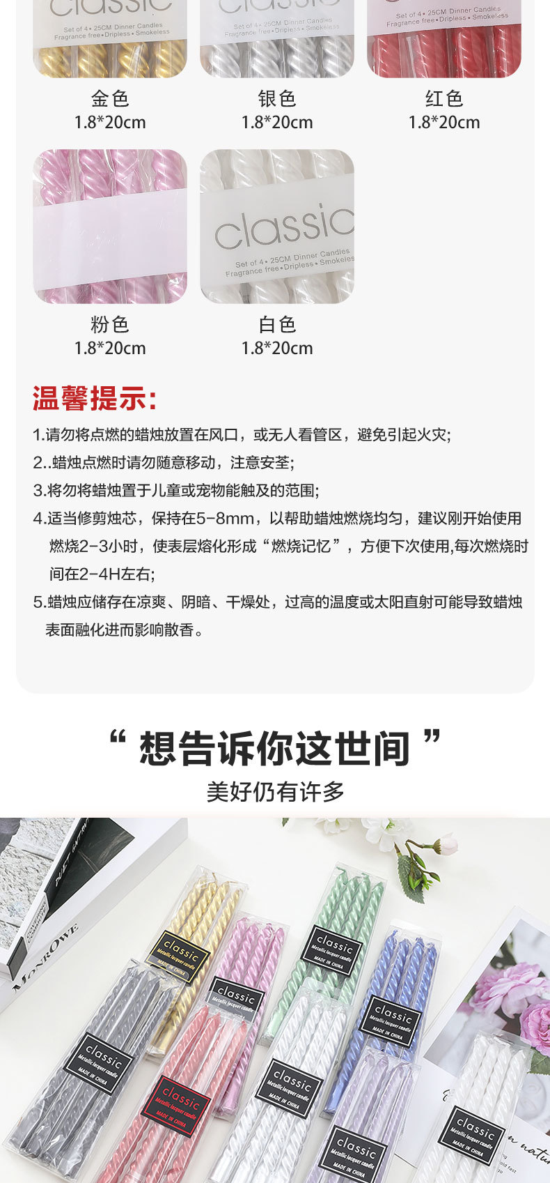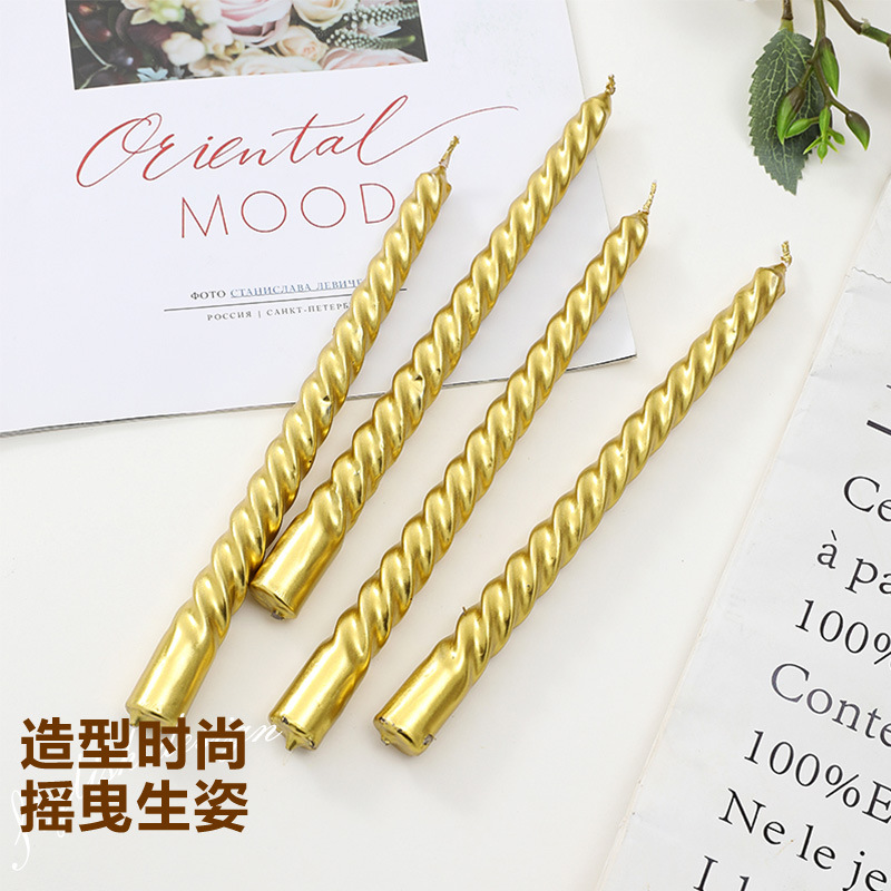 长杆电镀螺纹蜡烛家用无烟烛光晚餐婚宴浪漫装饰厂家批发家居装饰