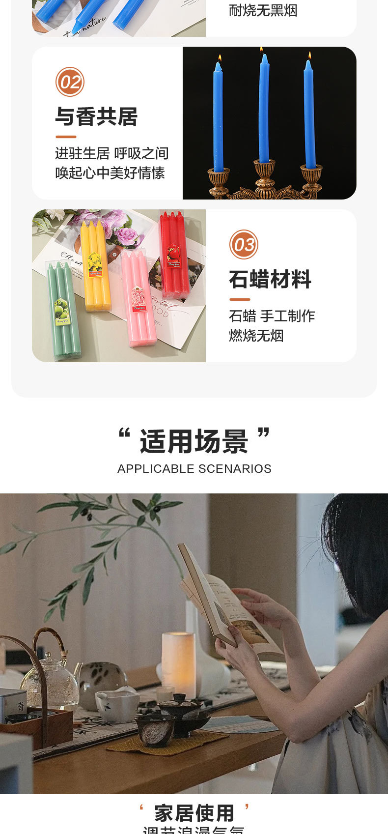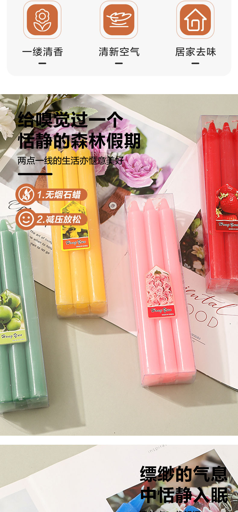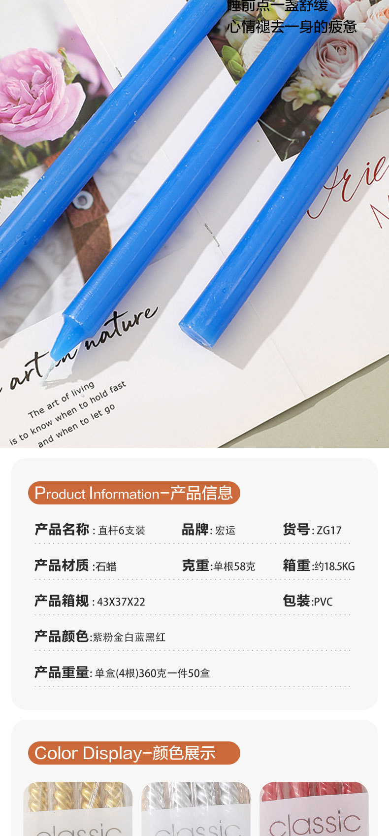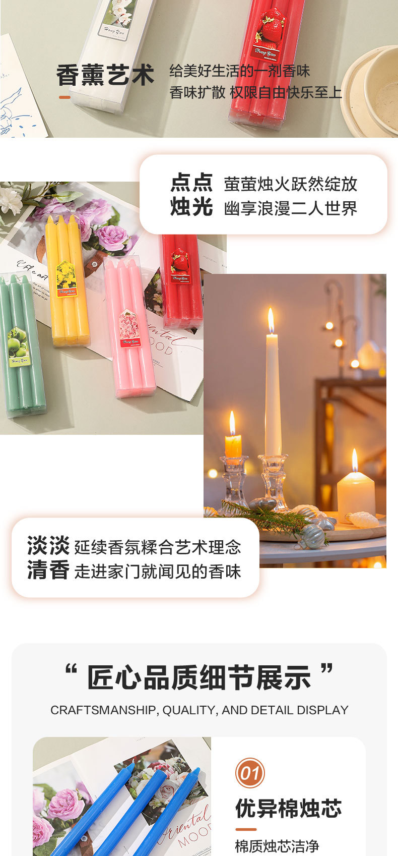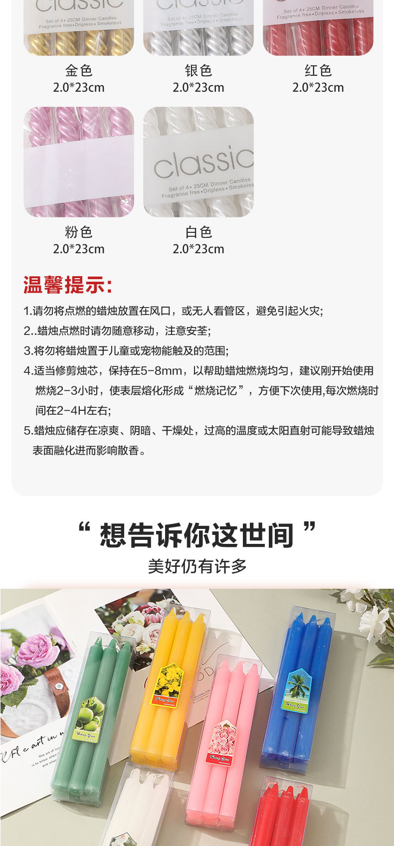 23CM跨境专供欧式直杆蜡烛烛光晚餐彩色婚庆婚礼装饰厂家批发火焰