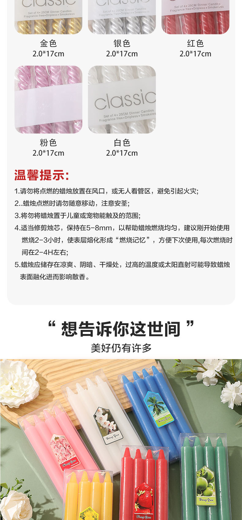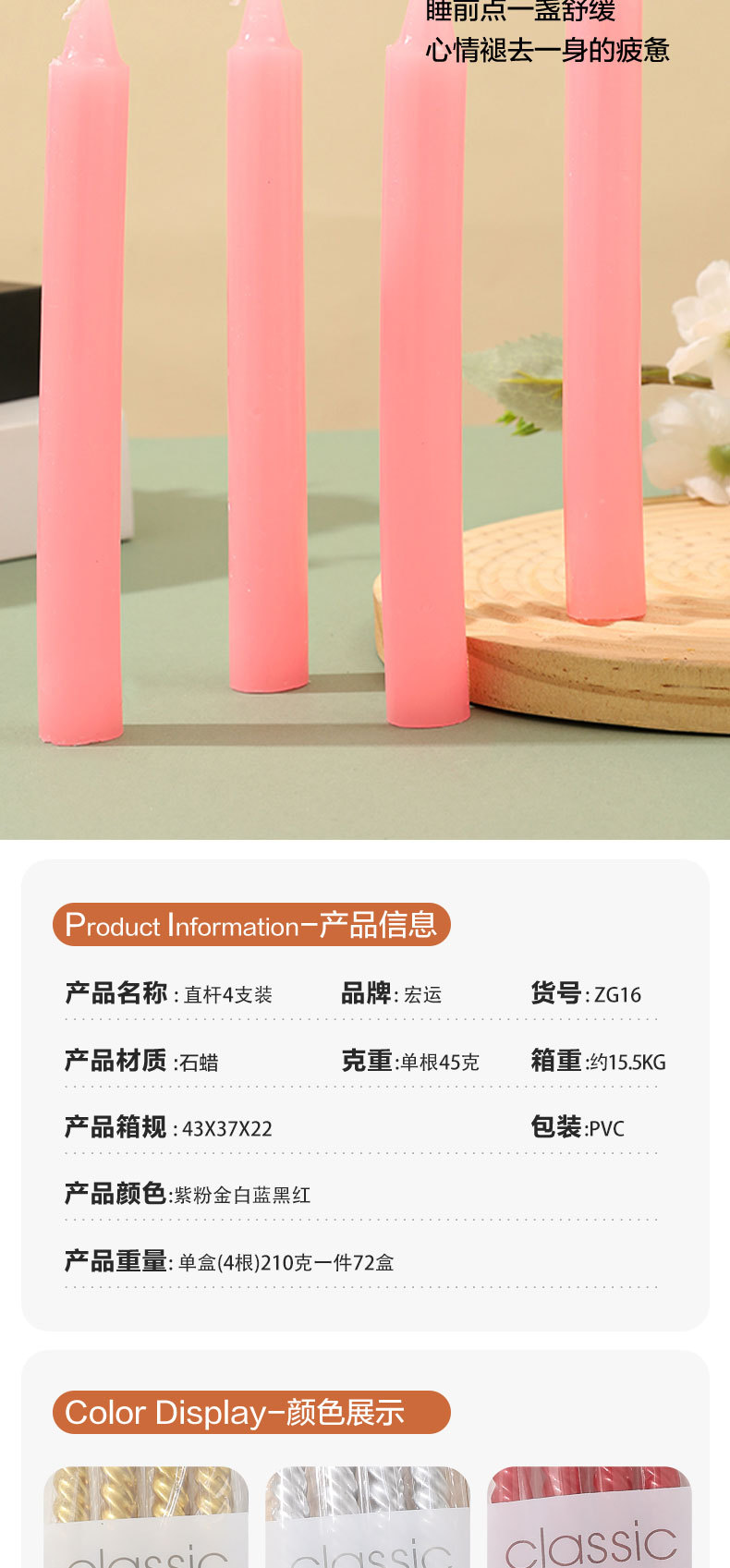 17CM普色照明应急直杆蜡烛创意烛光晚餐彩色婚礼装饰外贸厂家批发