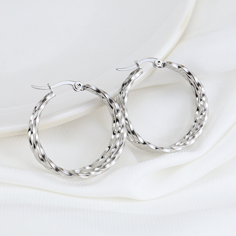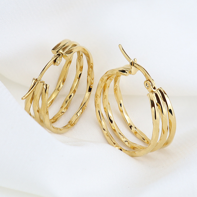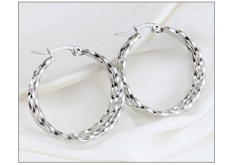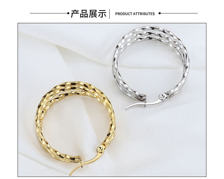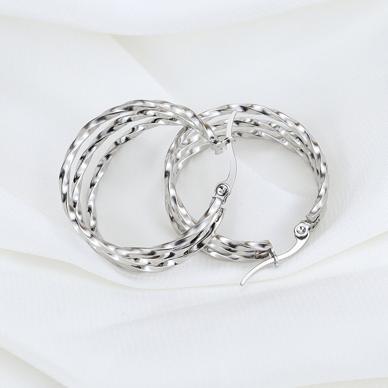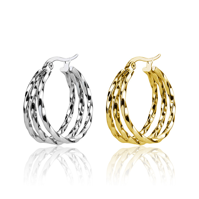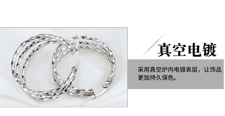 韩版时尚钛钢圆圈方线耳环不锈钢三圈扭线耳扣饰品厂家直销