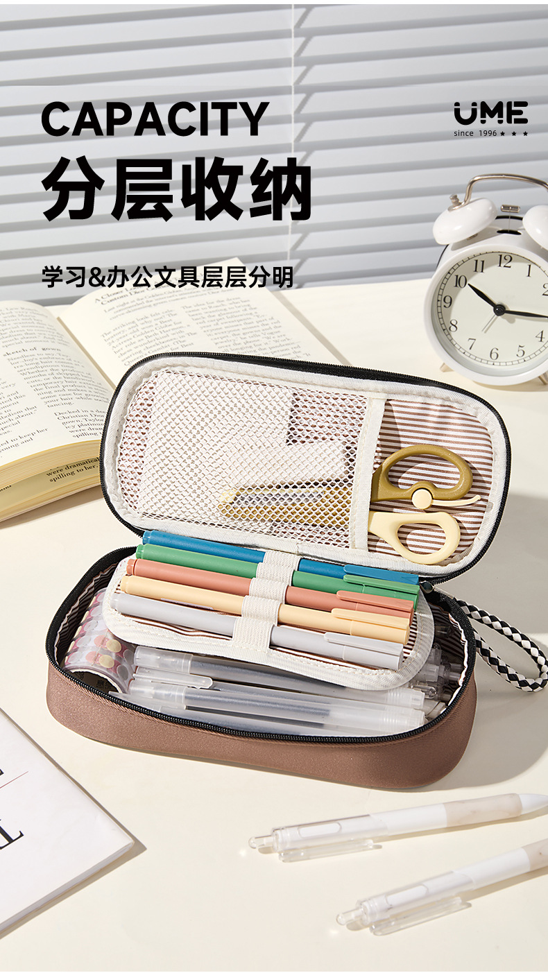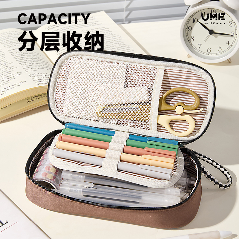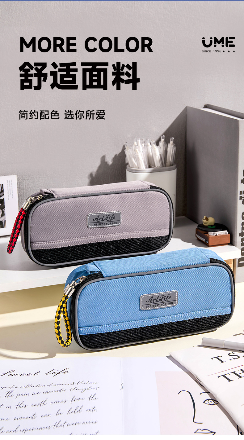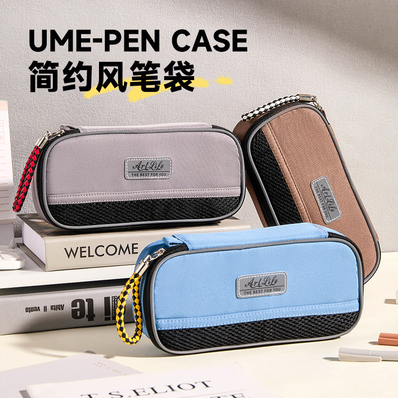 联众学生笔袋大容量简约高中双层文具袋高颜值耐脏便携男孩铅笔盒