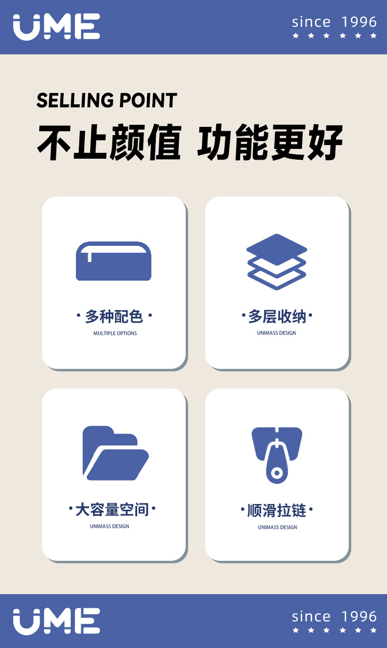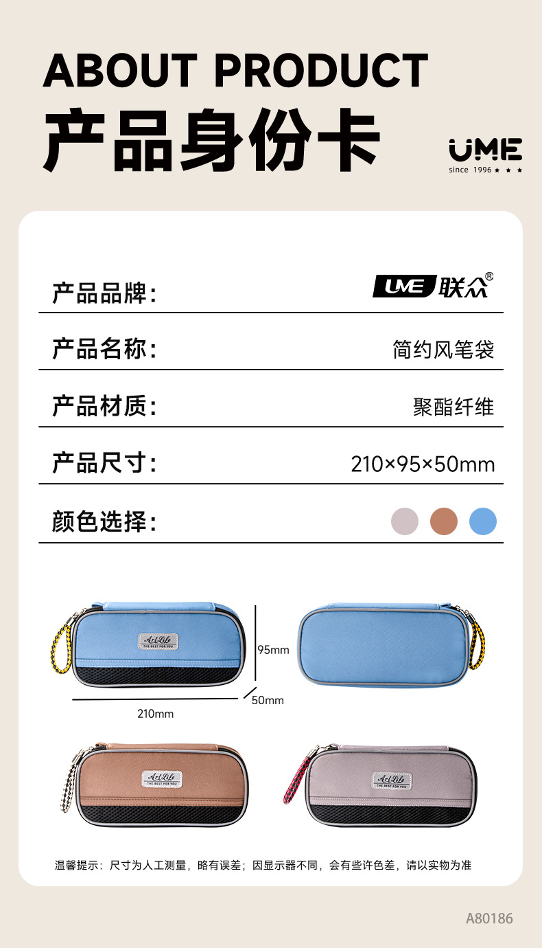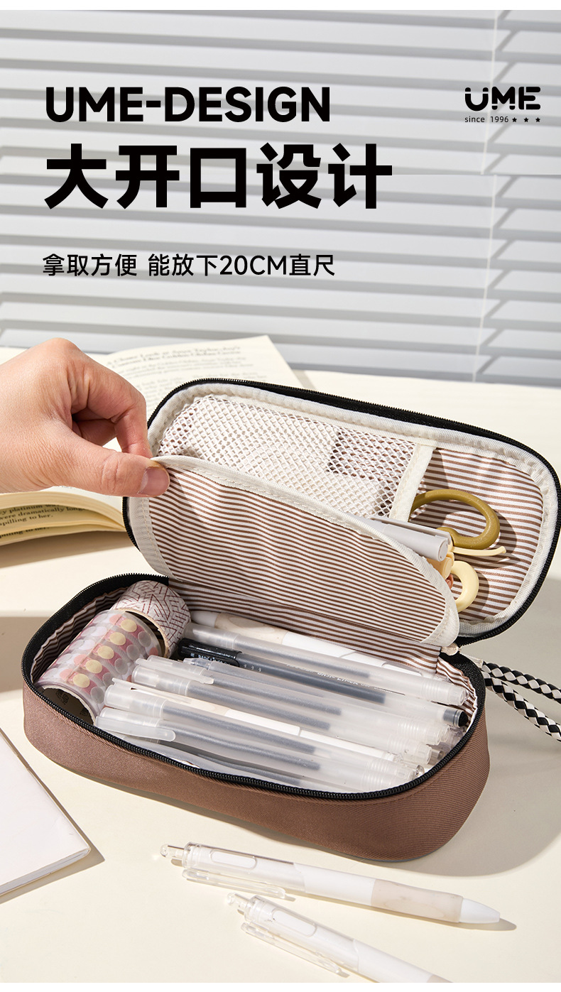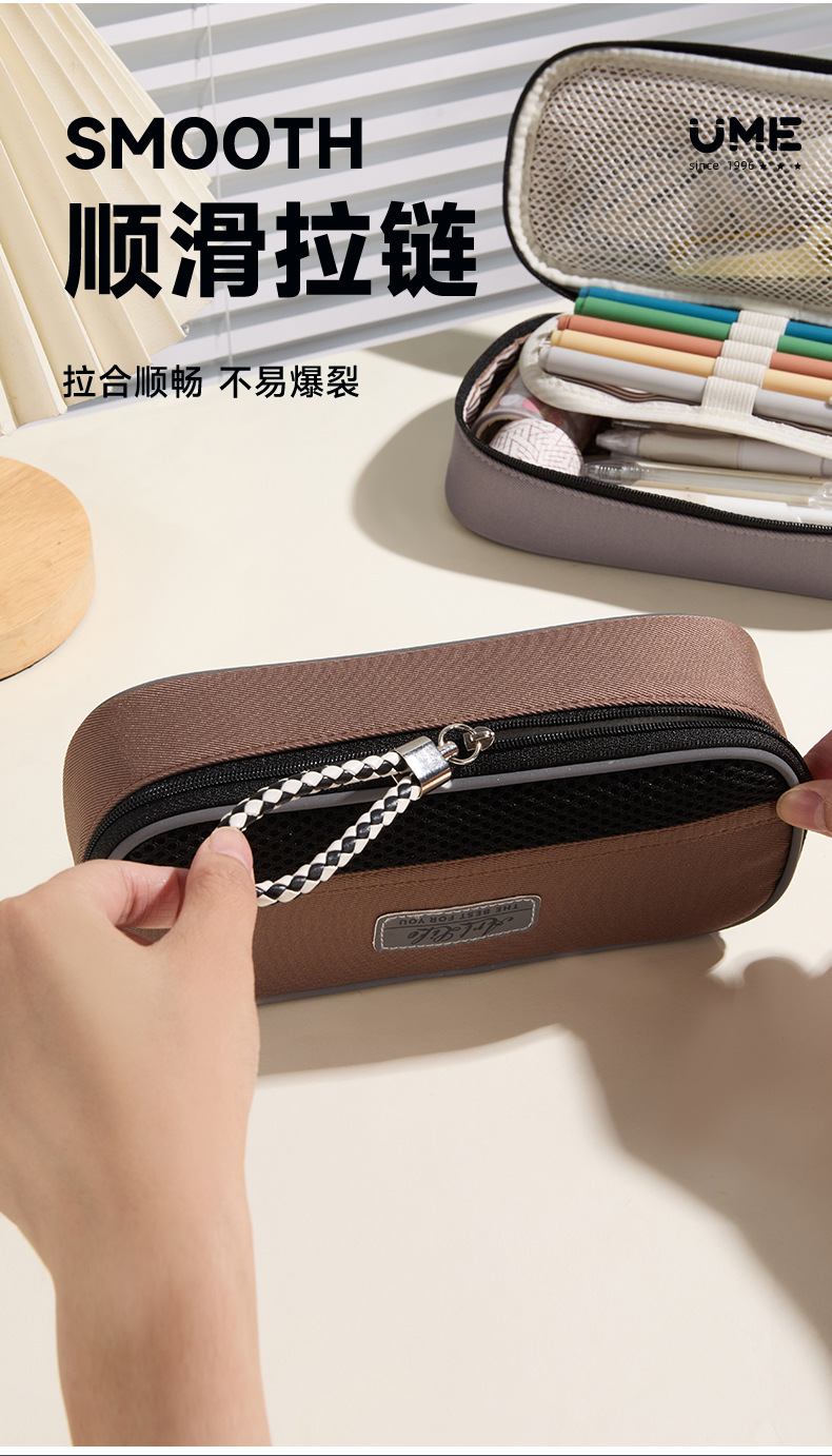 联众学生笔袋大容量简约高中双层文具袋高颜值耐脏便携男孩铅笔盒