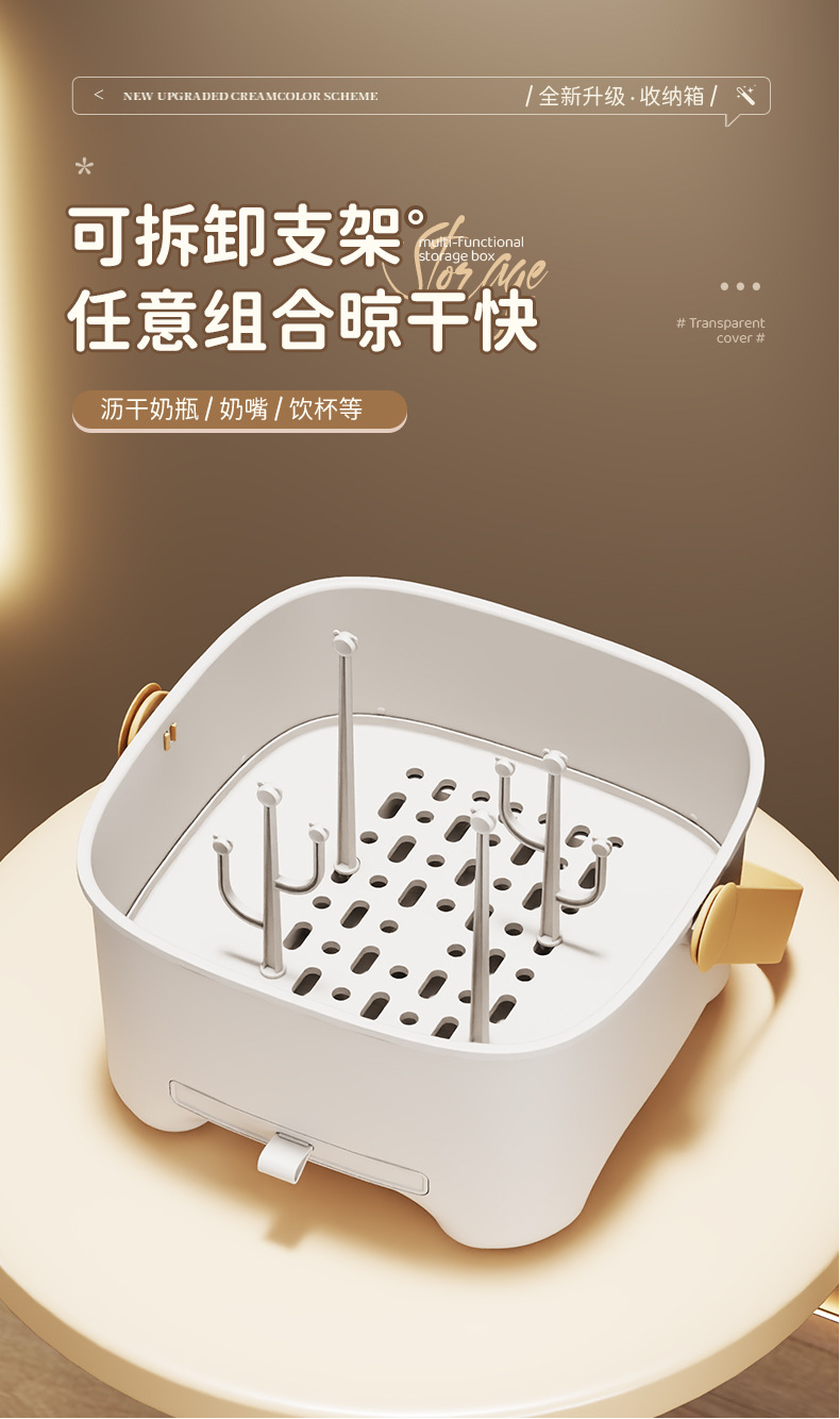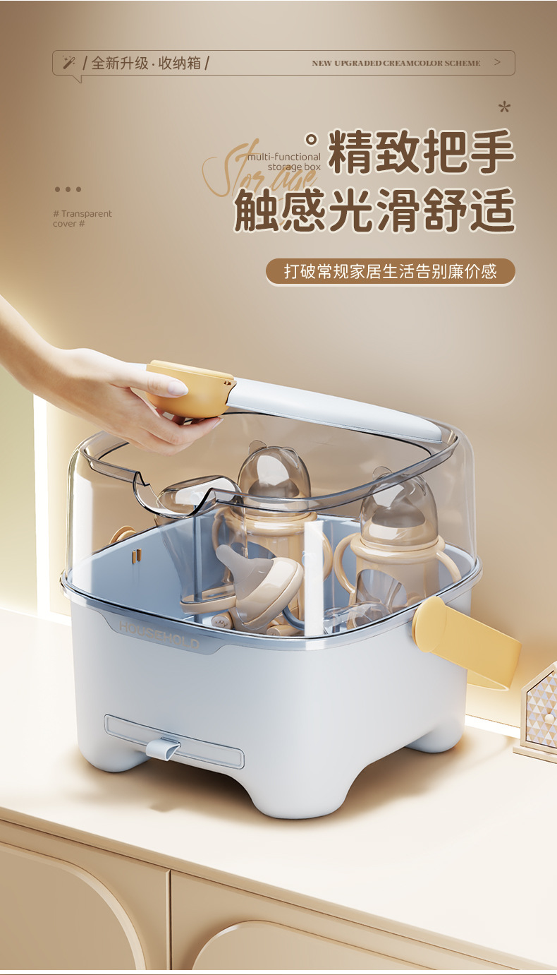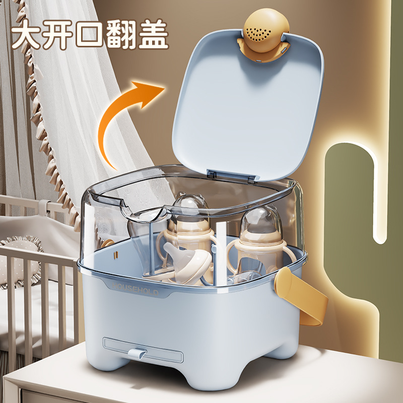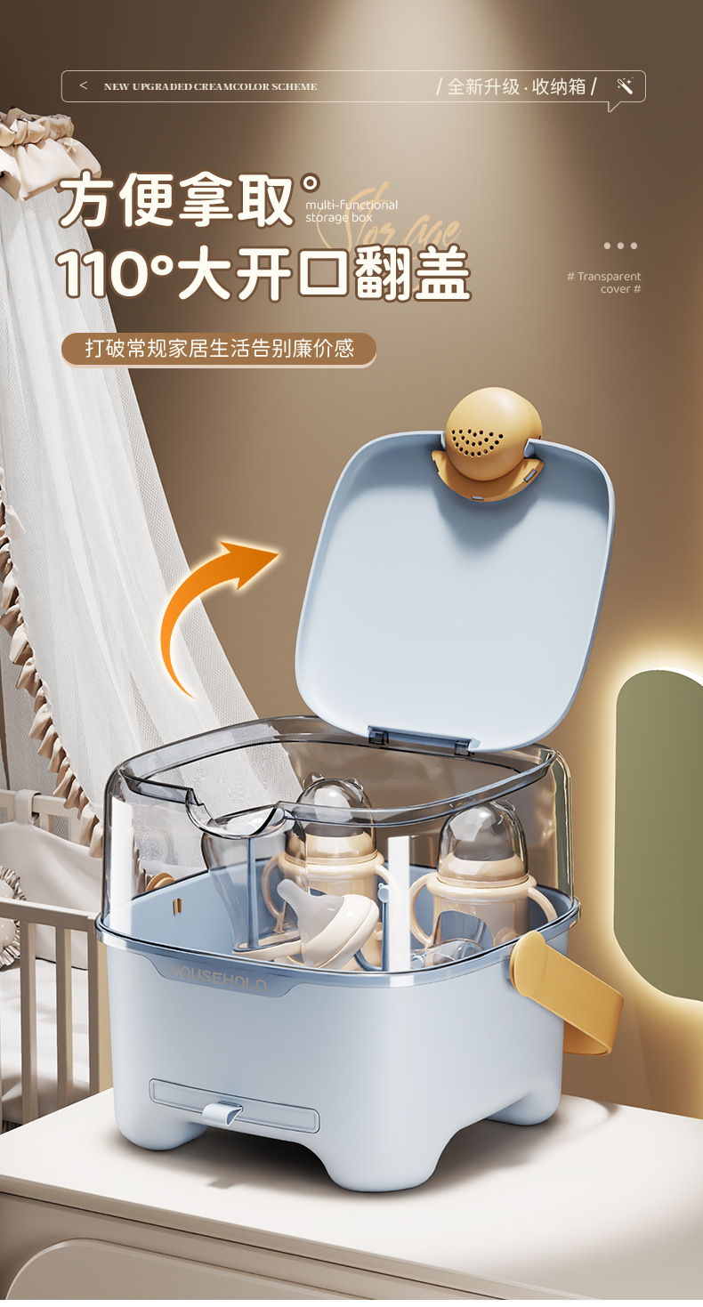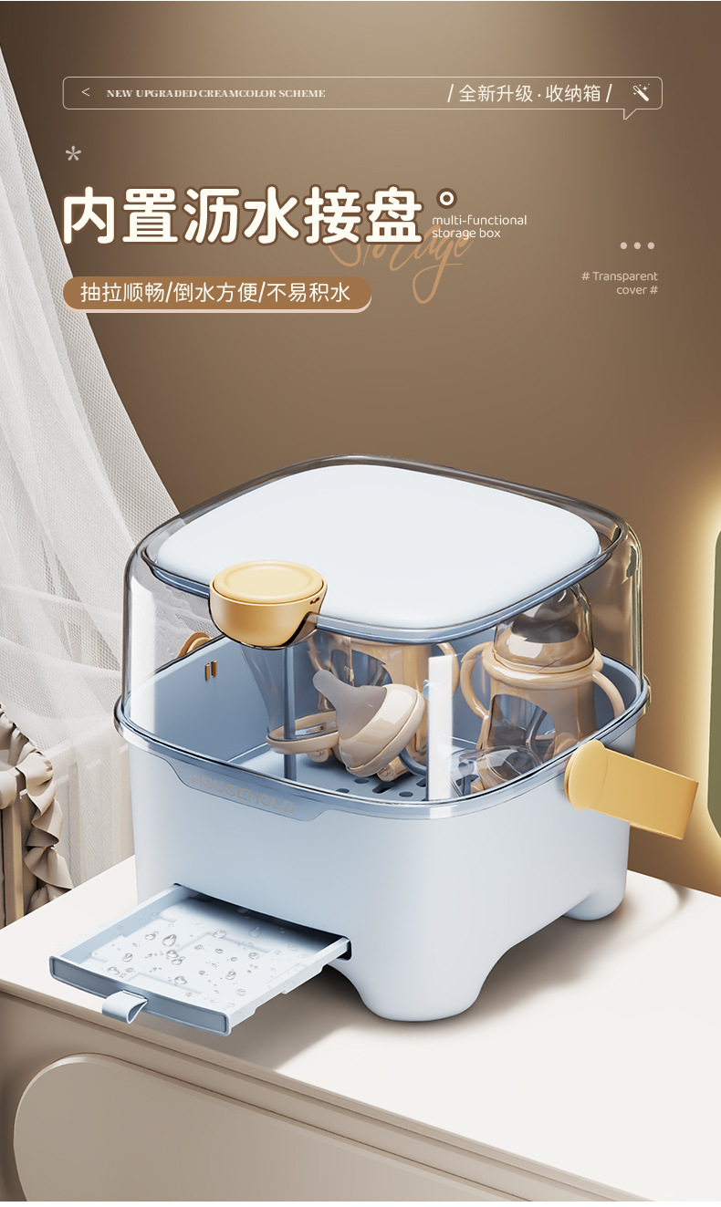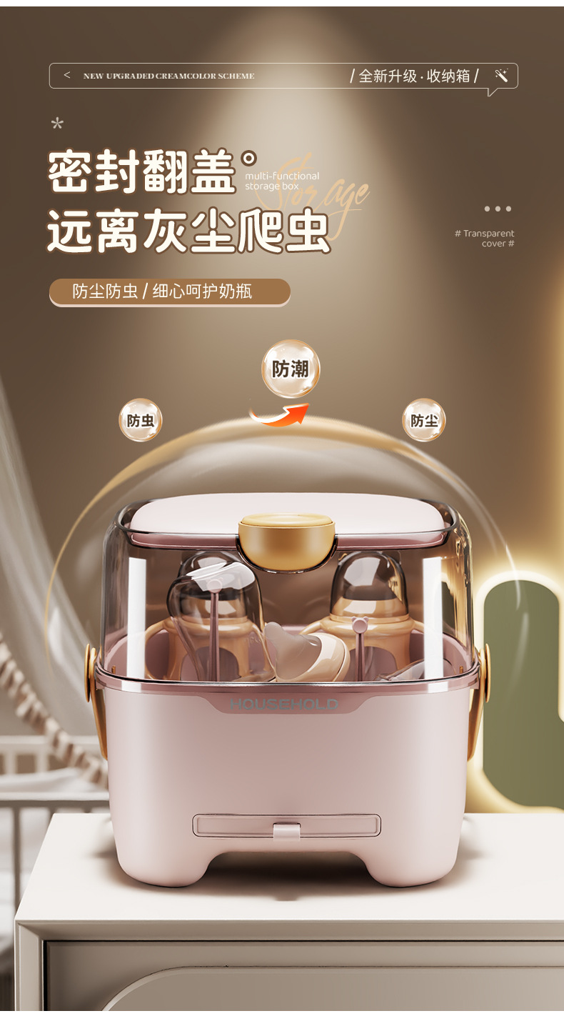 家用奶瓶收纳箱沥水架子卧室防尘带盖婴儿宝宝辅食工具餐具收纳盒