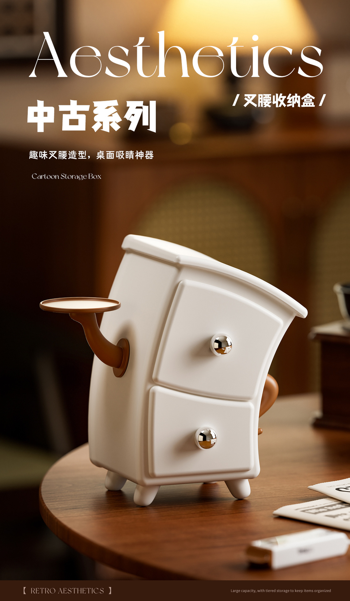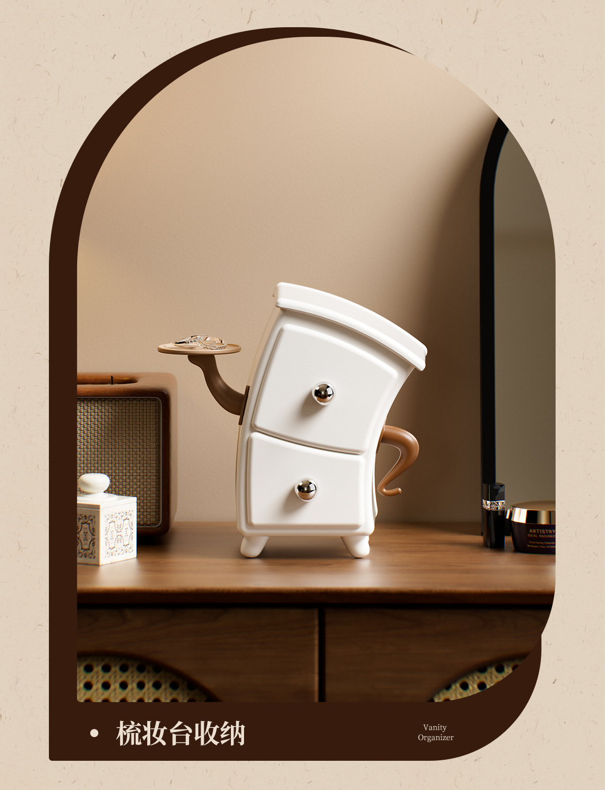 梳妆台首饰耳环分格整理架玄关叉腰柜子创意弯腰抽屉式桌面收纳盒
