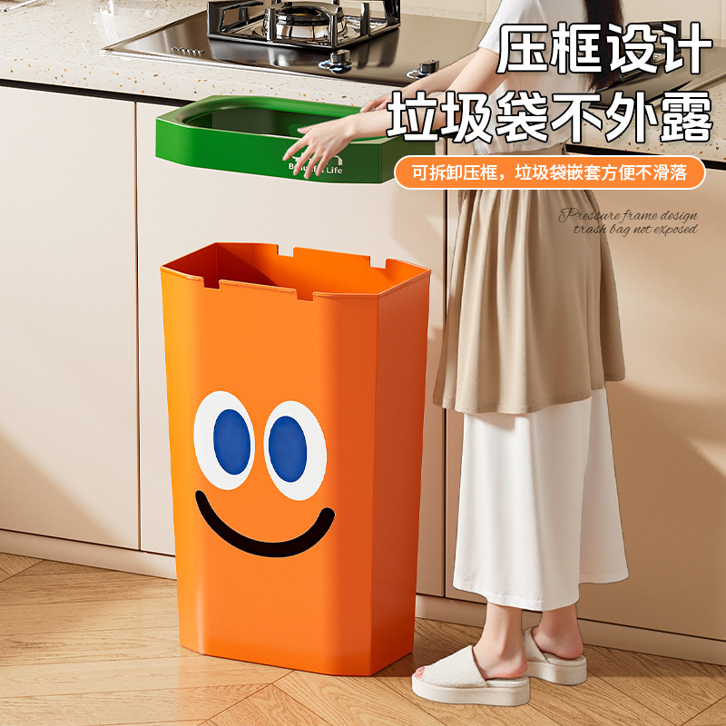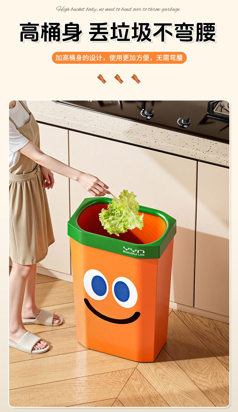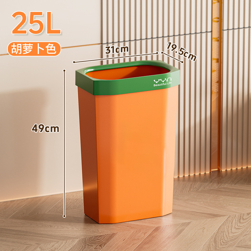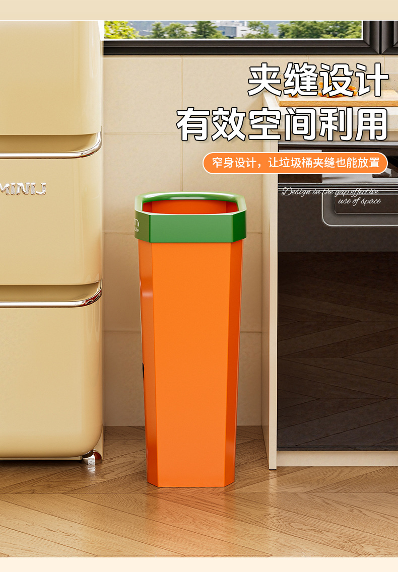 新款胡萝卜色夹缝无盖收纳桶垃圾桶防漏北欧风可移动压圈款省空间