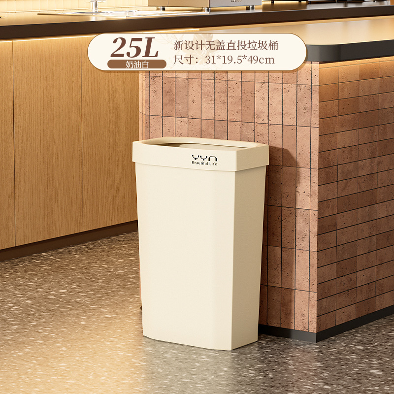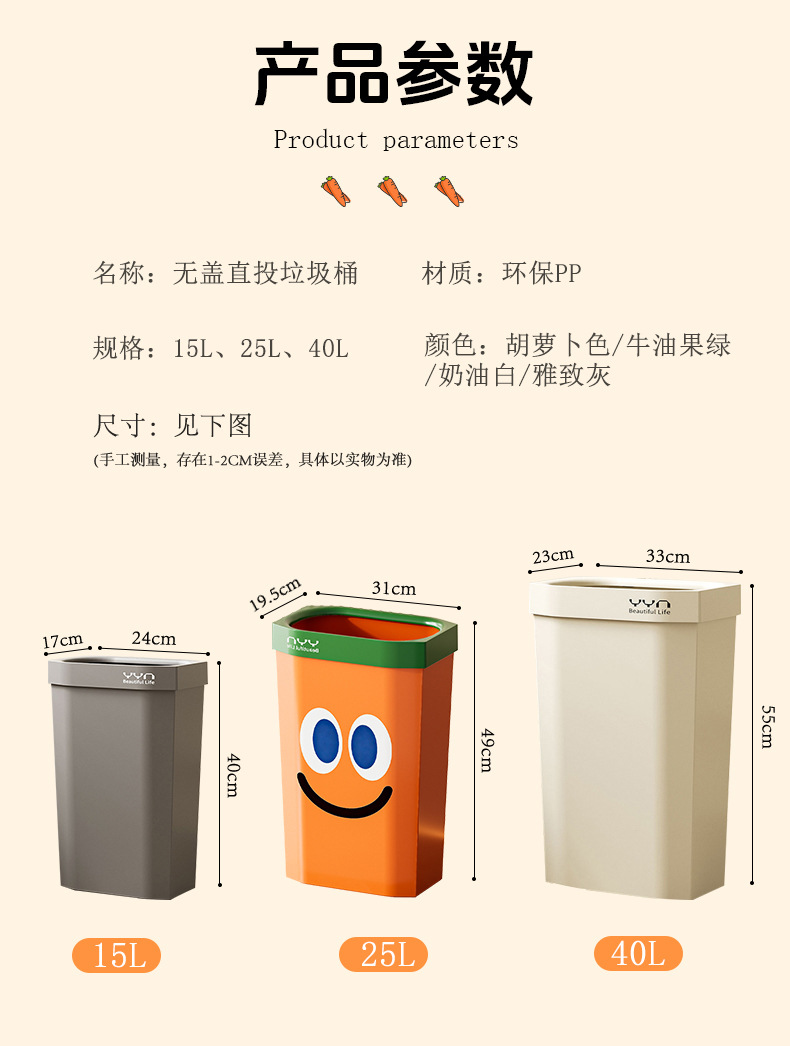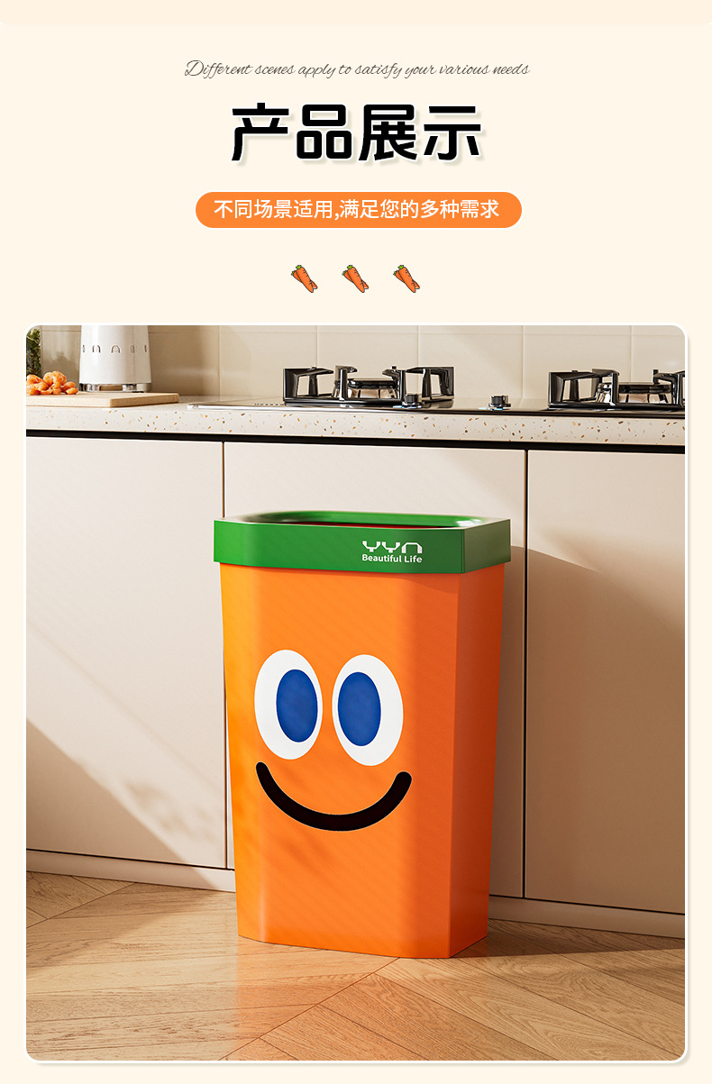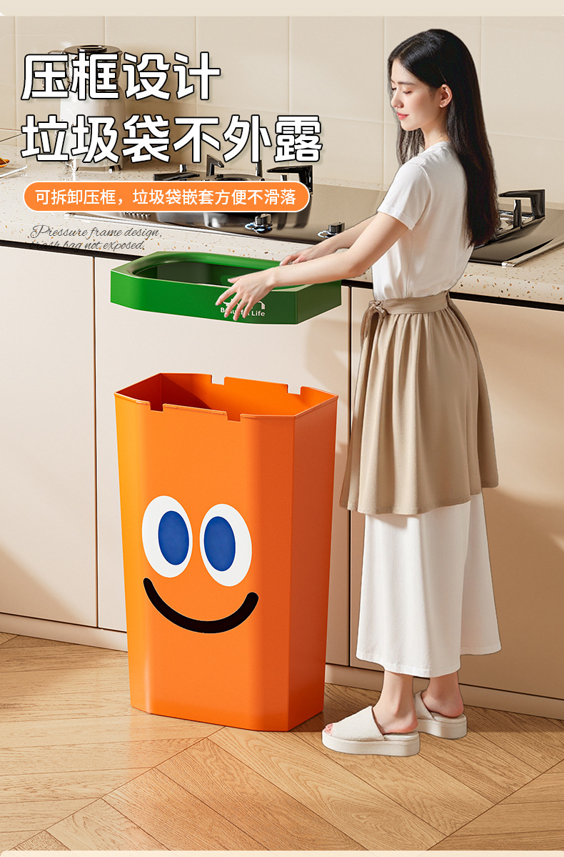 新款胡萝卜色夹缝无盖收纳桶垃圾桶防漏北欧风可移动压圈款省空间