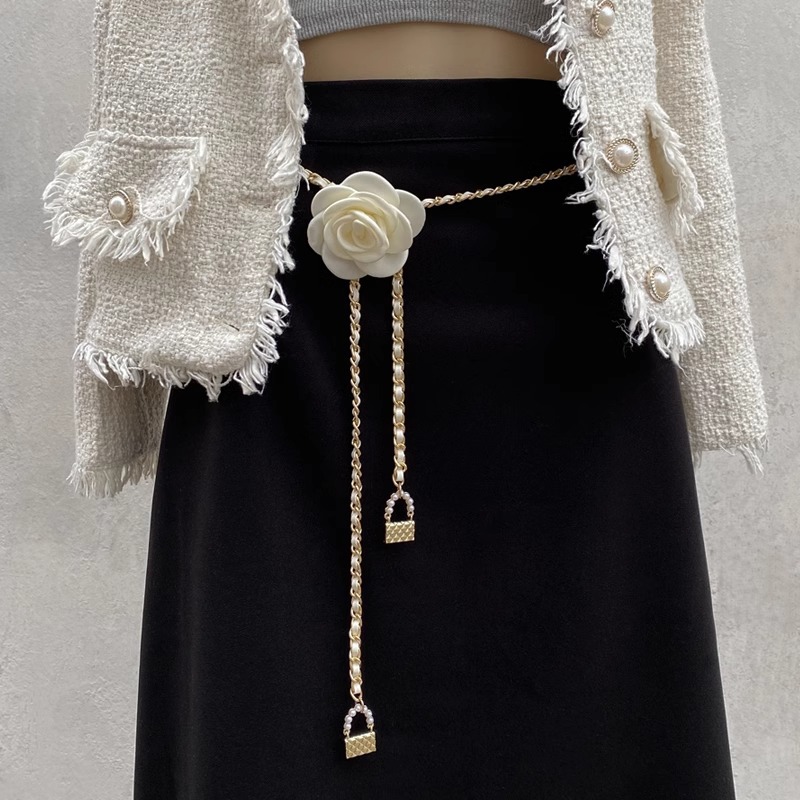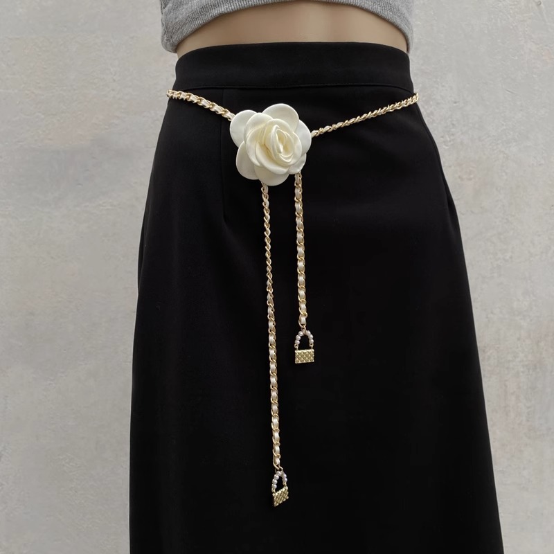 山茶花腰链配饰女花朵链条腰带装饰配连衣裙子高级感牛仔裤链子细