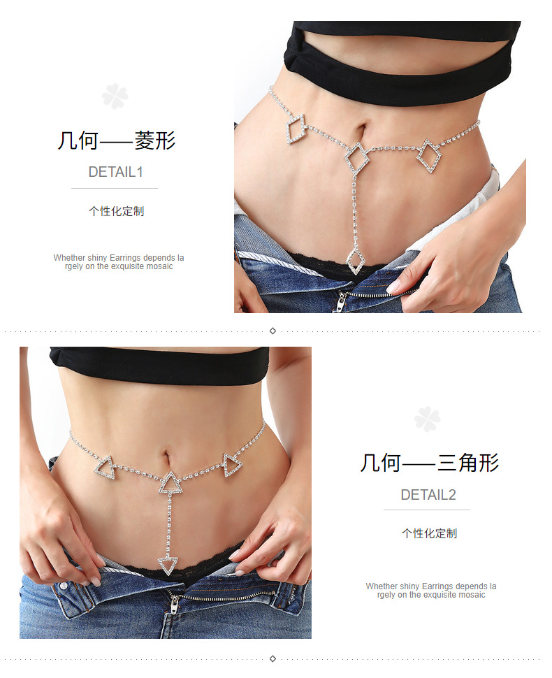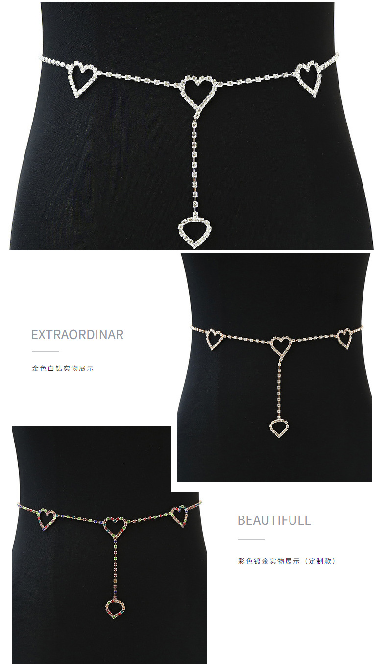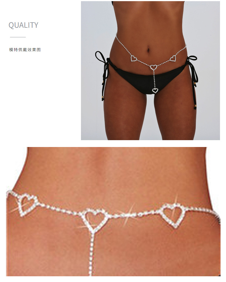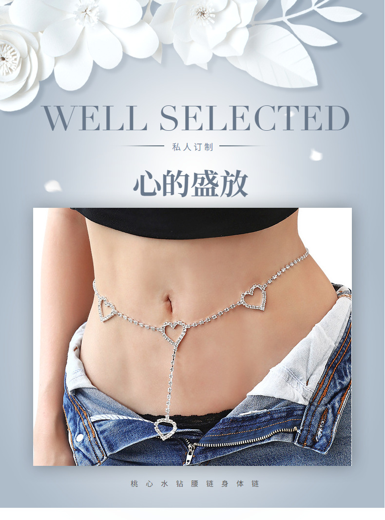 跨境时尚饰品比基尼创意水钻腰饰身体链桃心吊坠几何裙裤腰链装饰