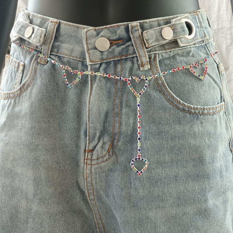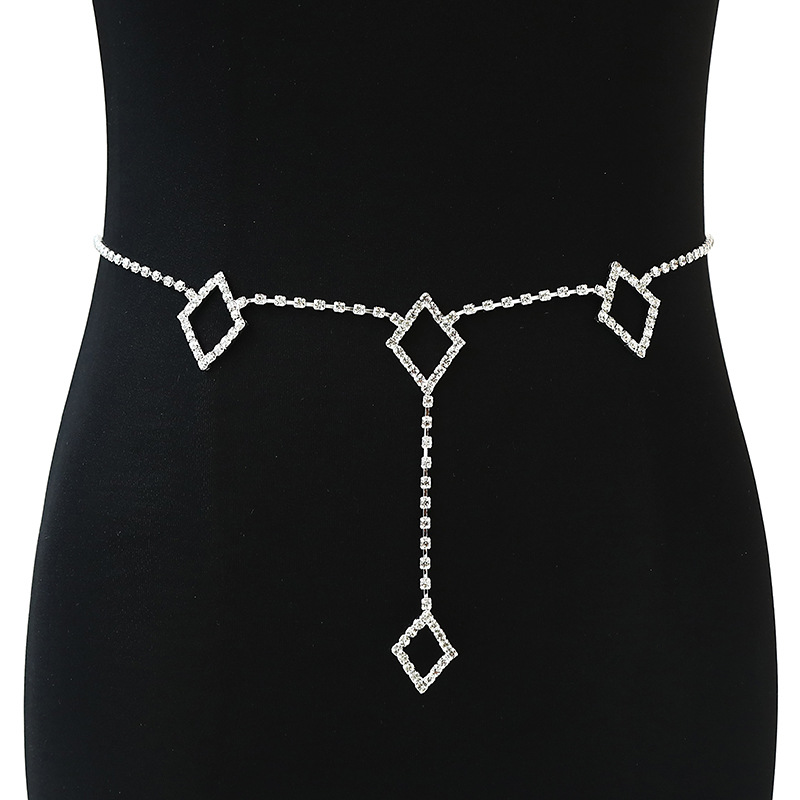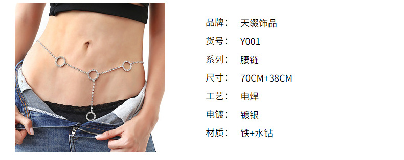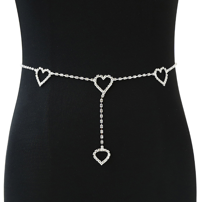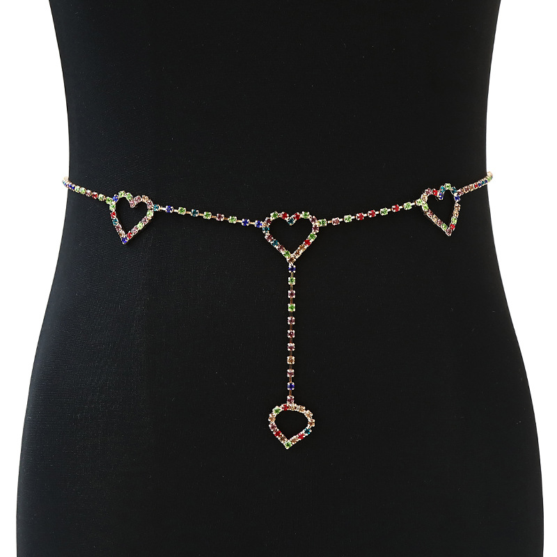 跨境时尚饰品比基尼创意水钻腰饰身体链桃心吊坠几何裙裤腰链装饰