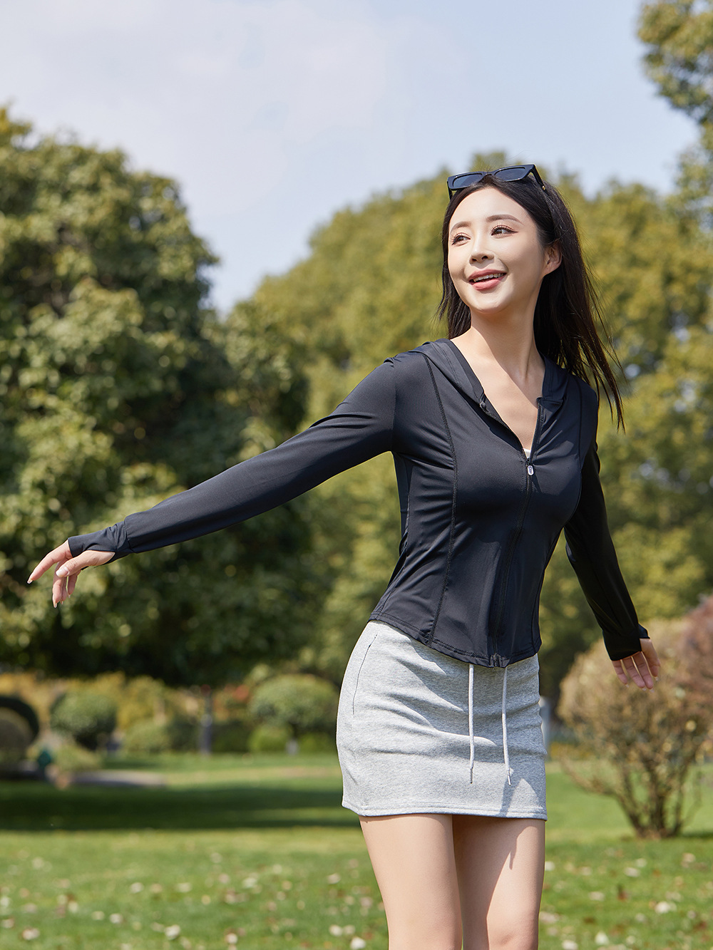 小嘢同款锦纶防晒衣女短款修身遮阳防紫外线防晒服夏冰丝瑜伽外套