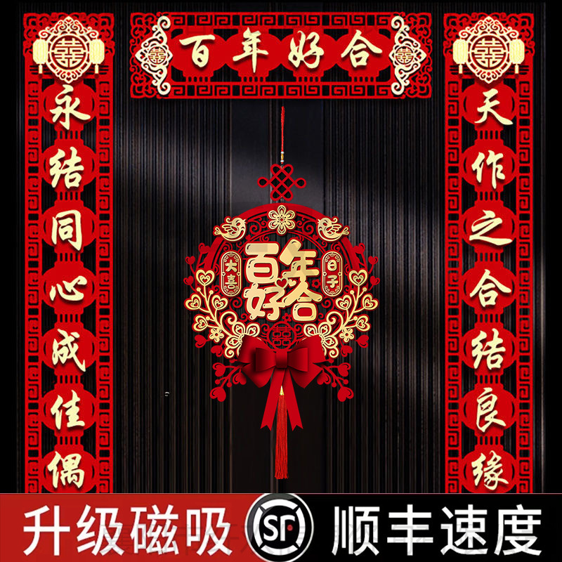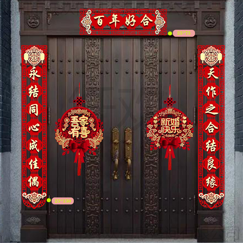 结婚对联喜联大门别墅农村自建房婚庆结婚男方女方喜字单元门整套