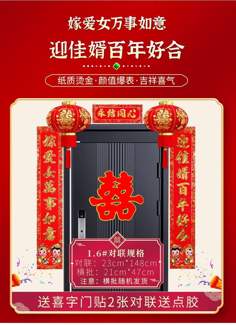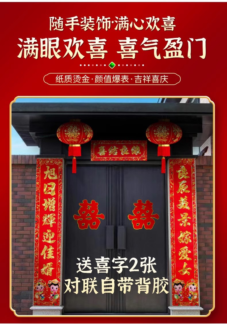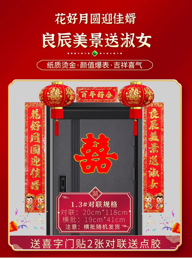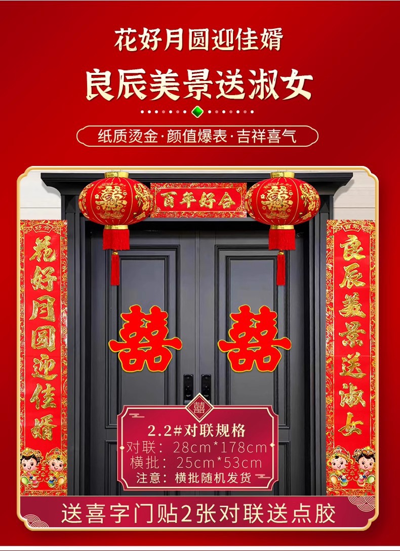 婚庆对联结婚农村大门喜联婚礼用品新婚婚房布置女方出嫁男方龙凤
