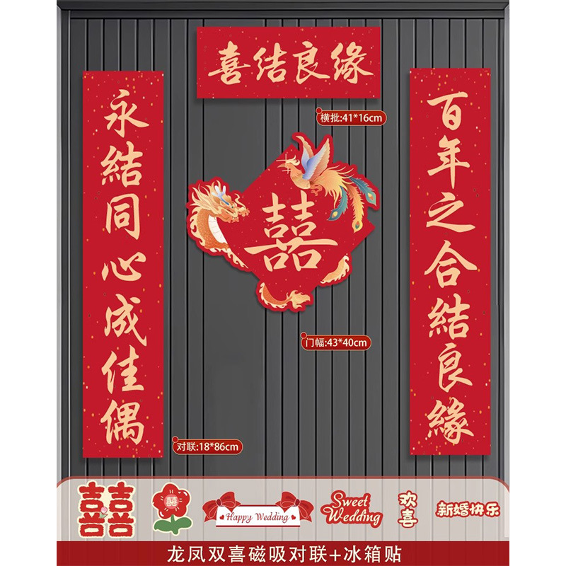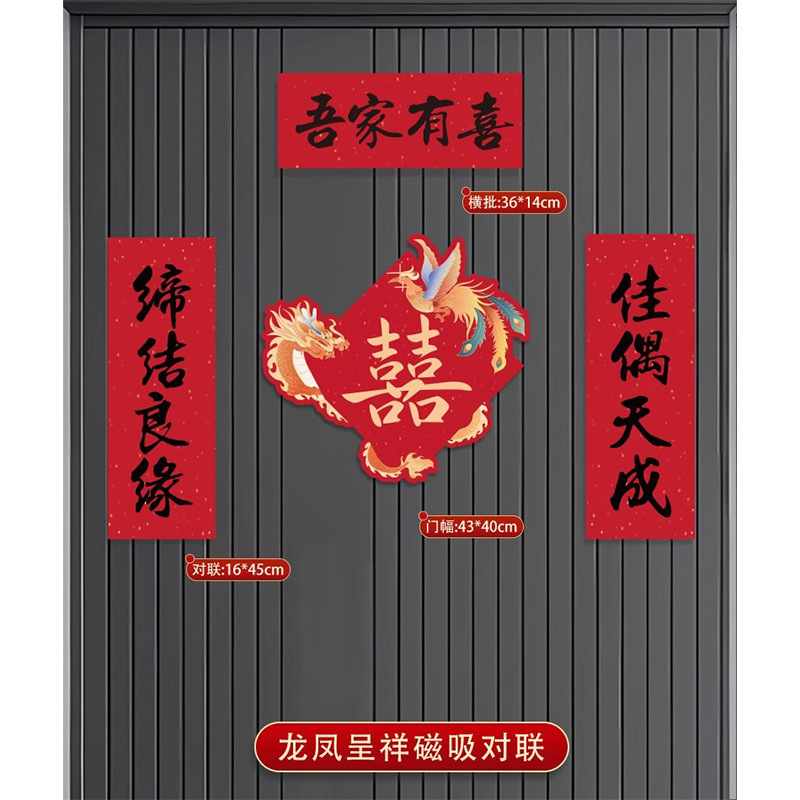 结婚对联磁吸男方新婚大门喜字婚联女方出嫁入户门贴婚房装饰用品