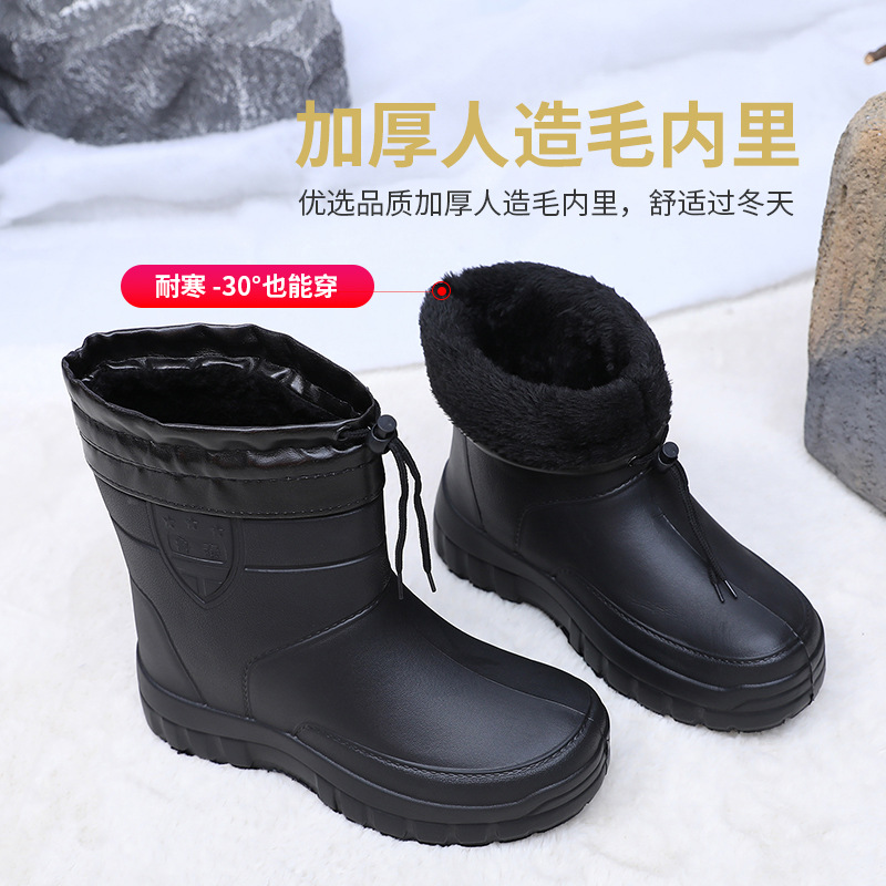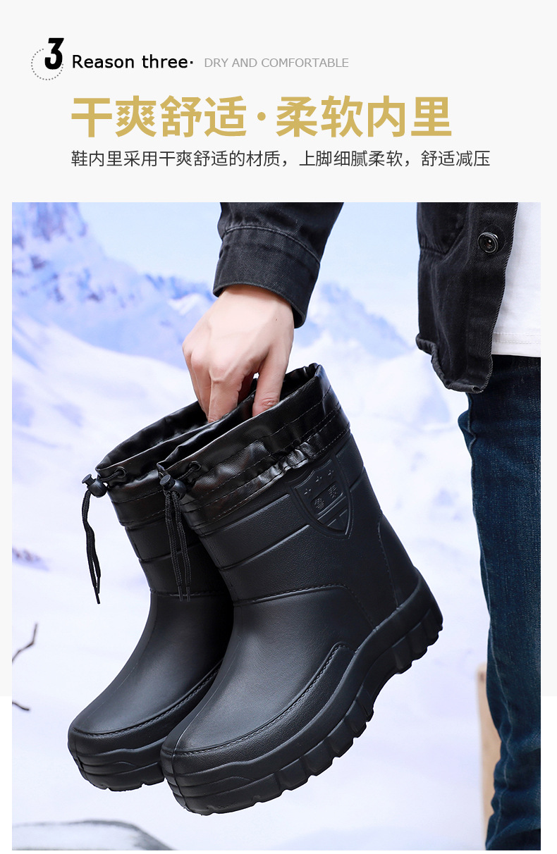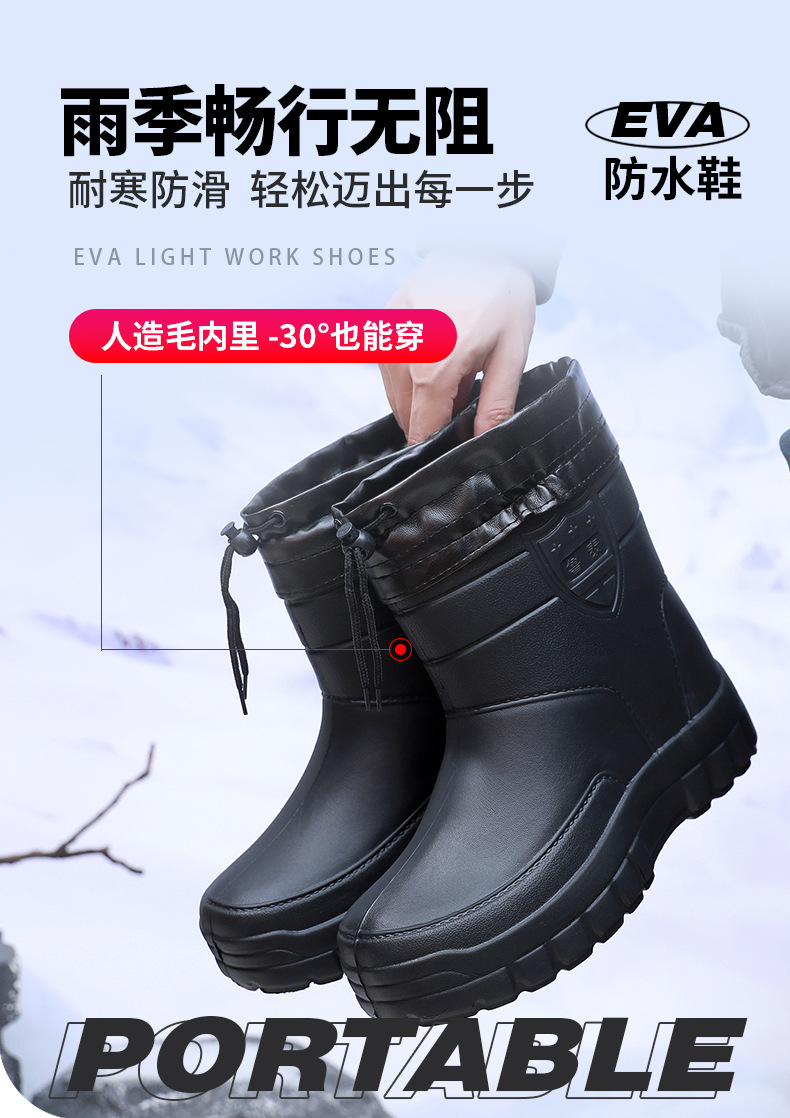保暖雨靴eva冬季中筒993B户外加绒加厚束口雨鞋棉劳保水靴雪地靴