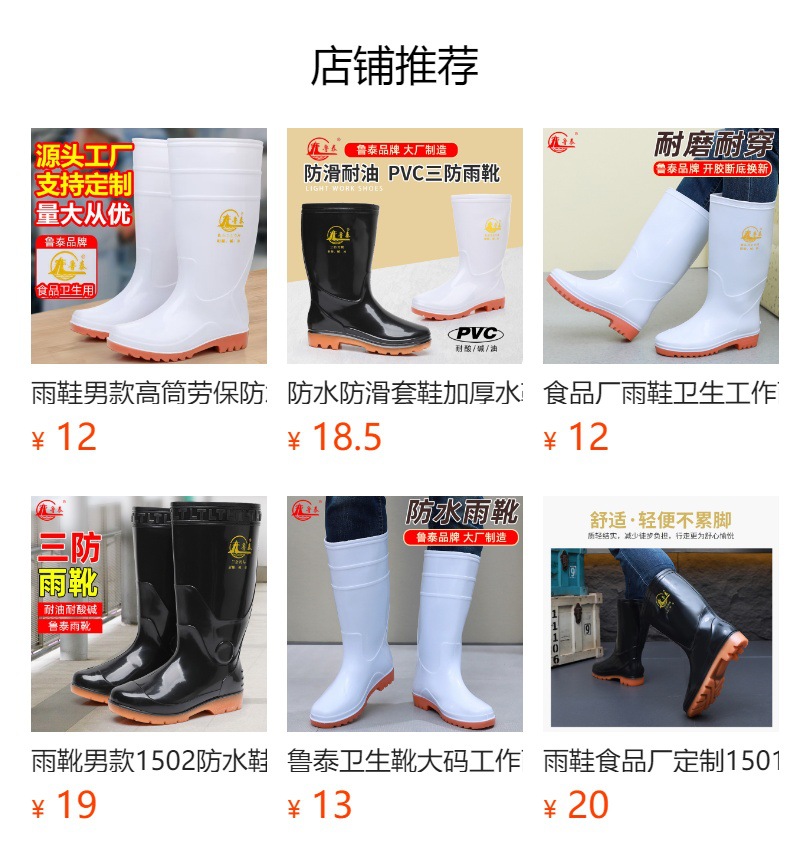 雨鞋男款高筒劳保防水防滑胶鞋1302钓鱼水鞋建筑施工工地长筒雨靴