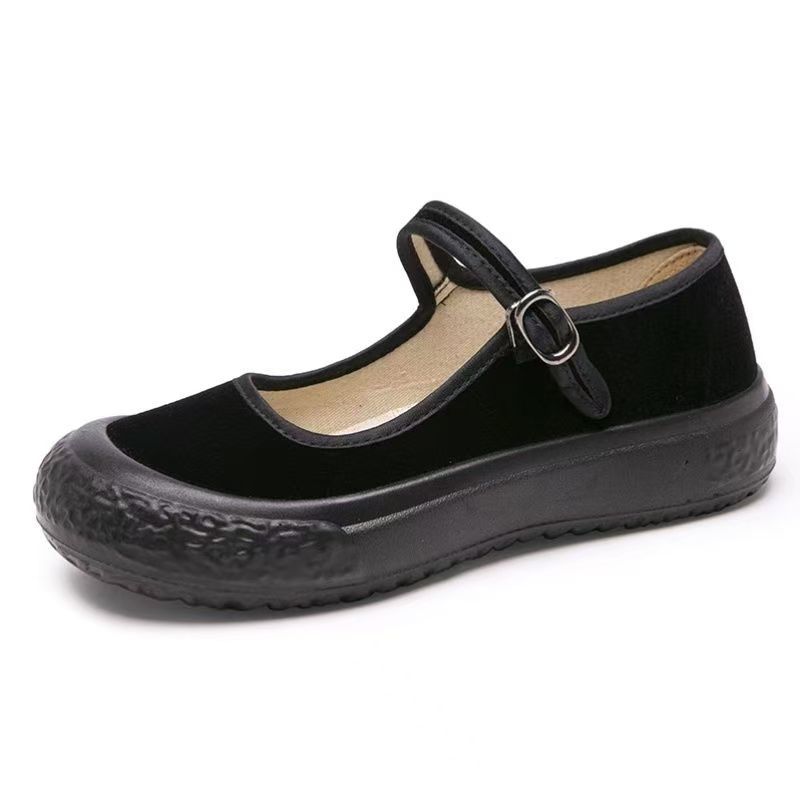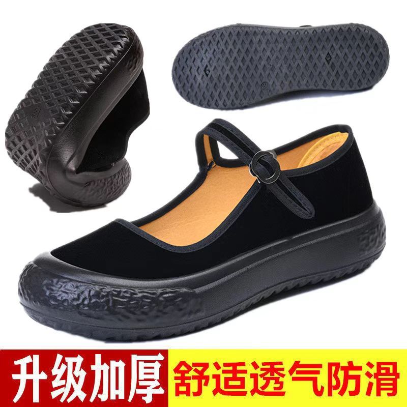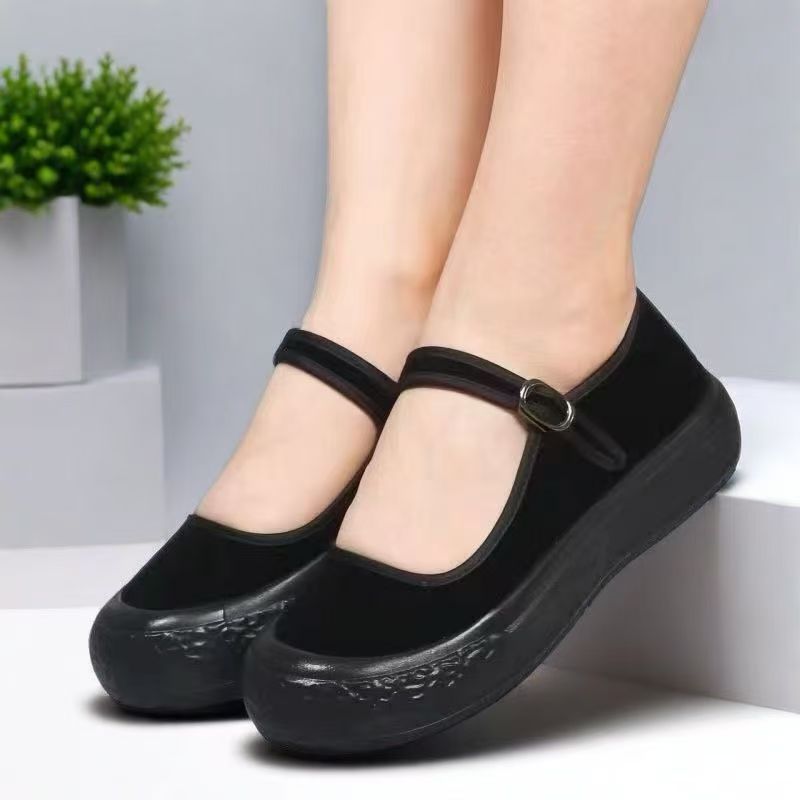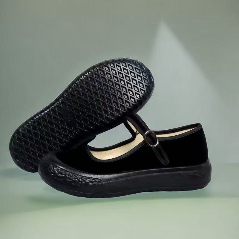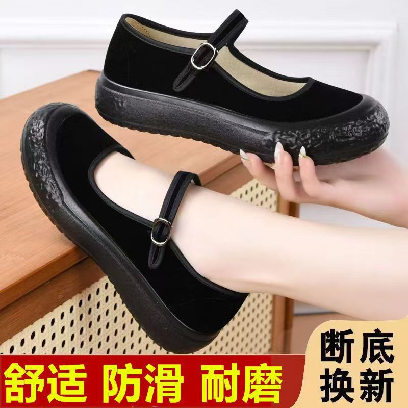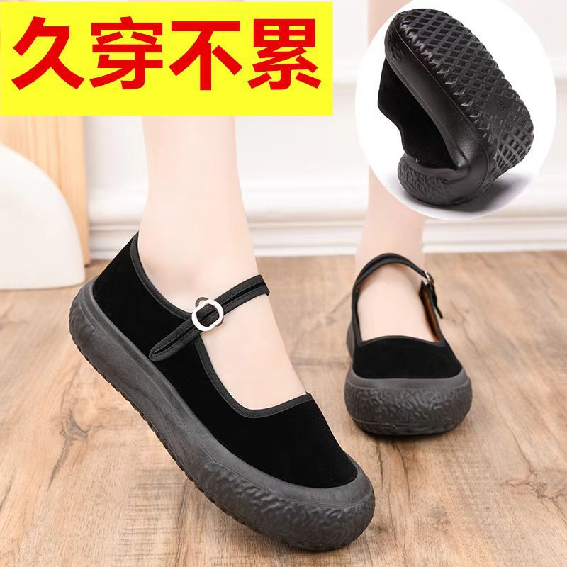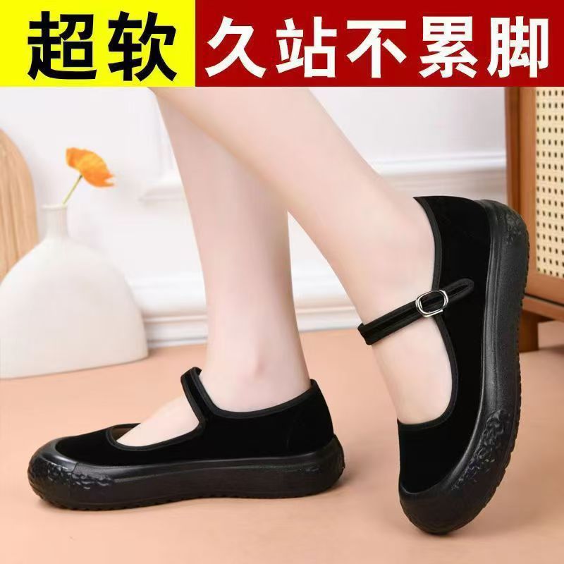 2025春季新款女士中老年妈妈鞋平底舒适女休闲鞋酒店黑一代女鞋