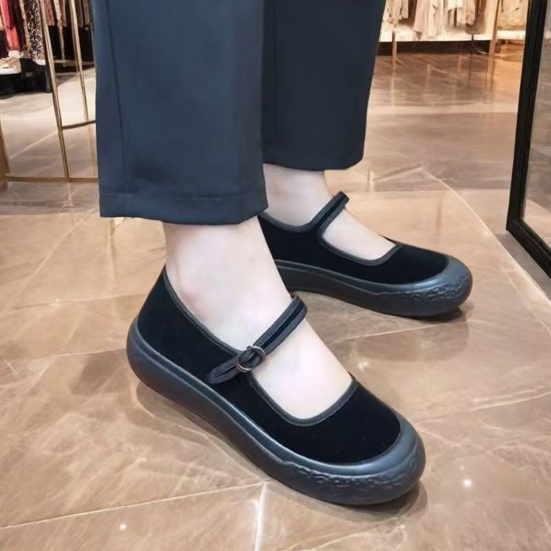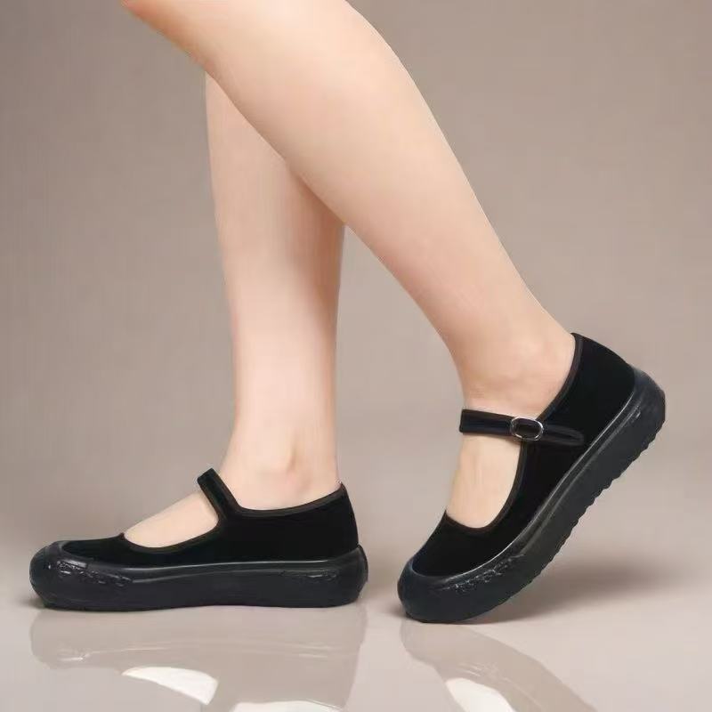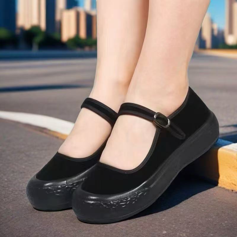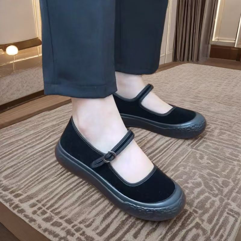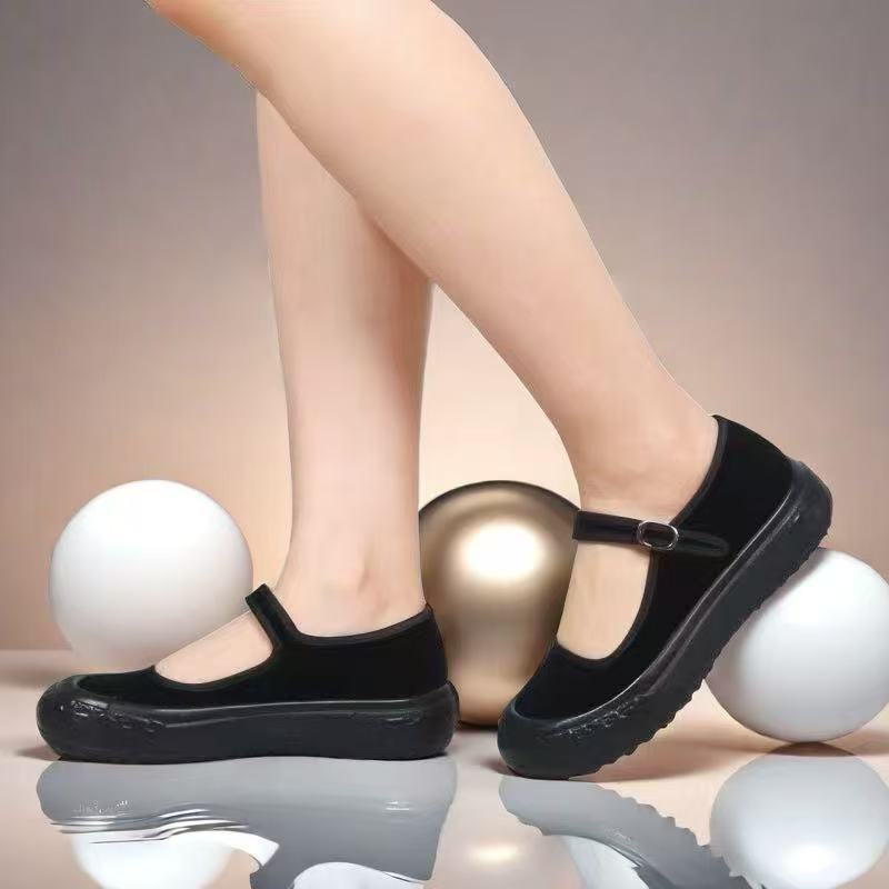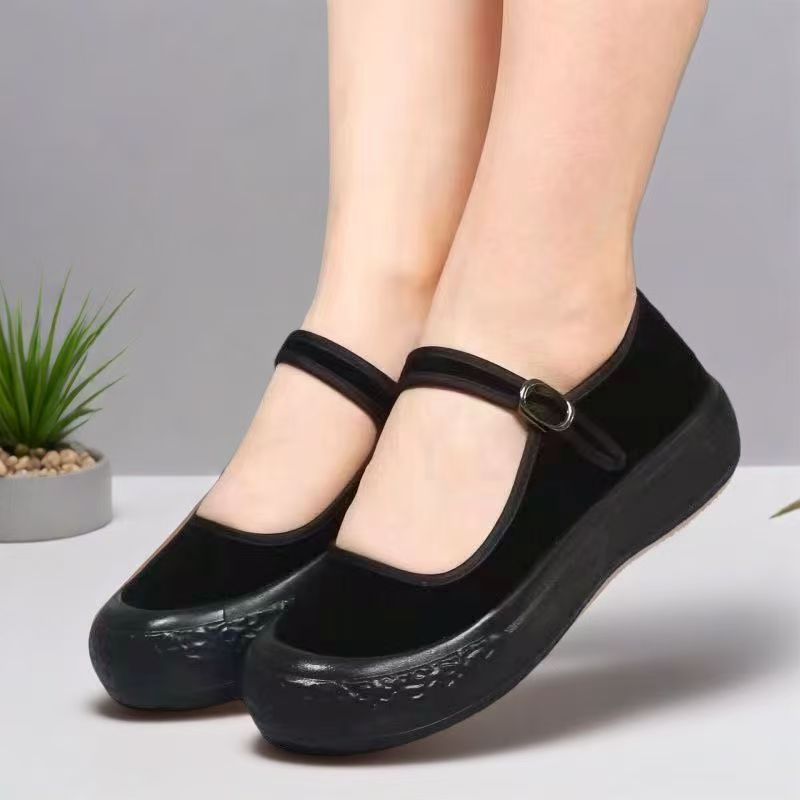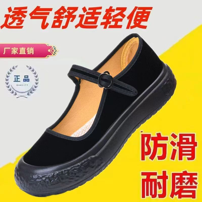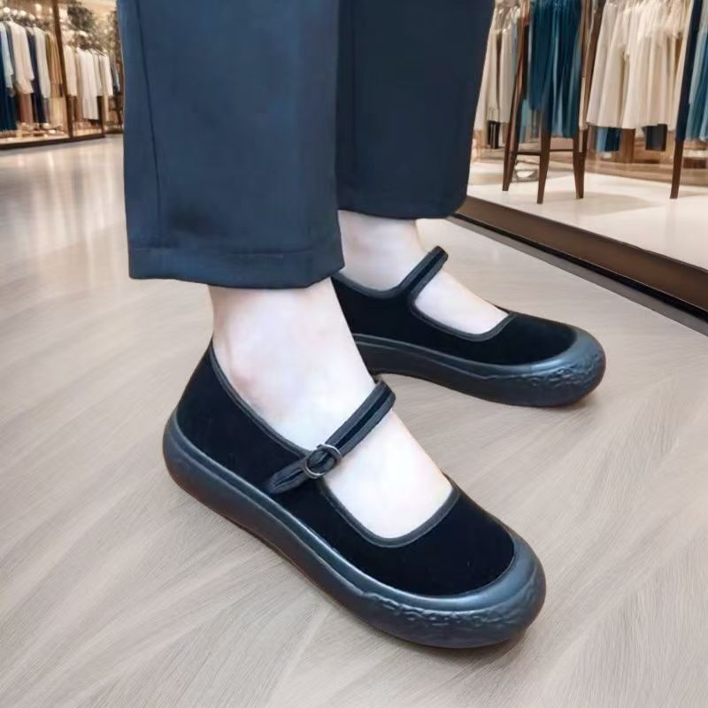 2025春季新款女士中老年妈妈鞋平底舒适女休闲鞋酒店黑一代女鞋