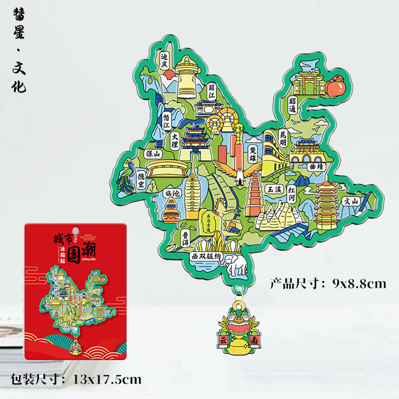 金属地图合集中国省份城市文创磁吸创意旅游纪念品创意金属冰箱贴
