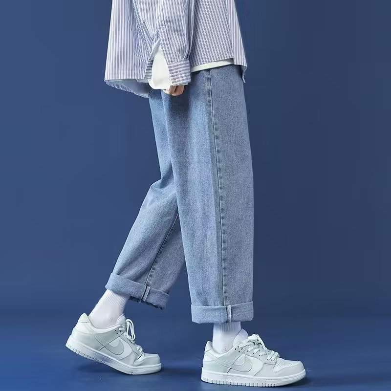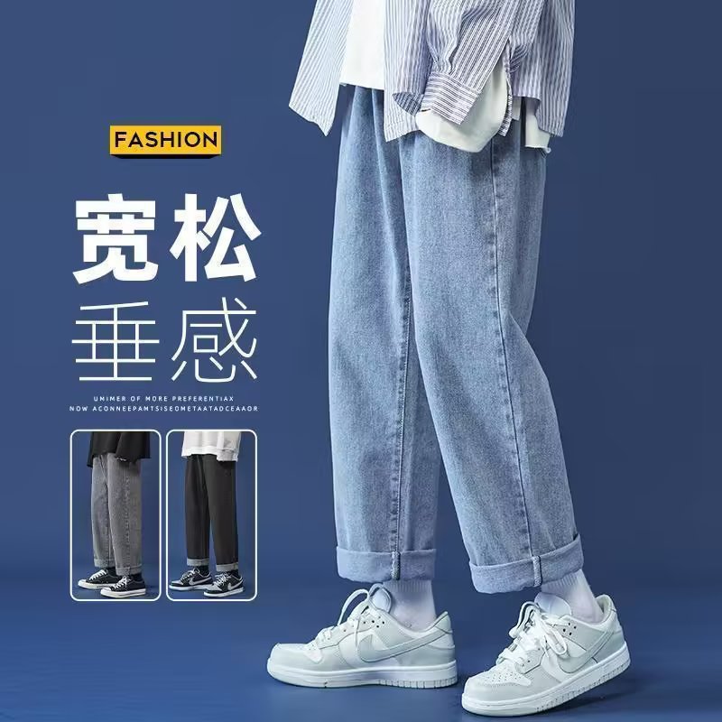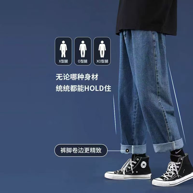 港风复古牛仔裤男春秋新款直筒宽松垂感百搭潮流休闲阔腿长裤外贸
