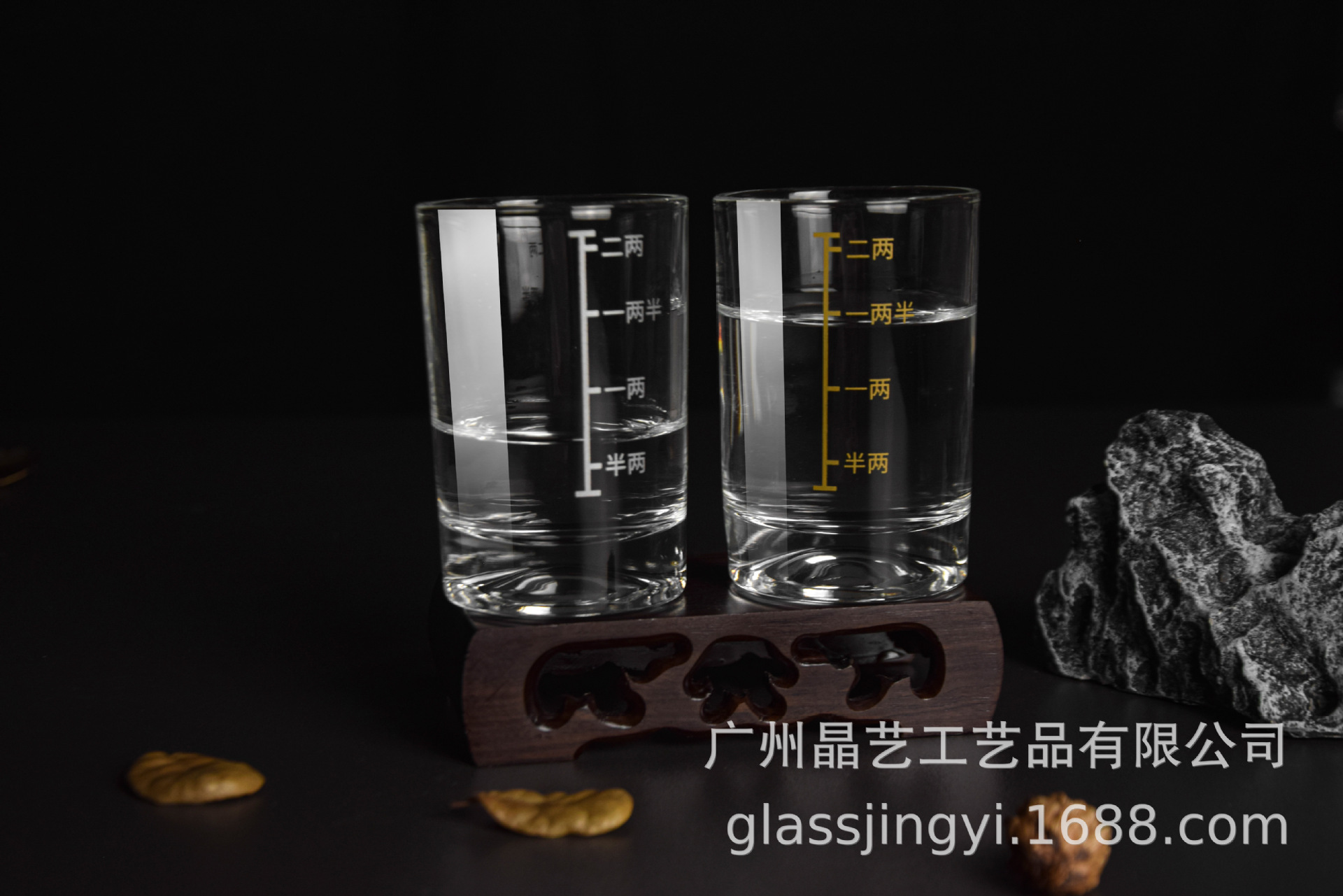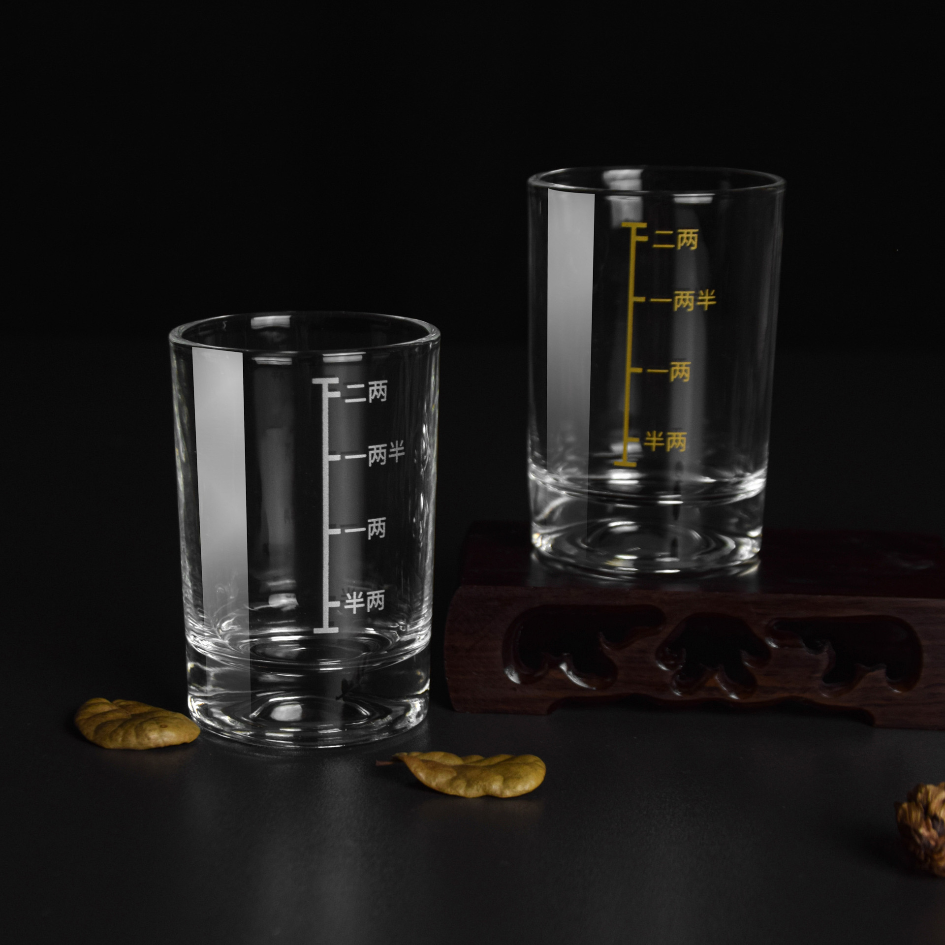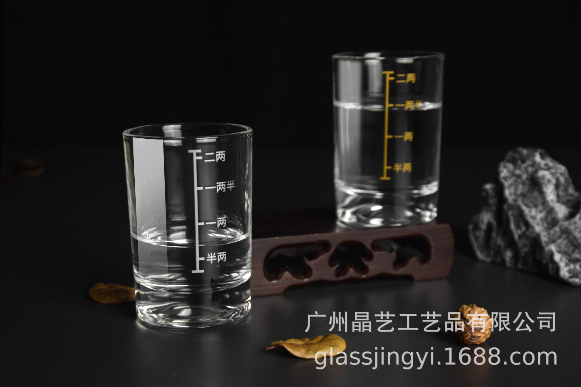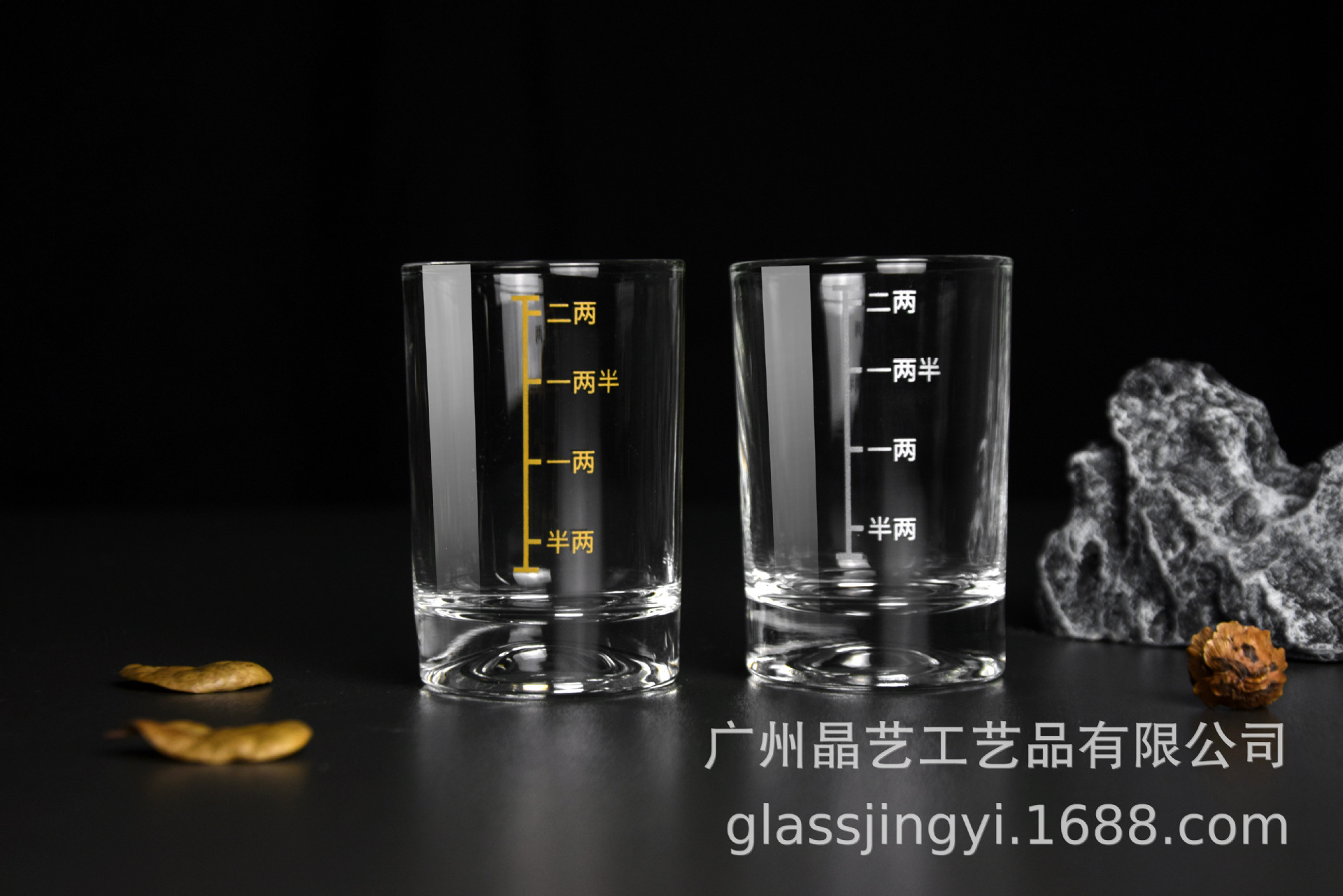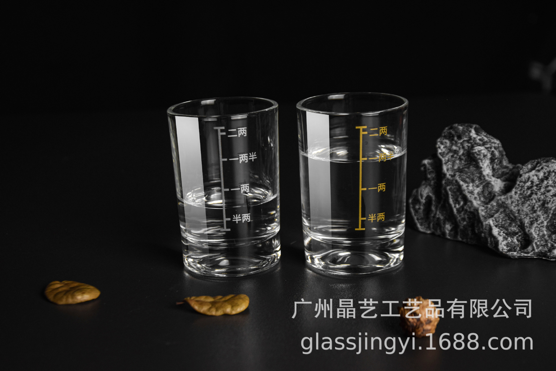 厂家现货可代发 二两杯白酒金银带容量一口杯家用宴会厅玻璃杯子