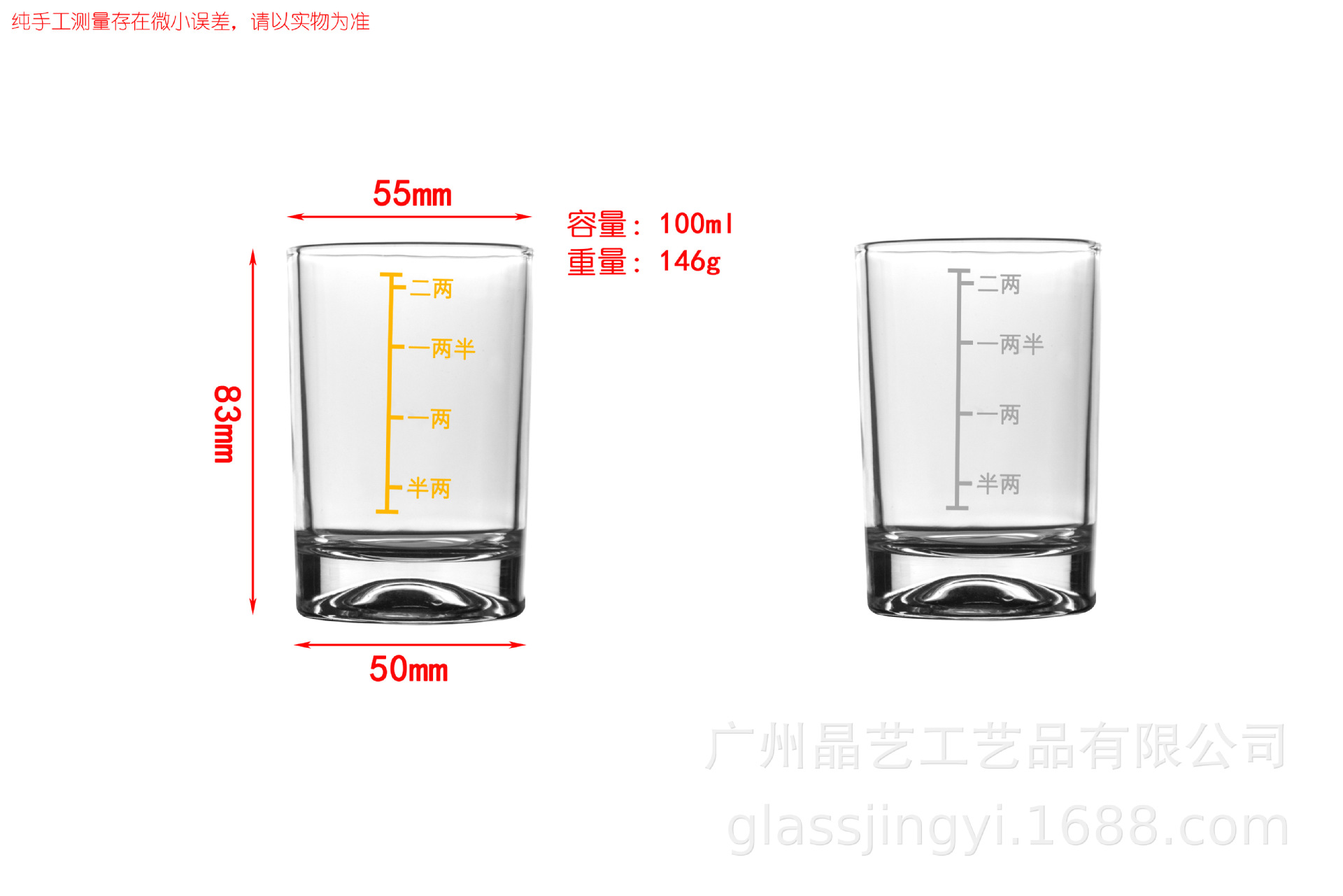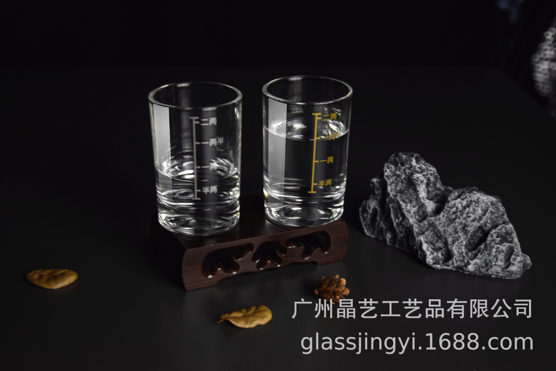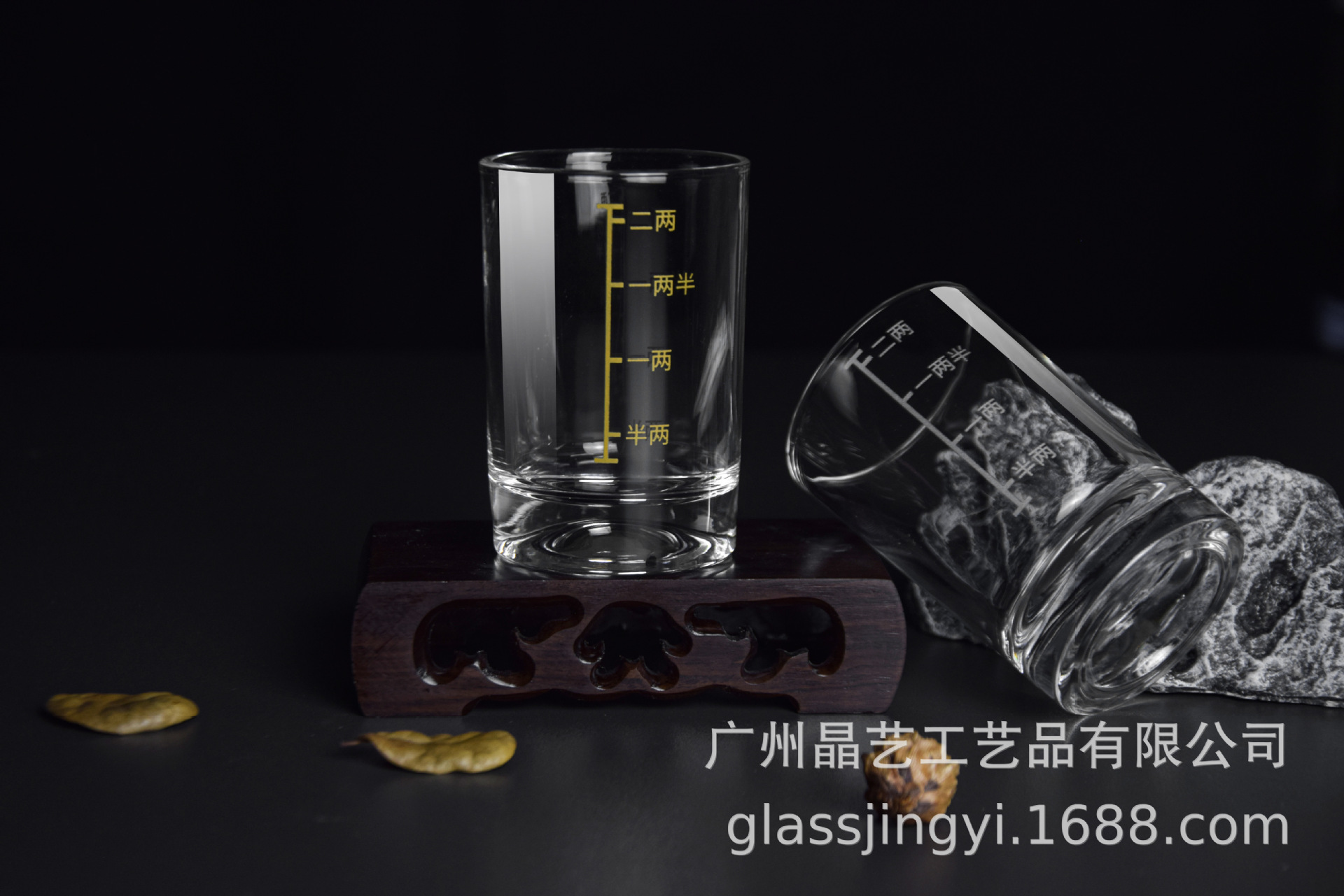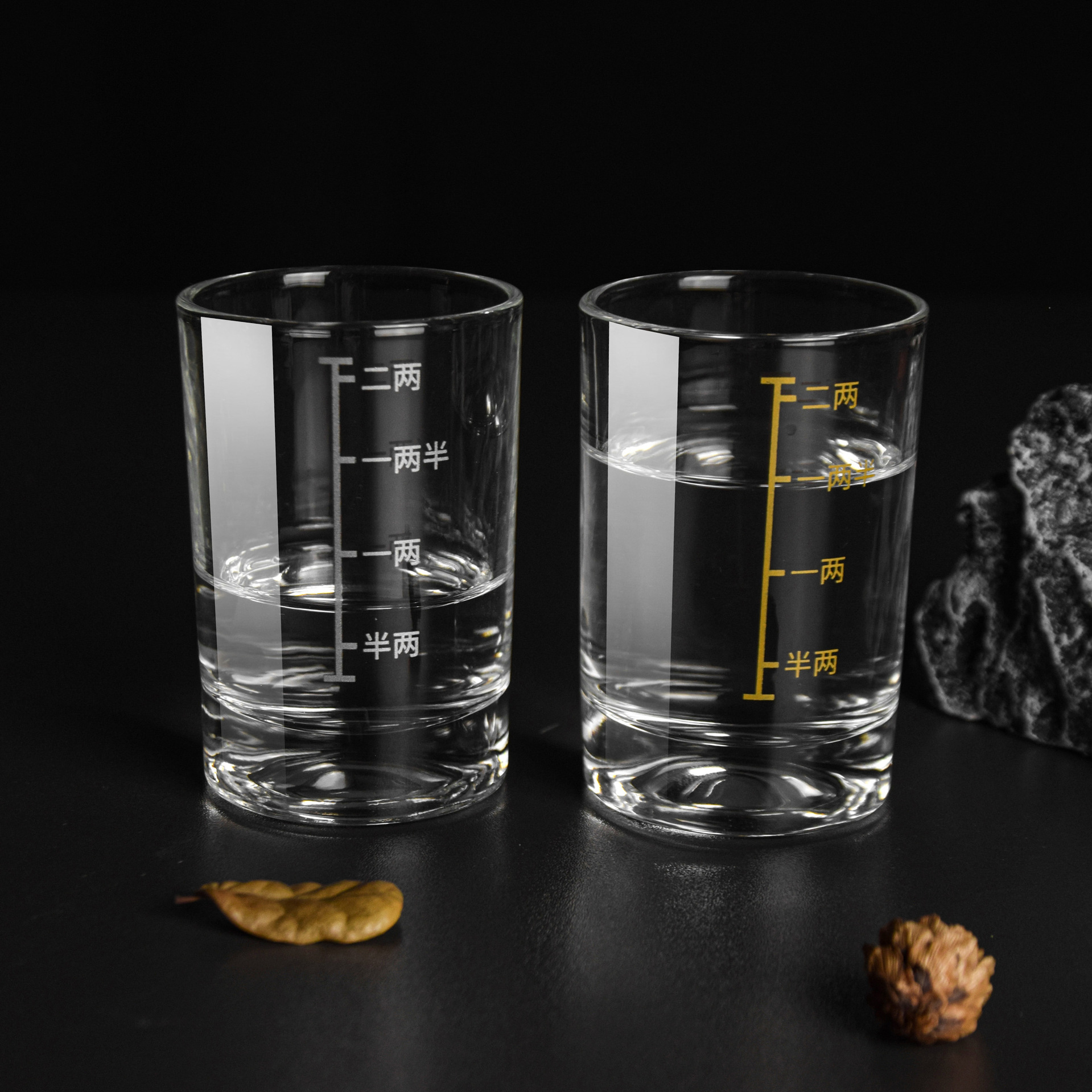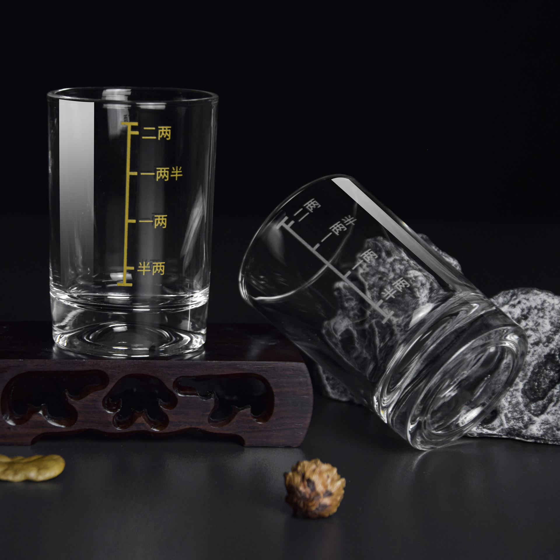 厂家现货可代发 二两杯白酒金银带容量一口杯家用宴会厅玻璃杯子