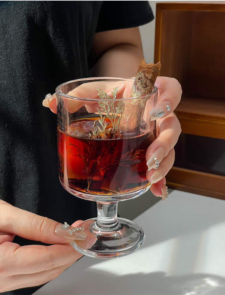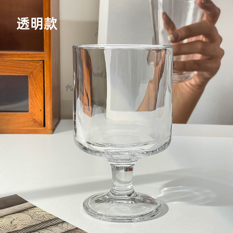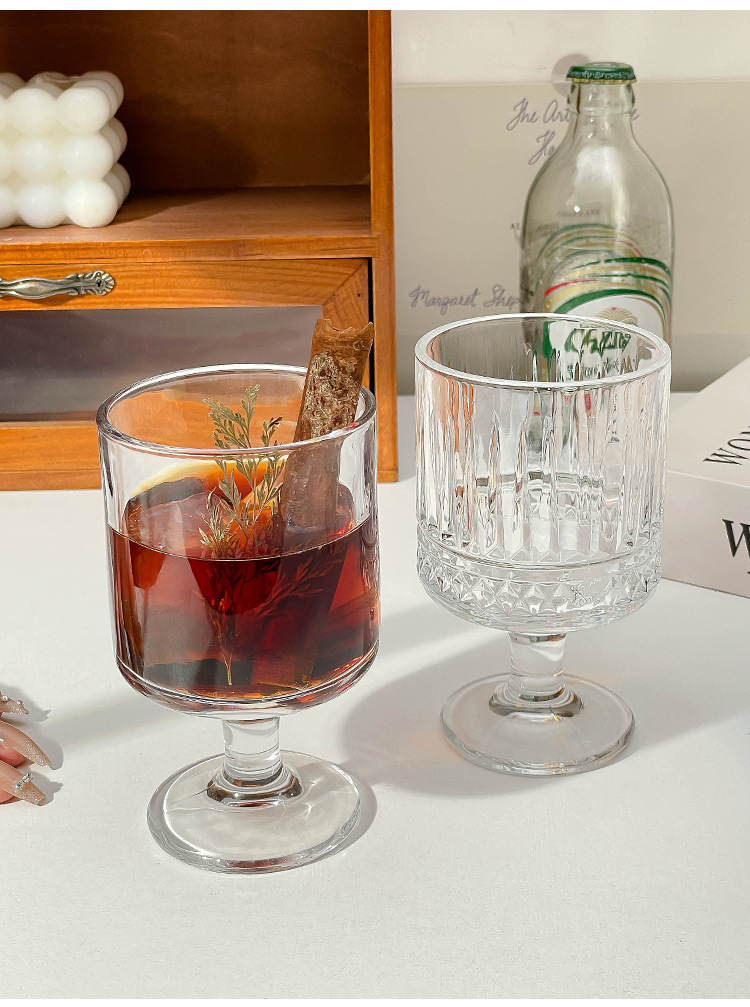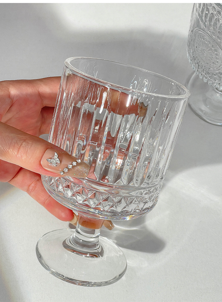 高颜值玻璃杯ins竖条纹高脚杯家用饮料果汁水杯咖啡杯设计感酒杯