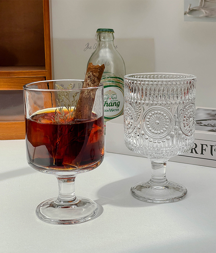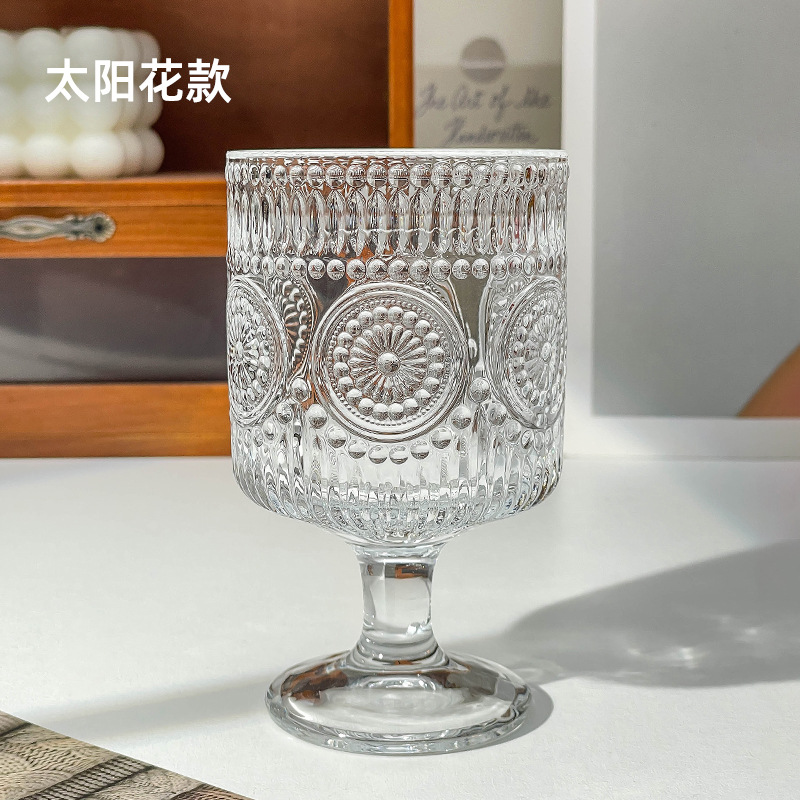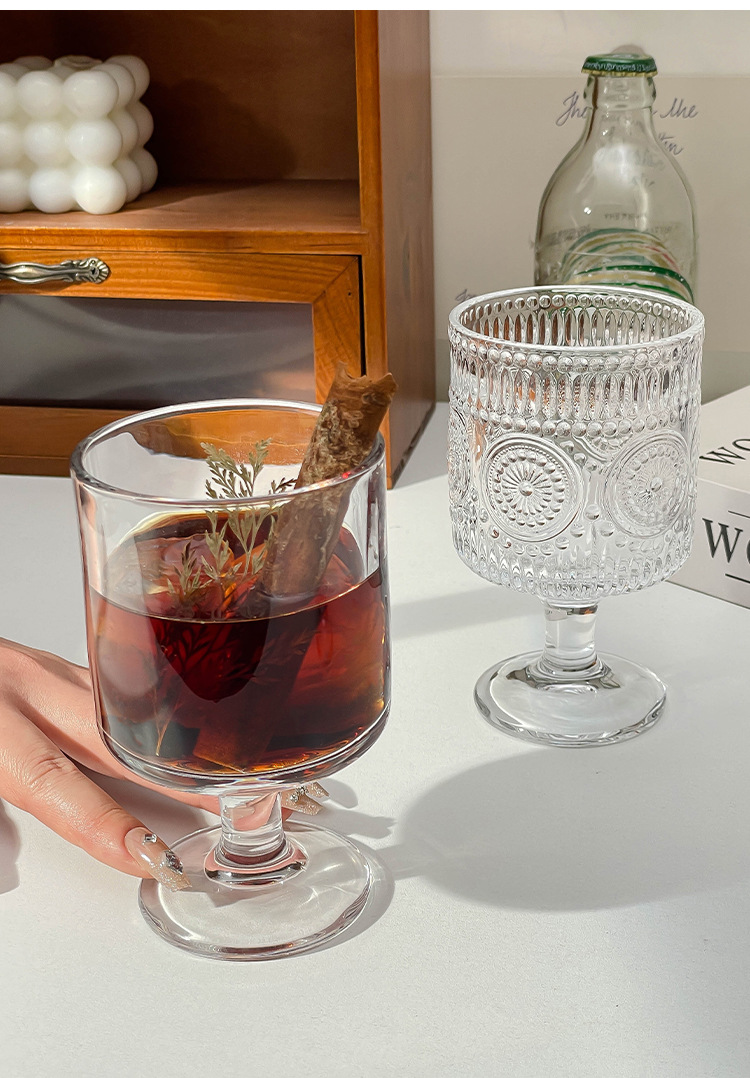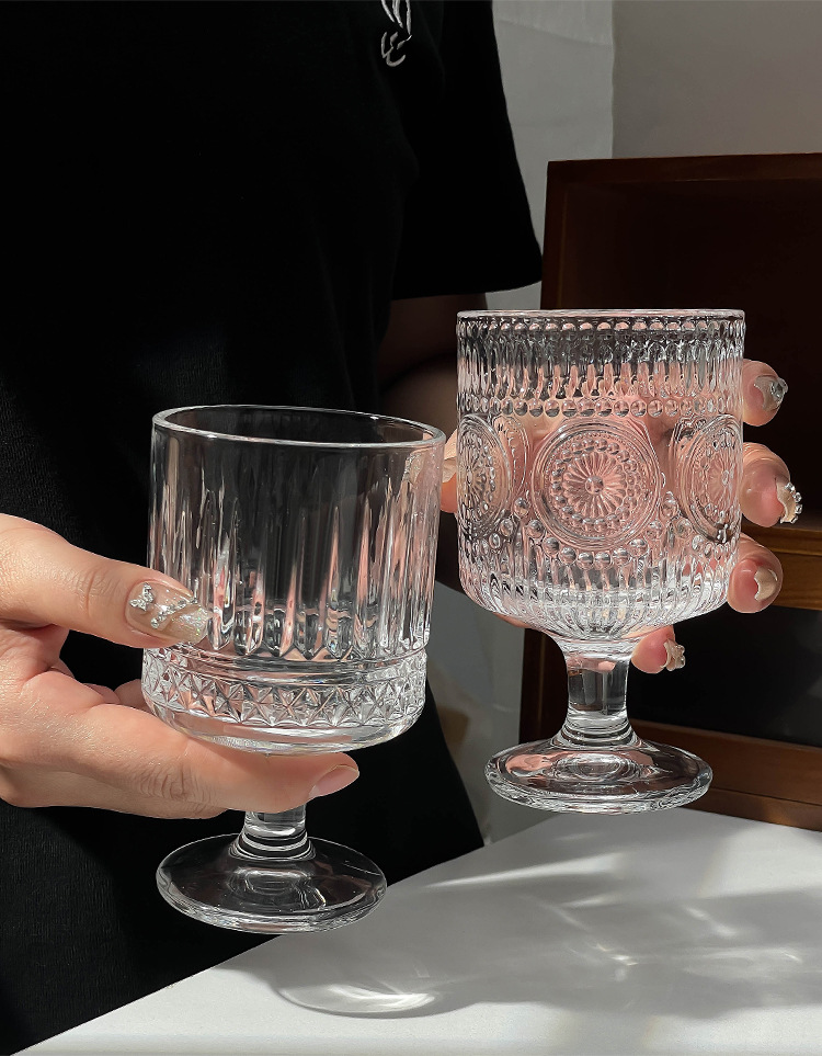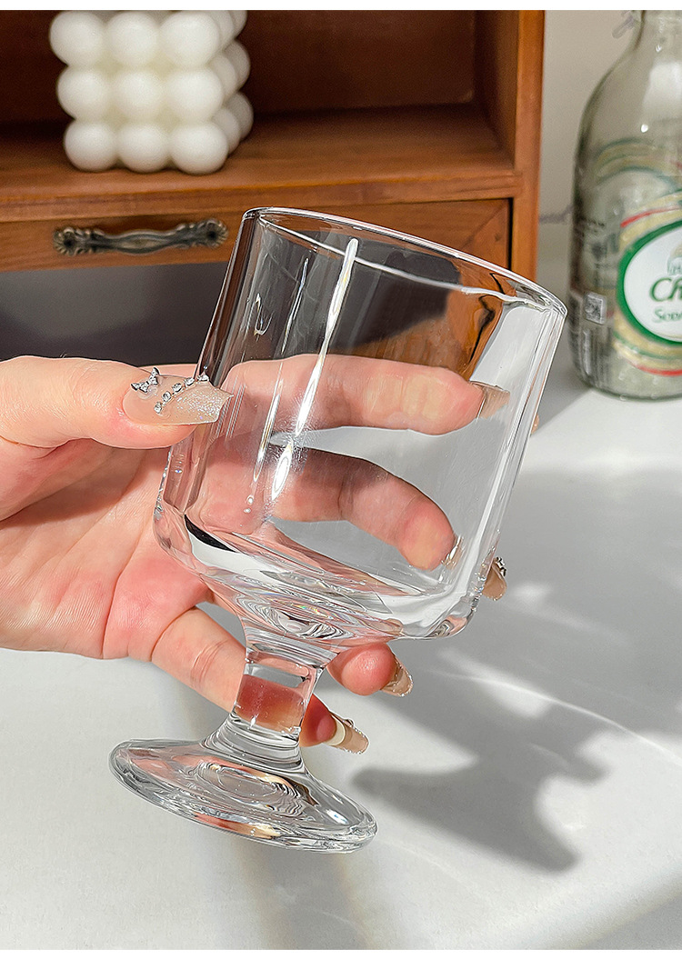 高颜值玻璃杯ins竖条纹高脚杯家用饮料果汁水杯咖啡杯设计感酒杯